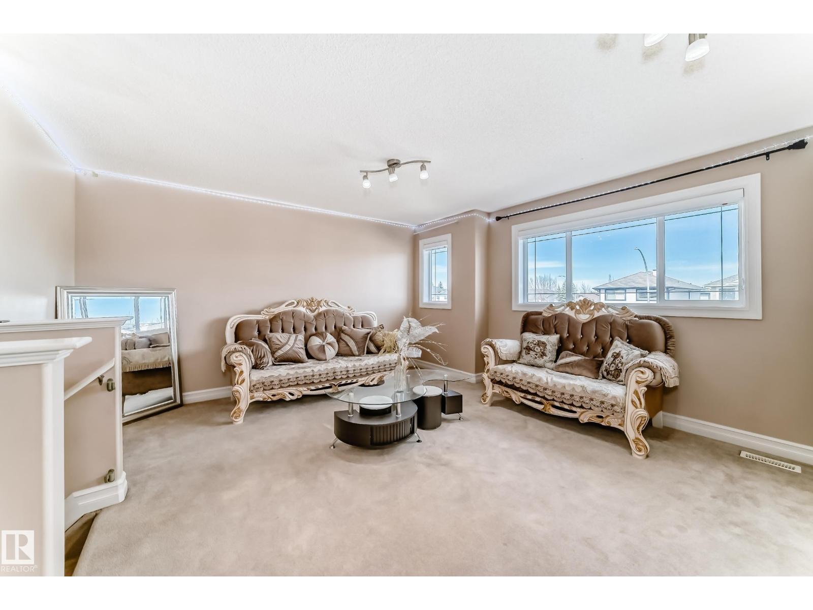 Discover this stunning 4-bedroom, 3.1 bathroom, well-maintained 2-storey family home offering a functional open-concept layout. The main floor features a bright tiled front entry, hardwood flooring, and a spacious kitchen with hardwood flooring, extra cabinets, a large breakfast bar and a dining nook. Convenient main-floor laundry and a 2-piece bathroom. Upstairs includes a spacious bonus room with a gas fireplace, providing additional living space. The primary bedroom includes a 4-pc ensuite bathroom and a walk-in closet. The 2 other bedrooms share a common 4-pc bathroom. The fully finished basement offers a large bedroom, 4-pc bathroom and a recreation room suitable for a variety of uses. Recent upgrades include furnace (2026), shingles (2025), hot water tank (2023), dryer and washer (2024), basement carpet (2022), and new window blinds throughout. Ample storage space. Located in the desirable Canossa neighbourhood, close to schools, shopping center, and public transportation. (id:63190)