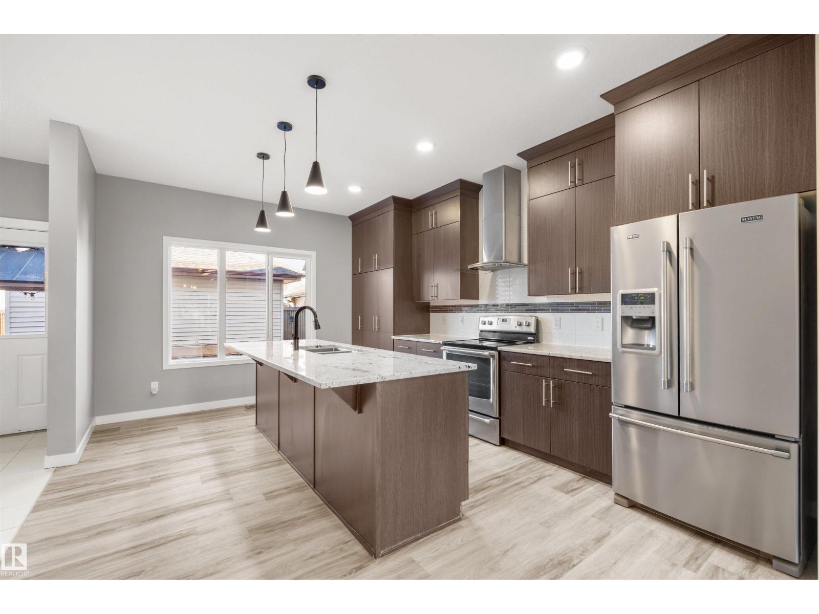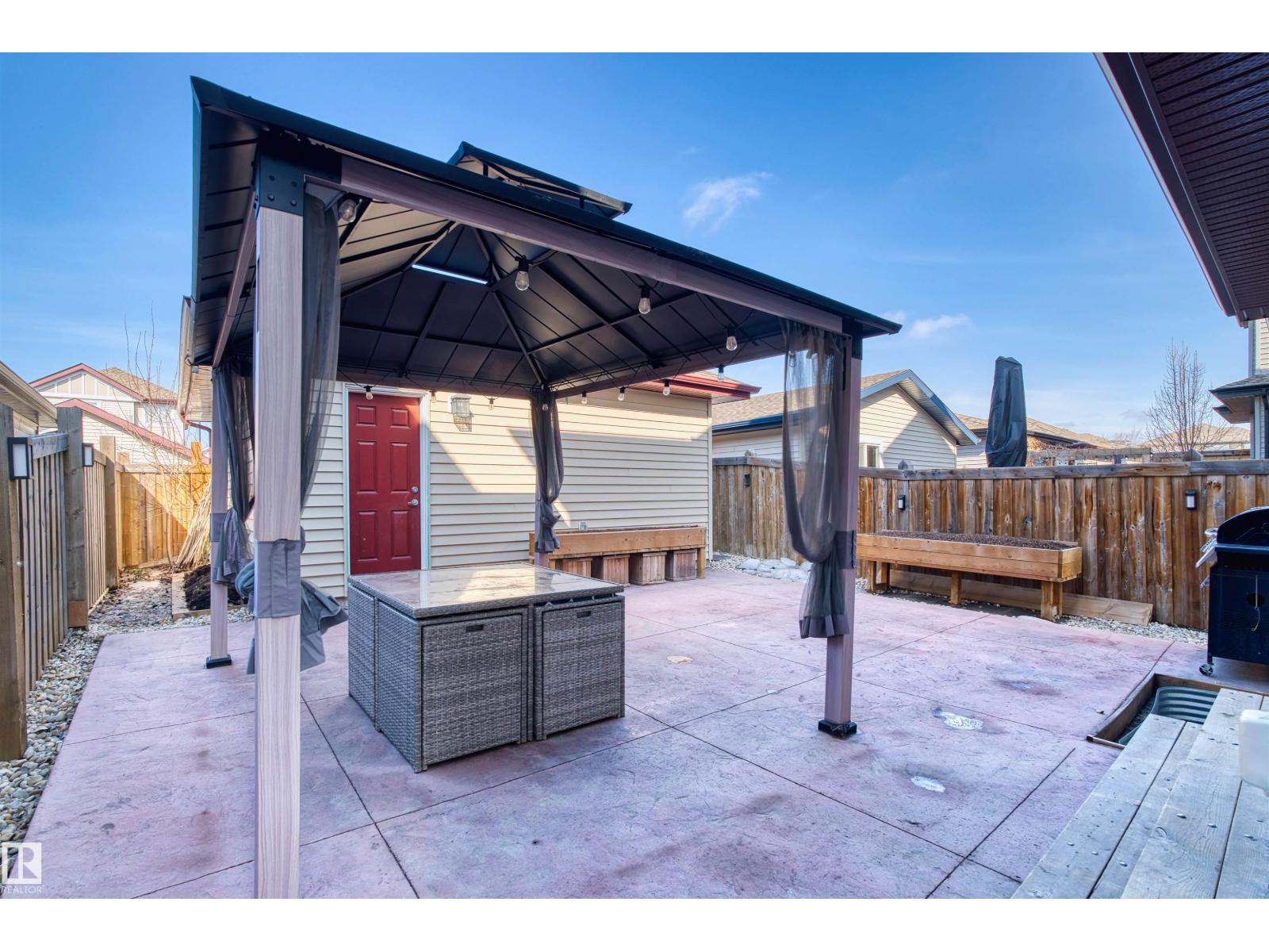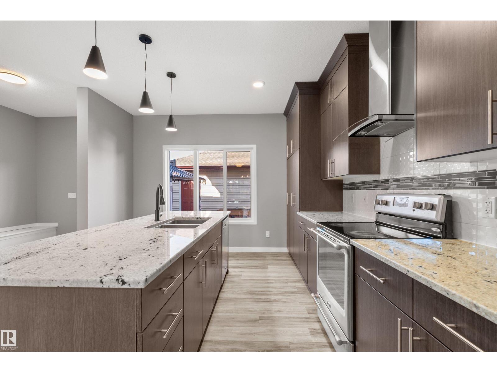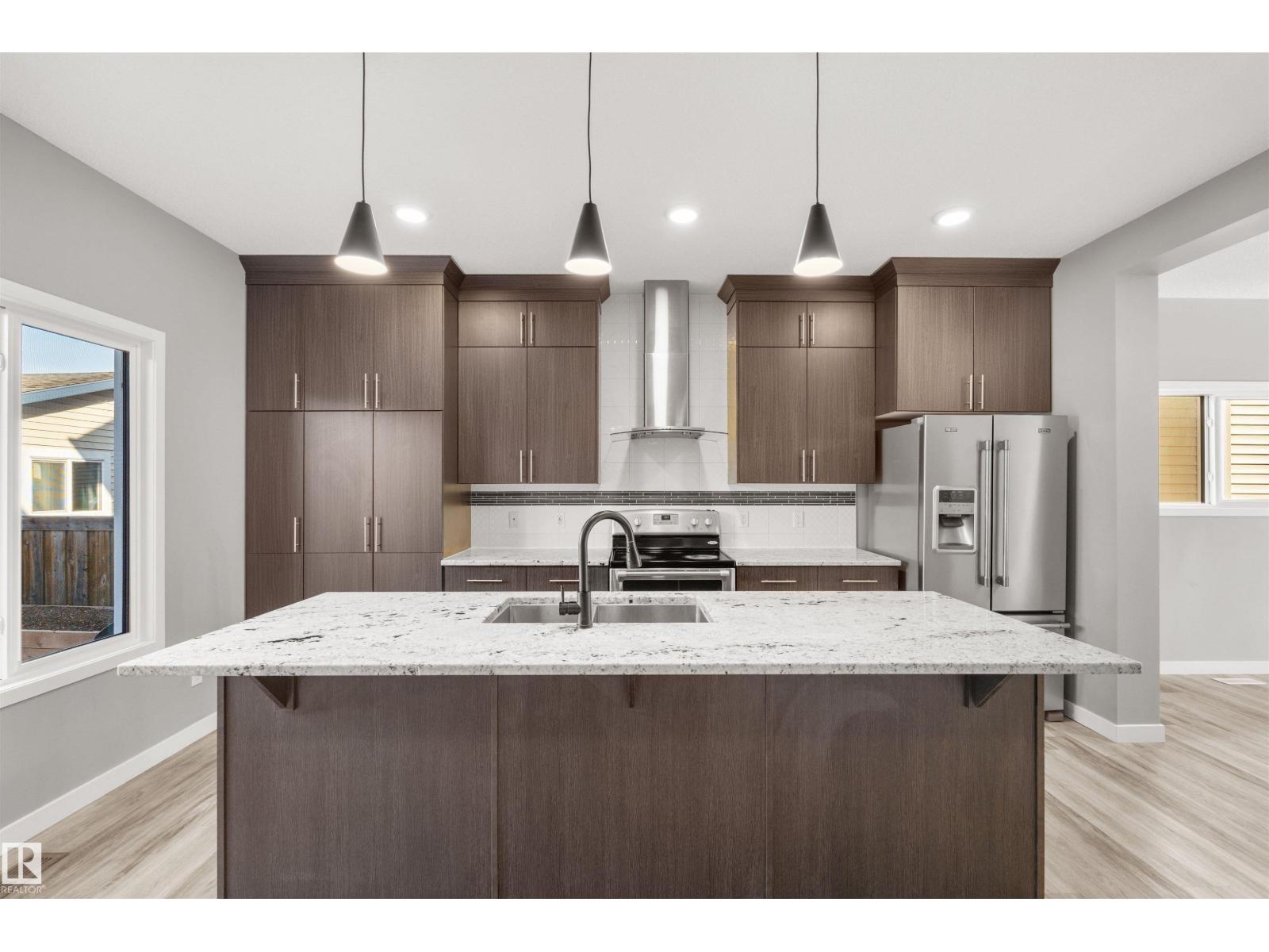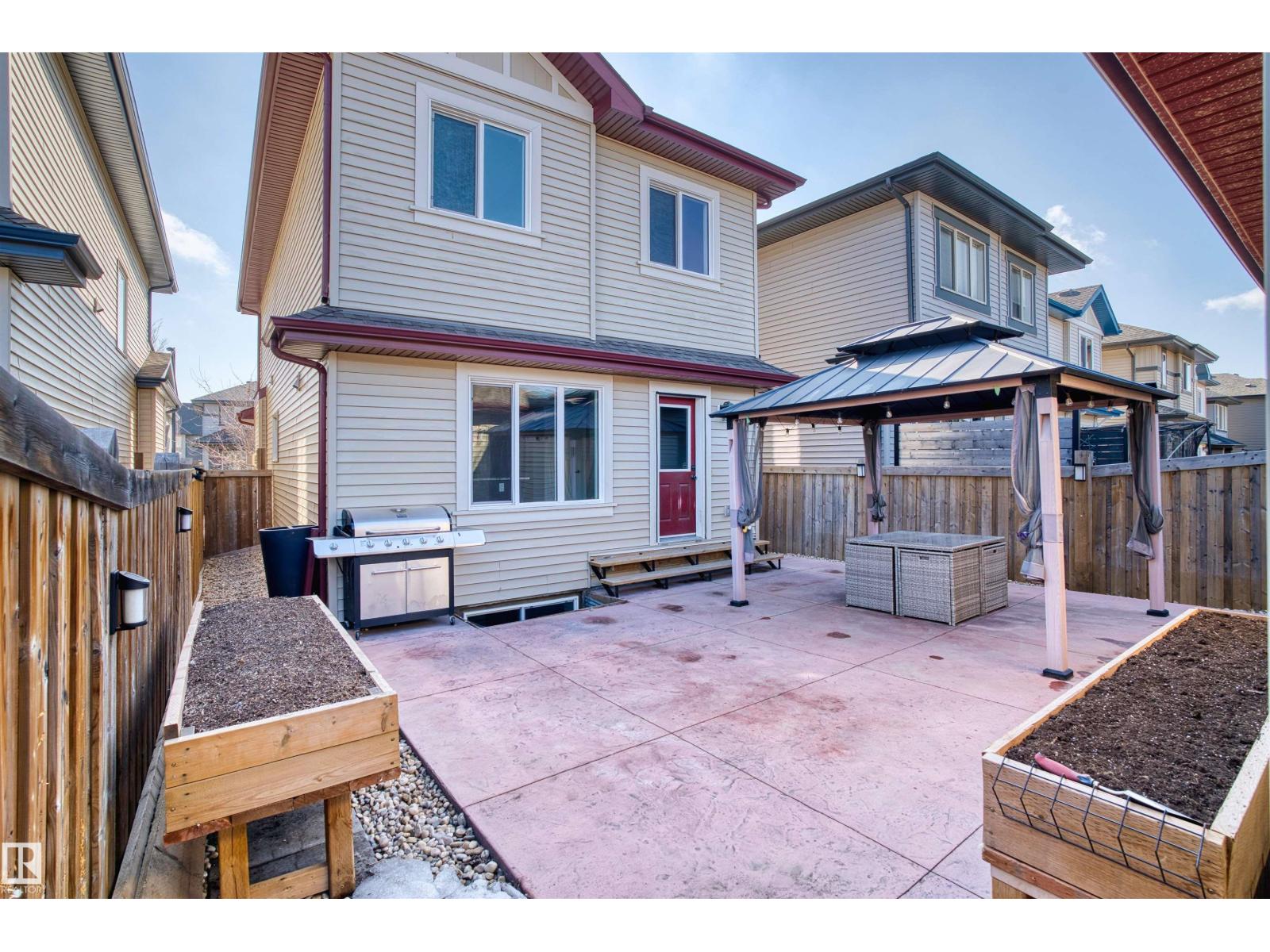Welcome to this beautifully updated 2-storey home in the highly sought-after community of Ambleside! Offering 1,625 sq ft of above-grade living space plus a NEWLY FINISHED basement, this MOVE-IN READY gem features fresh paint, durable vinyl plank flooring, and a bright open-concept main floor with a spacious living room centered around a cozy gas fireplace, a stylish kitchen boasting stainless steel appliances, granite countertops, a large island, and corner pantry. Upstairs, recently upgraded with BRAND NEW CARPET, you'll find three generous bedrooms including a stunning primary suite with a walk-in closet and private 4-pc ensuite. The brand-new finished basement adds incredible value with a large rec room, an additional bedroom, and an extra 3-pc bath. Outside, enjoy a low-maintenance hardscape backyard featuring beautiful patio and a charming gazebo. Double detached garage comes with 220V EV CHARGER. All conveniently located close to parks, schools, walking trails, and Currents of Windermere! (id:63190)