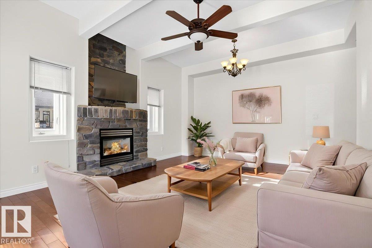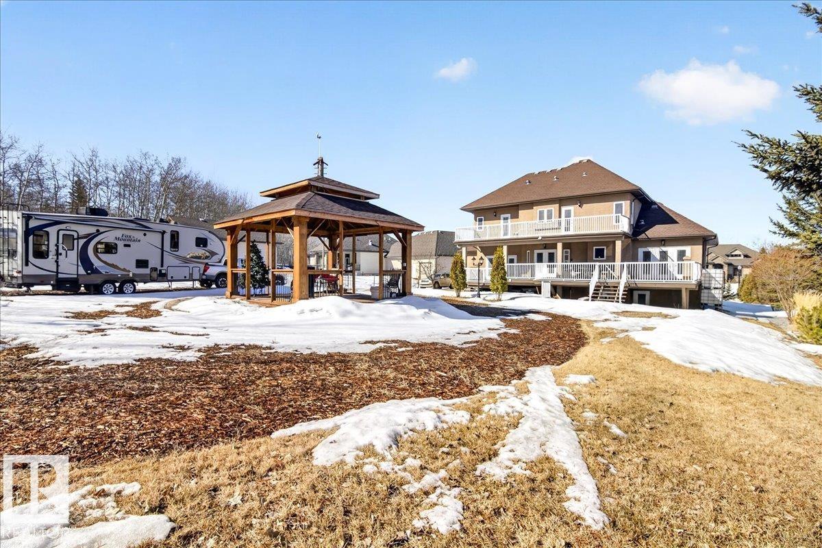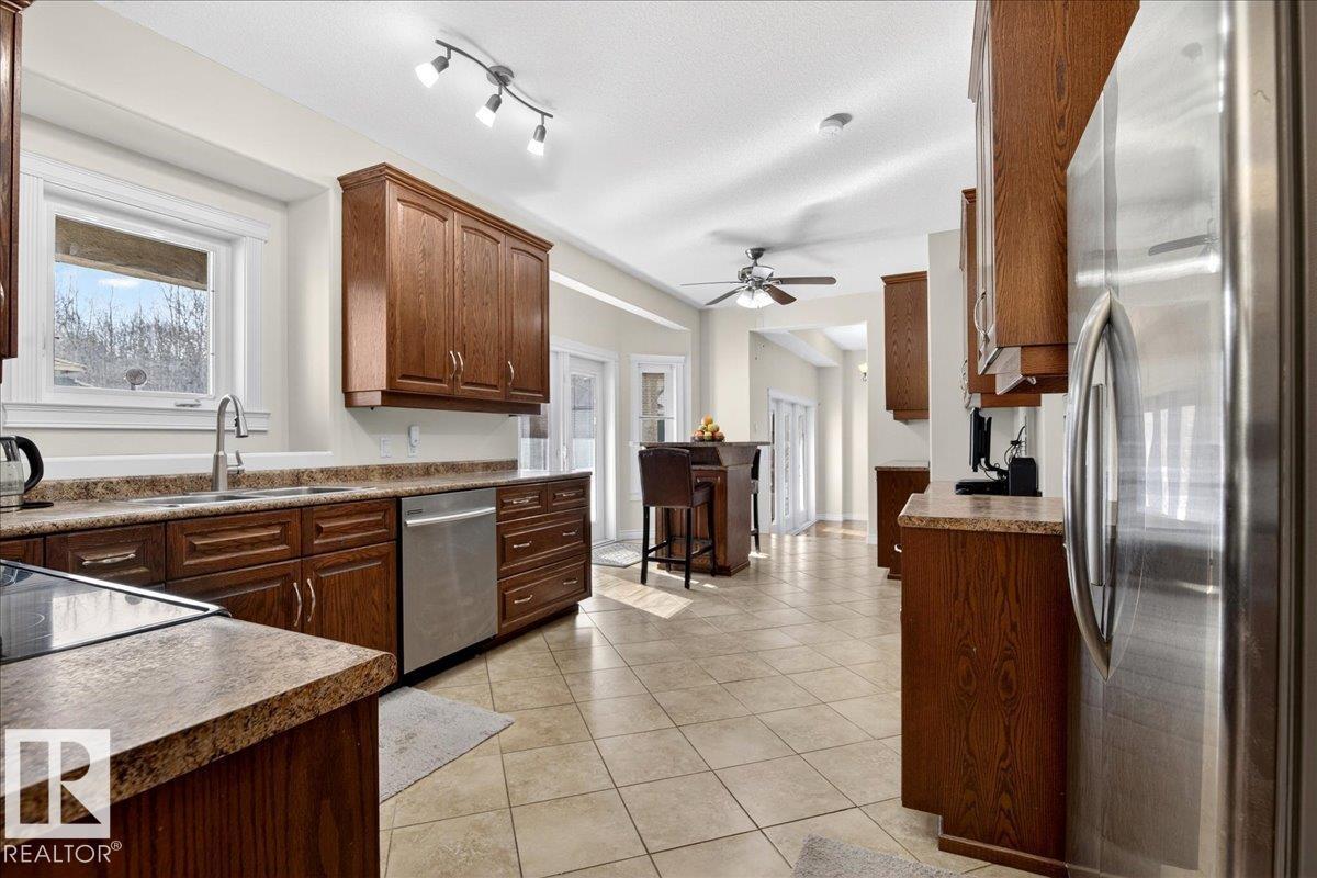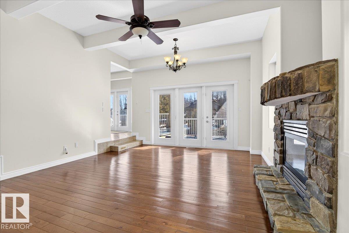 Rare opportunity in Crossing at the River’s Edge! This original-owner, meticulously maintained 2-storey offers nearly 4,000 sq ft of developed living space, just minutes to Edmonton and St. Albert with city water. Designed for growing and multi-generational families, the home features 4 bedrooms upstairs, a main floor den, formal dining room, and a bright open-concept kitchen and family room with gas fireplace and large windows throughout. The fully finished walkout basement includes a separate entrance, forced walkout, second kitchen, 2 bedrooms, full bath with stacked laundry ideal for extended family or suite potential. Enjoy the large wraparound deck, perfect for entertaining, plus a triple attached heated garage with rear yard access. Exceptional space, flexibility, and pride of ownership throughout room to grow! (id:63190)