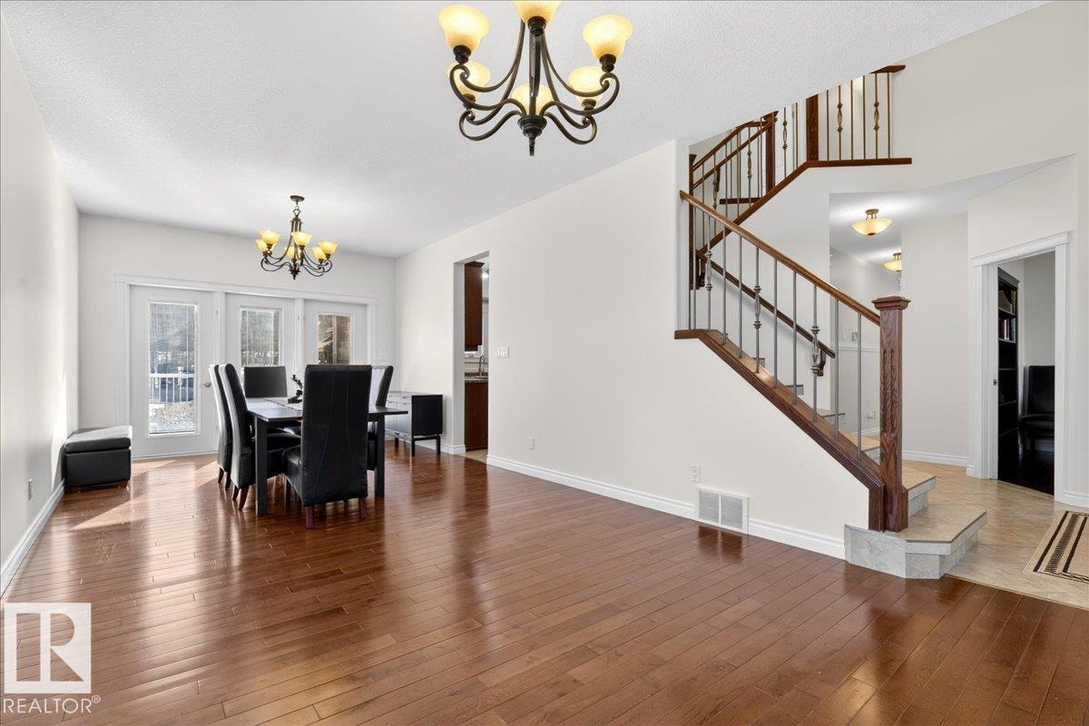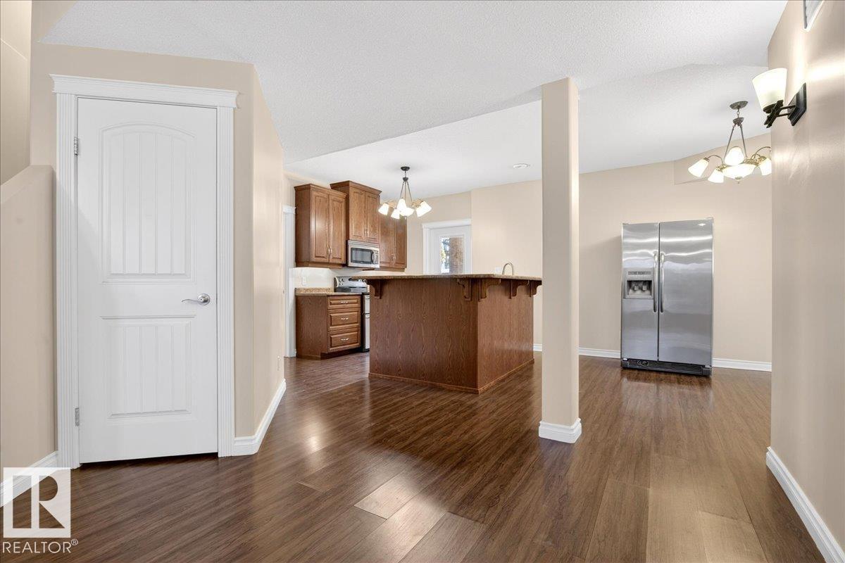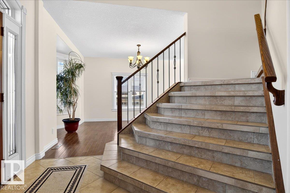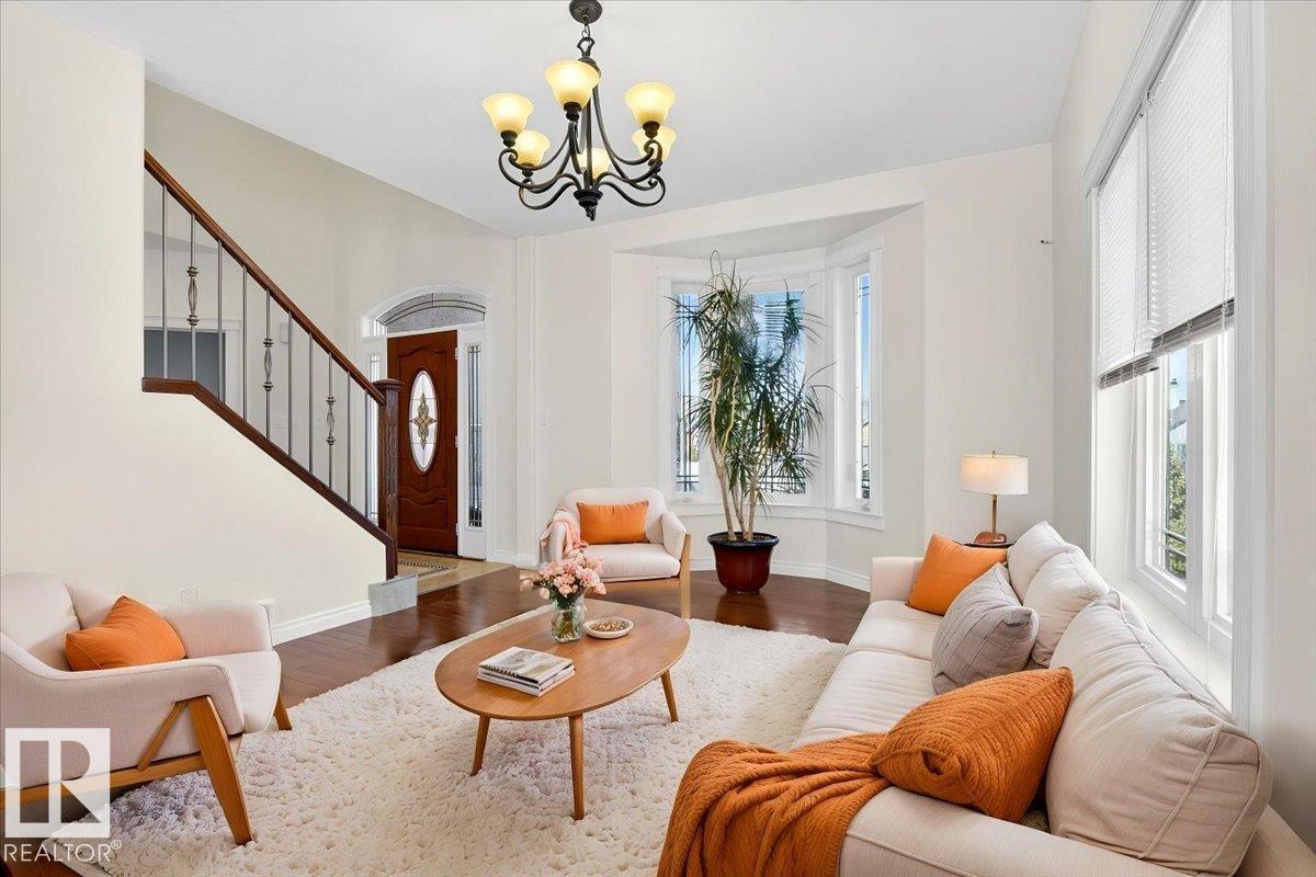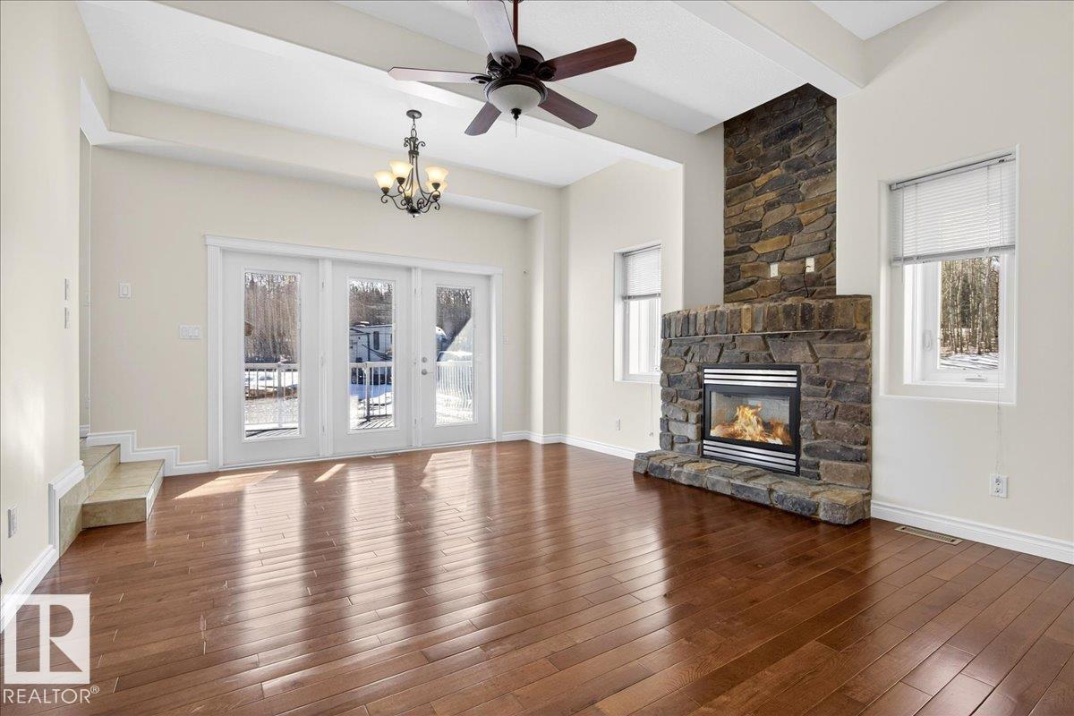 Rare opportunity in Crossing at the River’s Edge! This original-owner, meticulously maintained 2-storey offers nearly 4,000 sq ft of developed living space, just minutes to Edmonton and St. Albert with city water. Designed for growing and multi-generational families, the home features 4 bedrooms upstairs, a main floor den, formal dining room, and a bright open-concept kitchen and family room with gas fireplace and large windows throughout. The fully finished walkout basement includes a separate entrance, forced walkout, second kitchen, 2 bedrooms, full bath with stacked laundry ideal for extended family or suite potential. Enjoy the large wraparound deck, perfect for entertaining, plus a triple attached heated garage with rear yard access. Exceptional space, flexibility, and pride of ownership throughout room to grow! (id:63190)
