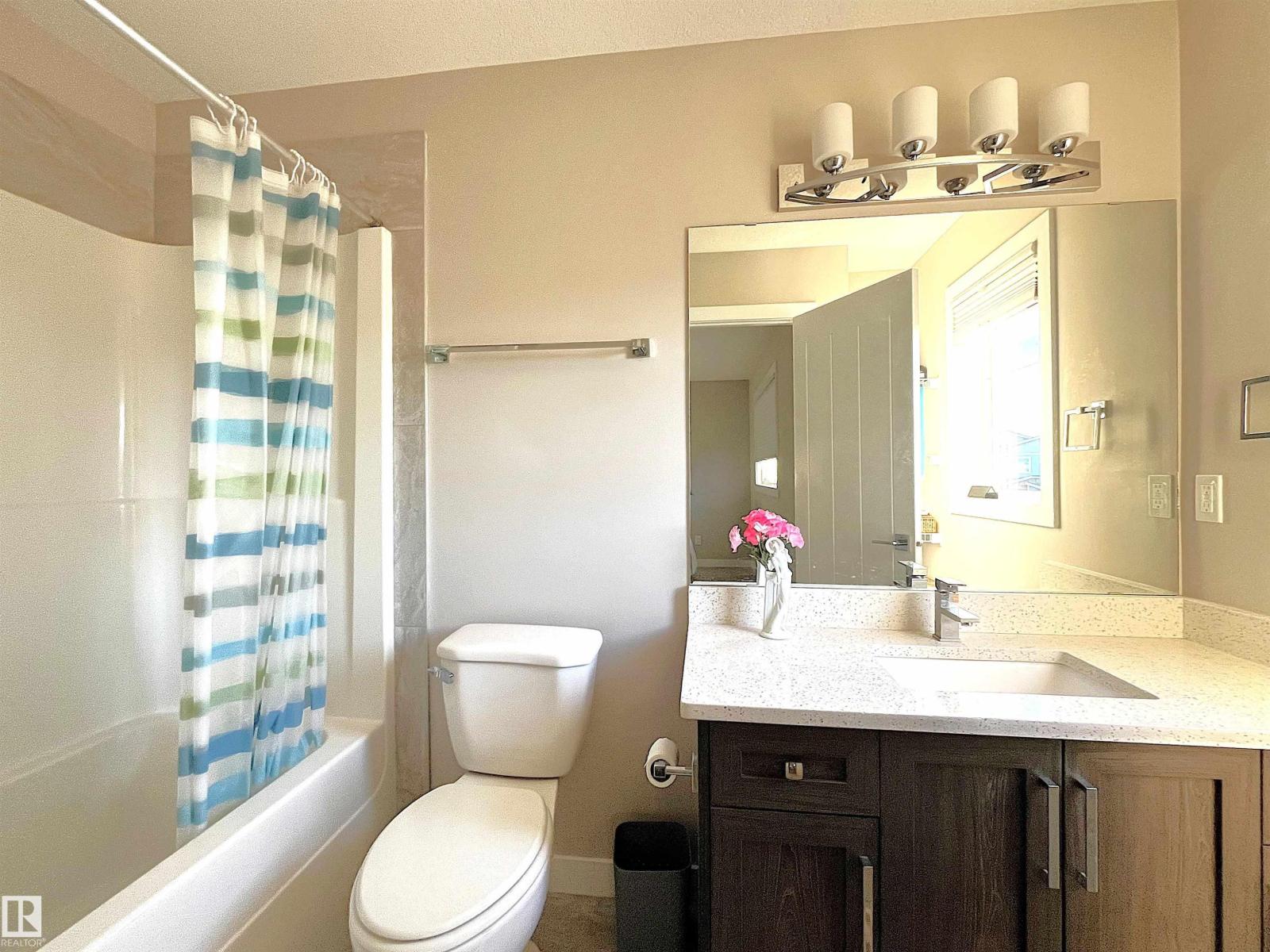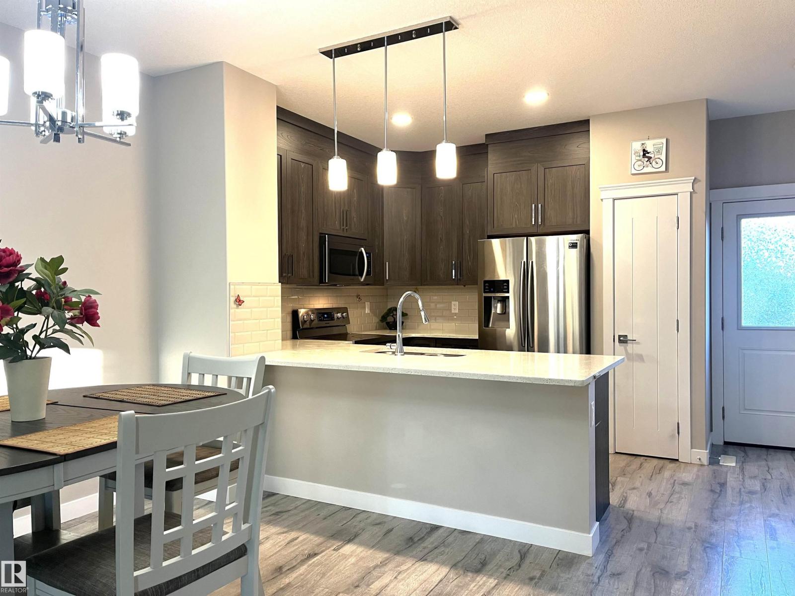 FINISHED BASEMENT with separate entrance! Amazing, like new condition, 3 + 1 bedroom, 3.5 bathroom home in a quiet crescent location! Open design main floor with 9 ft ceilings. Excellent upgraded kitchen with pantry, quartz counter tops, 40 upper cabinets, tile back splash and premium stainless steel appliance package. Cozy living room is enhanced with electrical fireplace. Main floor laundry with front load Samsung washer and dryer. Upper floor boasts 3 bedrooms. Master with walk-in closet and full ensute. Basement is fully finished with another living room, good size bedroom and 3 pcs bathroom. Separate entrance to the basement gives potential rental possibility. Garage is fully finished too! Walk to award winning playground, hockey rink and lake! In excellent condition and move in ready! (id:63190)