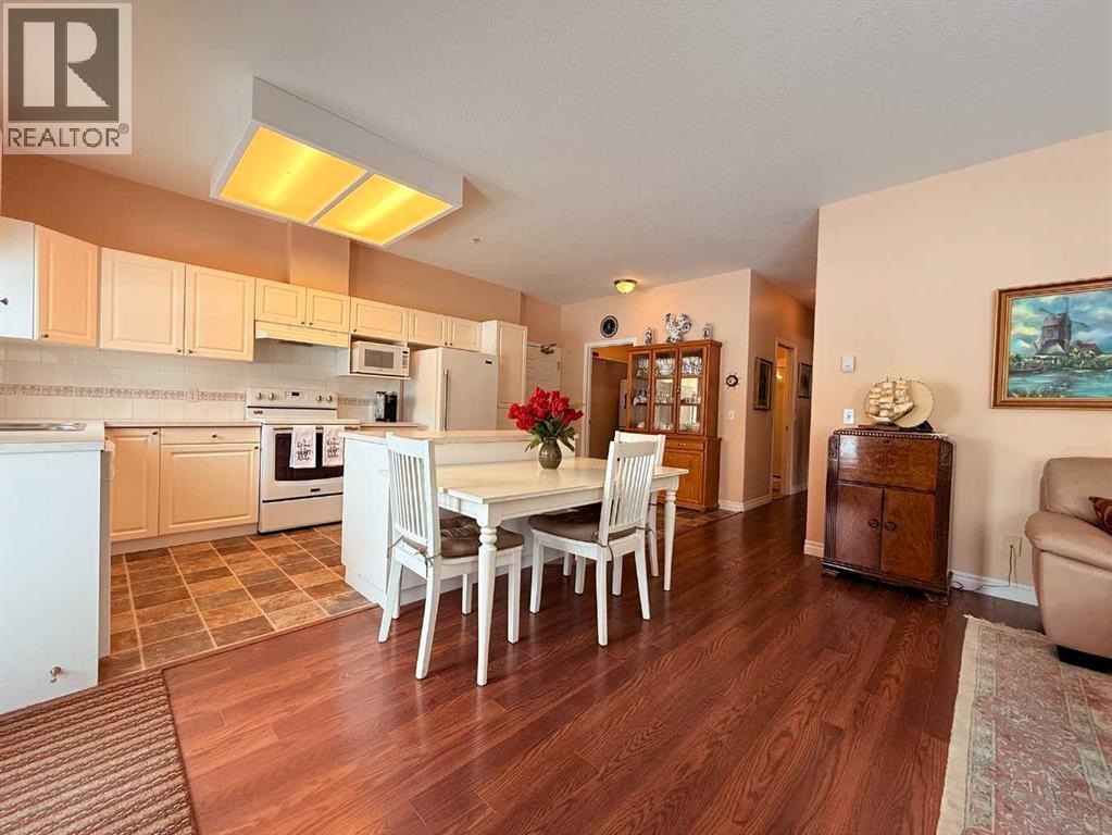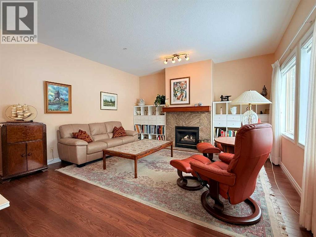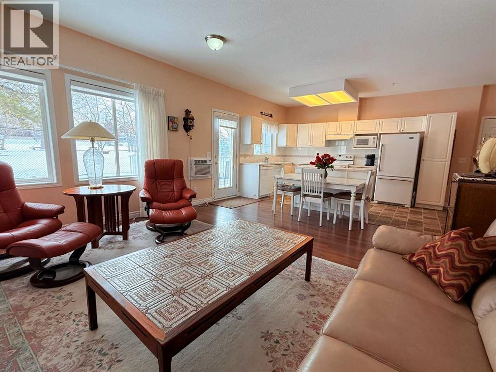 *** GLENMEADOW GARDENS AWAITS YOU!! *** THIS 55+ AGE RESTRICTED BUILDING IS PERFECT FOR THE EMPTY NESTERS AND RETIREES. A great community withing these walls of people who share the similar walks of life in a setting that's friendly, enjoyable and fun for those to live in the 'Gardens'. Featuring secured entry in the intercom room, to the cozy furnished foyer, you get the sense already that this is the perfect next 'home' for a maintenance-free lifestyle. This unit is situated at the back of the north side, backing onto the green space with an east/southeast private view off the patio. Enter and notice the bright sun drenched floor plan with newer flooring from the island kitchen to the living room, to the hallways leading to the generous sized bedrooms/bathrooms. The kitchen with newer appliances, an island for storage and serving, to the storage/laundry room with stacked full sized laundry appliances. The living room is the perfect cozy retreat with the wall flush gas fireplace, wall mounted A/C unit, and full sized windows. The primary bedroom with dual walk in closets, a full 5-piece bathroom with a wakl in jacuzzi style tub, dual sinks and modern fixtures. The 2nd bedroom with closet space, next to the 3-piece bathroom. There is an underground heated parkade with assigned parking stalls. The upper level features a games room, exercise equipment and a library with media. The main floor offers the recreation room with full banquet setting, a corner gas fireplace and a full kitchen for prepared meals for larger gatherings and special occasions. This is a very well managed, clean and extremely well serviced building that is professionally managed from top to bottom. Condo fees include heat, water, sewage and natural gas. This unit has in-floor heating throughout, making it cozy in the winter along with the gas fireplace adding to the ambiance of a warm retreat. No disappointments, don't wait, these don't come up often, especially with the privacy setting off the ea st courtyard side. (id:63190)