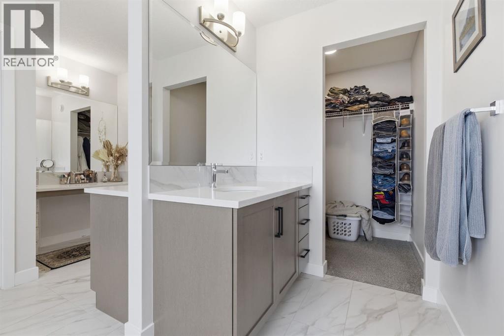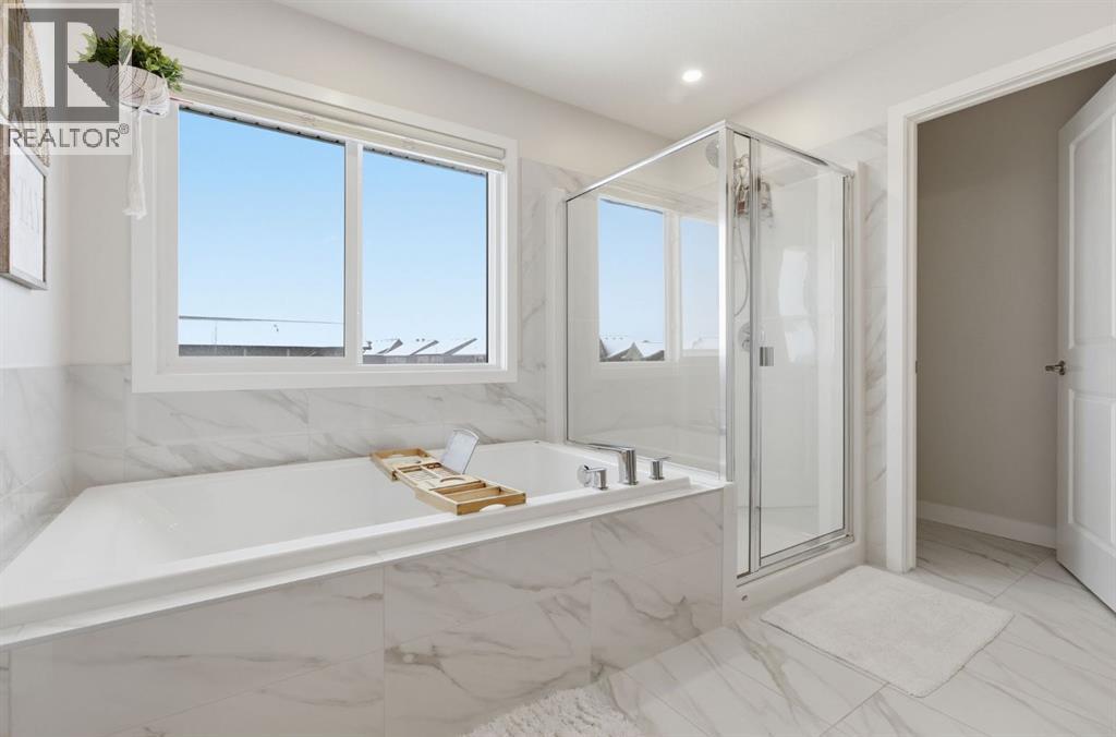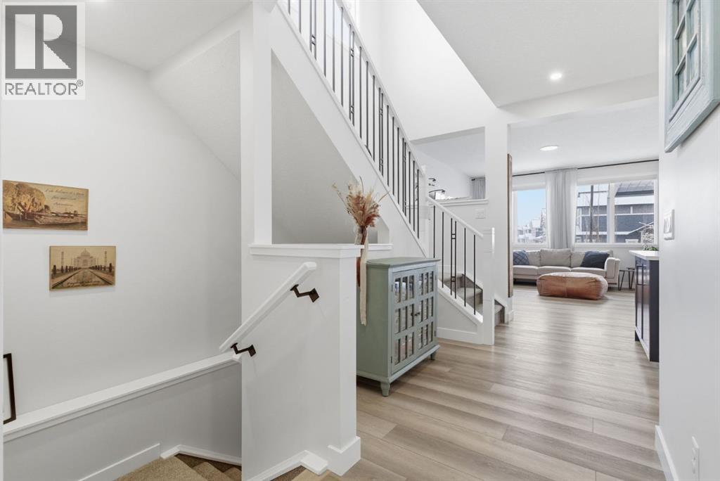 Welcome to this beautifully upgraded 2,612 sq ft corner-lot home in the sought-after community of Sunset Ridge, offering the perfect blend of comfort, functionality, and modern design. Ideally located just steps from parks, walking paths, and schools, this home also backs directly onto a pathway with no neighbours behind—providing added privacy and a true outdoor lifestyle.The main floor is highlighted by Jayman’s signature “Glass Wall” upgrade, featuring an expansive sliding glass door flanked by two oversized windows that flood the living space with natural light and create a seamless connection to the backyard. The open-concept layout is ideal for both everyday living and entertaining, anchored by a massive kitchen island that serves as the heart of the home. A dedicated main floor office offers the perfect work-from-home setup.Upstairs, you’ll find oversized bedrooms and generous living space throughout, while the raised basement ceiling offers incredible potential for future development with a bright, open feel rarely found at this level.This home is loaded with thoughtful upgrades, including triple pane windows for year-round efficiency and comfort, central air conditioning, smart dimmable switches throughout, and an oversized garage (extended by 2 feet) complete with a 240V plug for electric vehicle charging.Step outside to your private oversized backyard retreat, featuring a professionally installed Suncoast Enclosures louvered pergola—perfect for enjoying sunny afternoons or relaxing evenings in any weather. With mountain views to the west and located in one of Cochrane’s most family-friendly neighbourhoods, this is a rare opportunity to own a move-in-ready home with premium features, exceptional outdoor space, and unbeatable proximity to amenities. (id:63190)