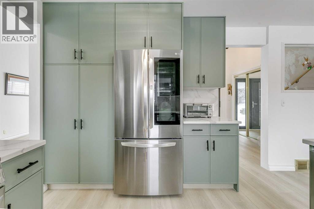 Welcome to life in Lake Bonavista — where mature trees, timeless charm, and year-round lake access come together in one of Calgary’s most sought-after communities. Tucked away on a quiet street in the prestigious estates area, this beautifully refreshed two-storey home offers the perfect blend of space, style, and lifestyle.From the moment you step inside, soaring vaulted ceilings and an abundance of natural light create an inviting, airy feel. The main and upper levels have been thoughtfully updated with luxury vinyl flooring, fresh white paint, and modern lighting, giving the entire home a bright, cohesive look.At the heart of the home is the fully renovated kitchen, designed for both everyday living and effortless entertaining. Featuring quartz countertops, new cabinetry and hardware, a built-in pantry with pull-out drawers, and updated appliances, sink, and faucet — it’s as functional as it is beautiful. A sunny breakfast nook overlooks the backyard, while the formal dining room is ready to host holidays and gatherings with ease.The main floor offers exceptional versatility with two distinct living spaces — a formal front living room and a cozy sunken family room centered around a wood-burning fireplace. A main-floor bedroom provides the perfect option for guests or a home office, complemented by an updated powder room.Upstairs, you’ll find three generously sized bedrooms, including two with walk-in closets and built-in organizers. The upper level is complete with a refreshed five-piece main bathroom and an updated three-piece ensuite.The newly carpeted lower level expands your living space with a large recreation room, wet bar, hobby room, full bathroom, and plenty of storage — ideal for growing families or entertaining.Outside, the home continues to impress. The exterior and garage door have been professionally repainted, most windows upgraded to durable fiberglass with Hunter Douglas blinds, and LeafFilter gutter protection adds long-term peace of mind. The fenced, level backyard is both spacious and low-maintenance — perfect for summer BBQs, kids, pets — and includes valuable RV parking, a rare and desirable feature in this community.Additional highlights include a double attached garage, a statement designer front door, and a brand-new washer and dryer conveniently located on the main floor.Set on a generous lot and just steps from schools, playgrounds, and green space — plus exclusive lake access — this is more than just a home, it’s a lifestyle. Skate on the lake in the winter, spend summers by the water, and experience the kind of community people rarely leave. Book a showing today! (id:63190)