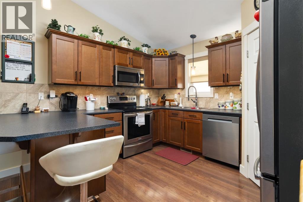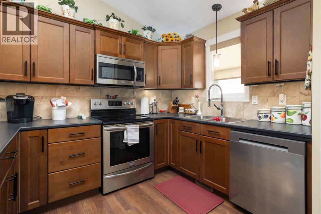 Welcome to this charming 1014 sq ft bungalow tucked into the friendly community of West Park. From the moment you arrive, this home feels like something out of a storybook, with its picture perfect curb appeal and low maintenance front yard featuring artificial turf.Step inside and you’ll immediately notice the abundance of windows that fill the space with natural light. The open concept main floor offers beautiful flooring and a functional layout that seamlessly connects the living room, dining area, and kitchen. The kitchen is designed for everyday ease with a pantry and plenty of workspace, making it as practical as it is inviting.The main floor features two bedrooms, including a spacious primary bedroom and a 4 piece bathroom. Downstairs, the partially finished basement offers even more living space with a rec room, an additional bedroom, a 4 piece bathroom, and a dedicated laundry area and storage. Outside, the fully fenced yard is perfect for relaxing or entertaining, highlighted by a massive covered back deck. When you're not out enjoying the sun you can enjoy the comfort of A/C inside. The double detached garage is heated with a pellet stove, making it ideal for year round use. With a paved alley behind and no rear neighbors other than open farmland, you’ll love the added privacy and peaceful views. This home shows like new and offers a community where you know your neighbors by name and you can't wait to come home at the end of a long workday. (id:63190)