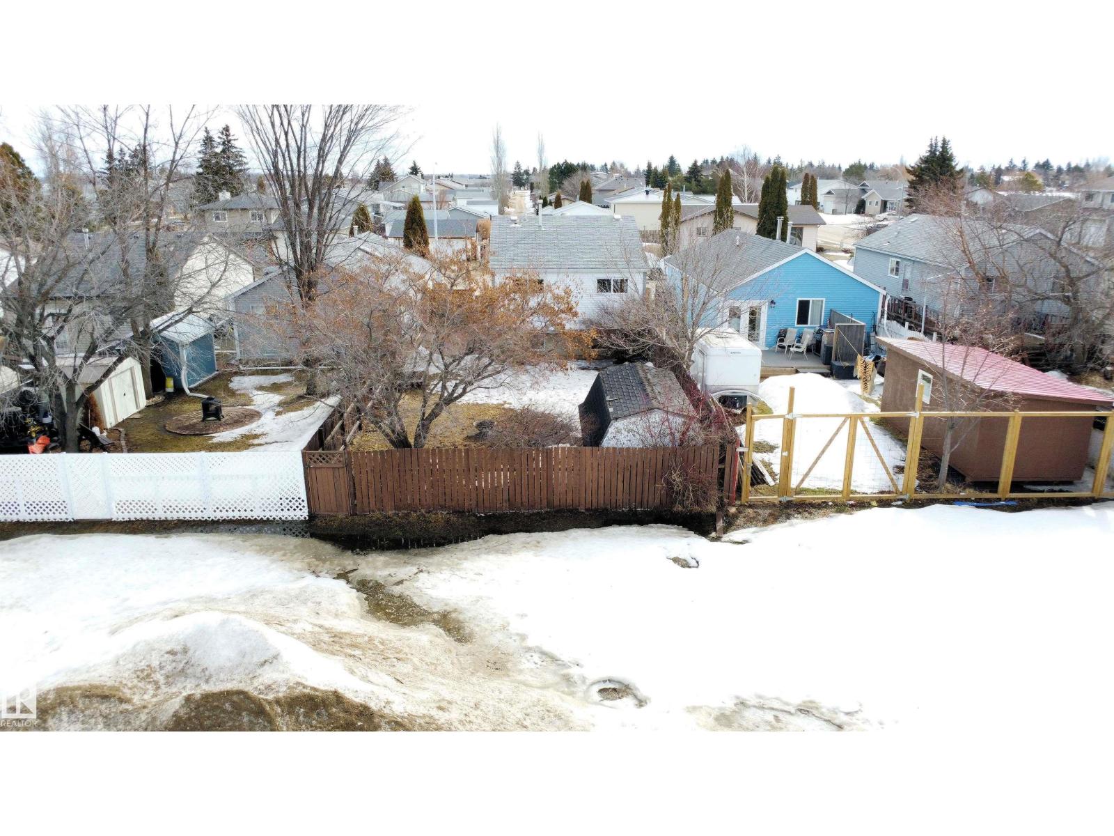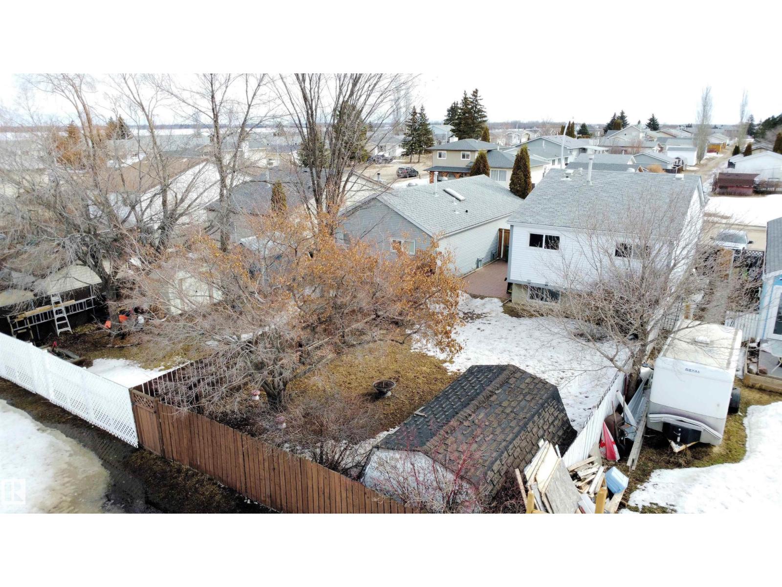 Welcome to this charming 1,023 sq. ft. raised bungalow located in a quiet, family-friendly area of Westlock, just steps from schools and parks. This well-kept home offers 3 bedrooms and 2 full bathrooms, making it an excellent choice for families, first-time buyers, or those looking for a comfortable and functional layout. The main level features a bright, inviting kitchen with an island, perfect for casual meals, entertaining, or keeping an eye on everyday activity. Natural light flows through the home, creating a warm and welcoming atmosphere. The finished basement provides additional living space—ideal for a family room, home office, or guest area. Outside, you’ll love the large, fully fenced yard with no houses behind, offering privacy and a peaceful setting. Enjoy outdoor living with a patio, fire pit, and mature trees, making this backyard perfect for relaxing evenings and gatherings with family and friends. With a great combination of indoor comfort, outdoor space, and a convenient location close t (id:63190)