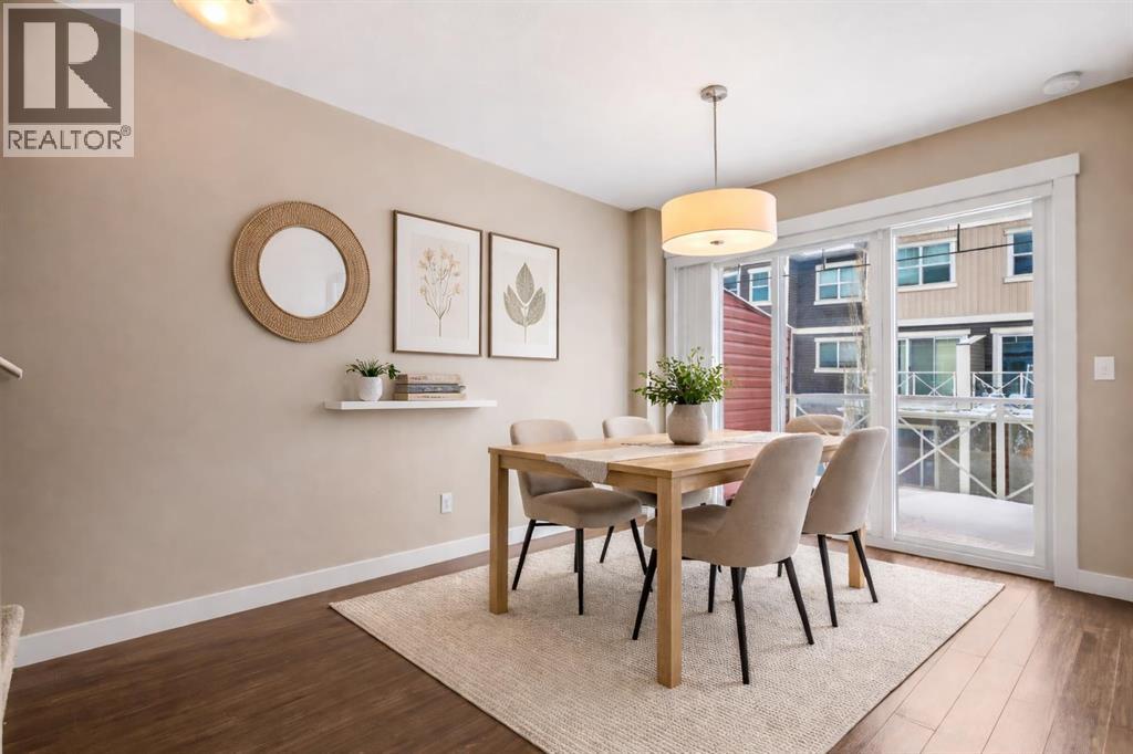 A home that instantly feels inviting, where space, light, and thoughtful design come together effortlessly in the vibrant community of Skyview Ranch. From the moment you step inside, you’re greeted by a spacious foyer area that sets the tone offering room to settle in, kick off your shoes, and truly feel right at home. The main level is designed for connection and comfort, featuring a bright open concept layout that seamlessly brings together the kitchen, living, and dining area. At the heart of it all is a spacious kitchen featuring ample cabinet storage and a large central island with a breakfast bar perfect for everything from quick morning coffees to hosting friends. Overlooking the expansive living and dining area, this open concept creates a seamless flow that’s ideal for both entertaining and everyday life. Step outside through the sliding doors onto your private balcony—perfect for summer BBQs and relaxing evenings with family and friends. A tucked away 2 piece bath completes this level with added convenience. Upstairs, you’ll find a thoughtfully designed layout with a spacious primary bedroom featuring a walk-in closet and a 4 piece ensuite—your own private retreat at the end of the day. The second bedroom is impressively sized and offers flexibility for a home office, guest room, or a growing family. Conveniently located upstairs, the laundry adds to the everyday ease of living. Complete with a single attached garage and a full driveway for additional parking, this 3 storey townhouse checks all the boxes. Ideally located close to parks, walking paths, schools, everyday amenities, and major roadways. This is more than just a place to live it’s a space where your day to day feels easier, where you can host, relax, and truly enjoy coming home. Whether you're starting your next chapter, investing in your future, or simply looking for the right fit, this home offers the lifestyle and flexibility. (id:63190)
