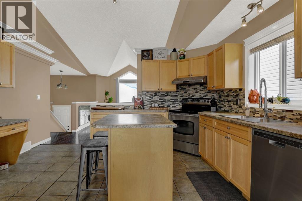 Developed and spacious bi-level located in desirable Royal Oaks— Steps from a playground! This well-maintained home offers 4 bedrooms (5Th unfinished) and 3 full bathrooms (all have tubs), making it perfect for families. The main floor features vaulted ceilings over the kitchen and living area, creating a bright, open feel with an abundance of natural light. Enjoy functional kitchen complete with ample counter space, stainless steel appliances, and a stylish tile backsplash. The primary bedroom is generously sized and includes a walk-in closet and private ensuite. Downstairs, you’ll find a bright, developed basement with large windows, an additional two bedrooms, a spacious rec room highlighted by an impressive feature wall, plus a full bathroom, and laundry area. Additional highlights include a heated garage, Air conditioning / new Furnace in 2024 plus new contour curbing in the front yard last summer. The fully fenced and landscaped yard offers great outdoor space, complete with a large south facing deck for relaxing or entertaining. Ideally located close to two schools, parks, and amenities. This is a fantastic family home in a great neighborhood! (id:63190)