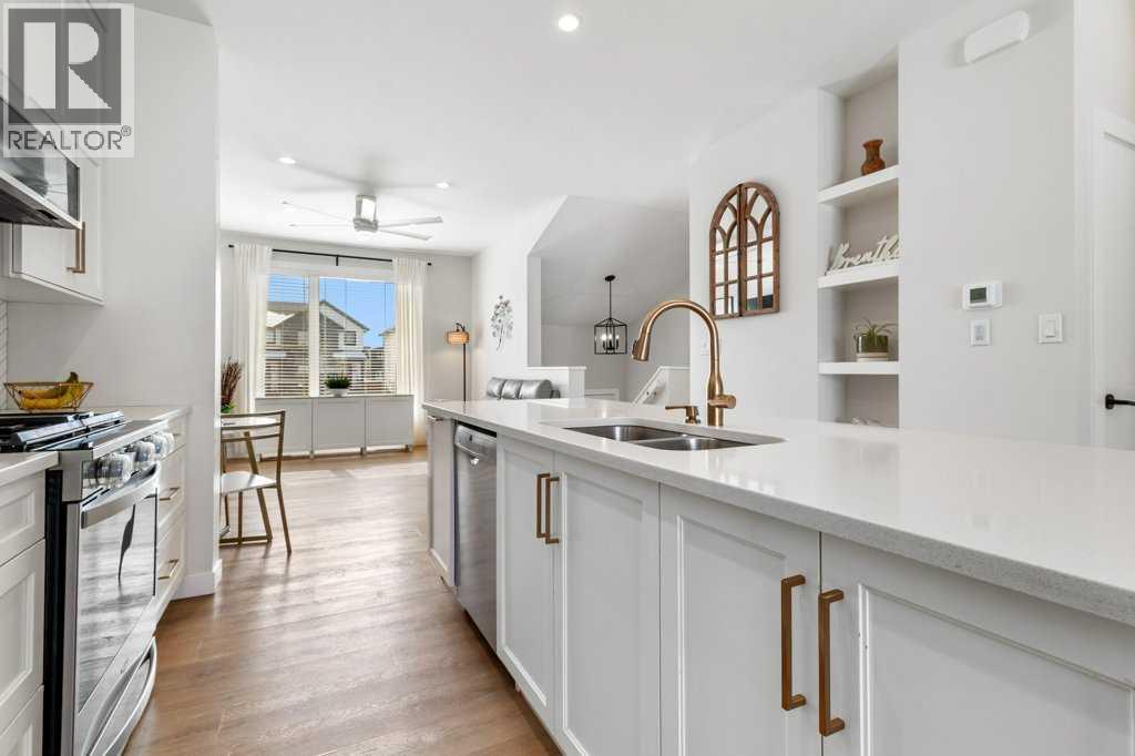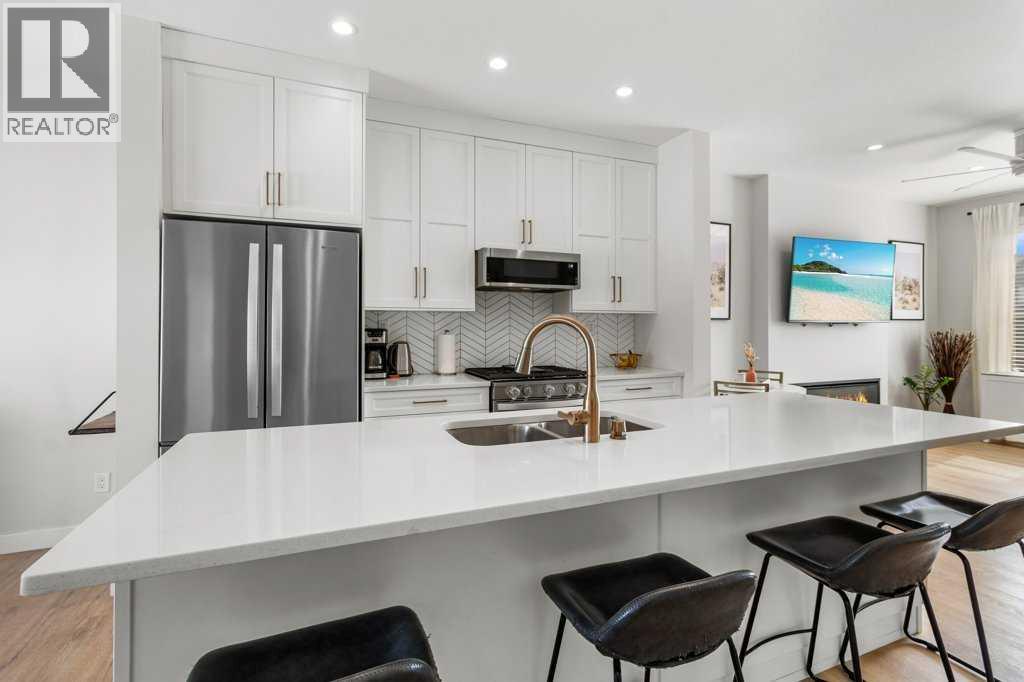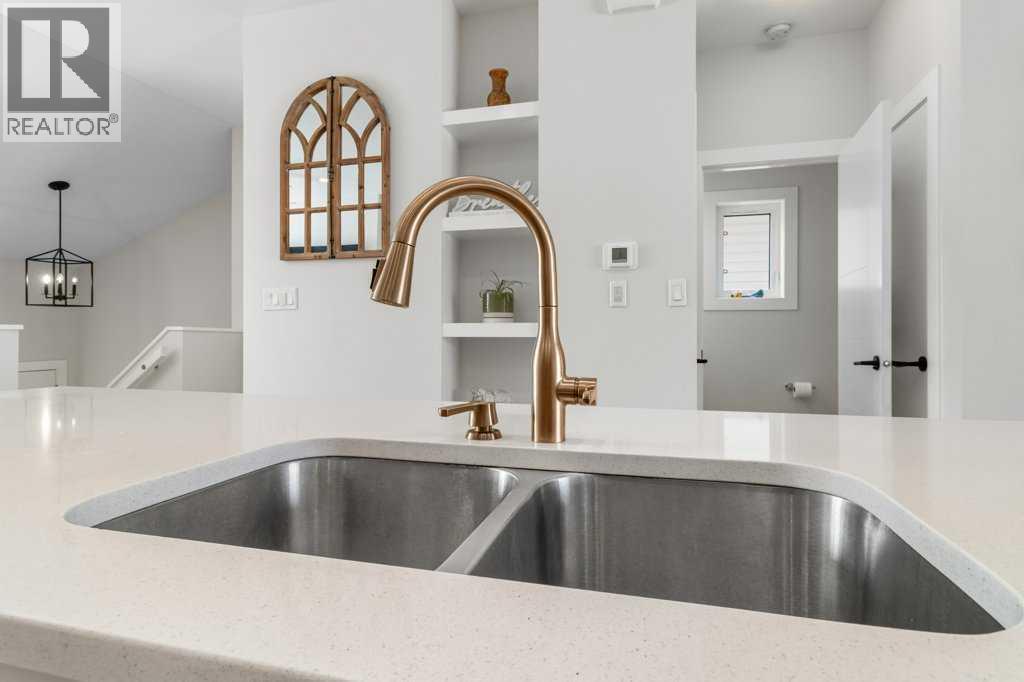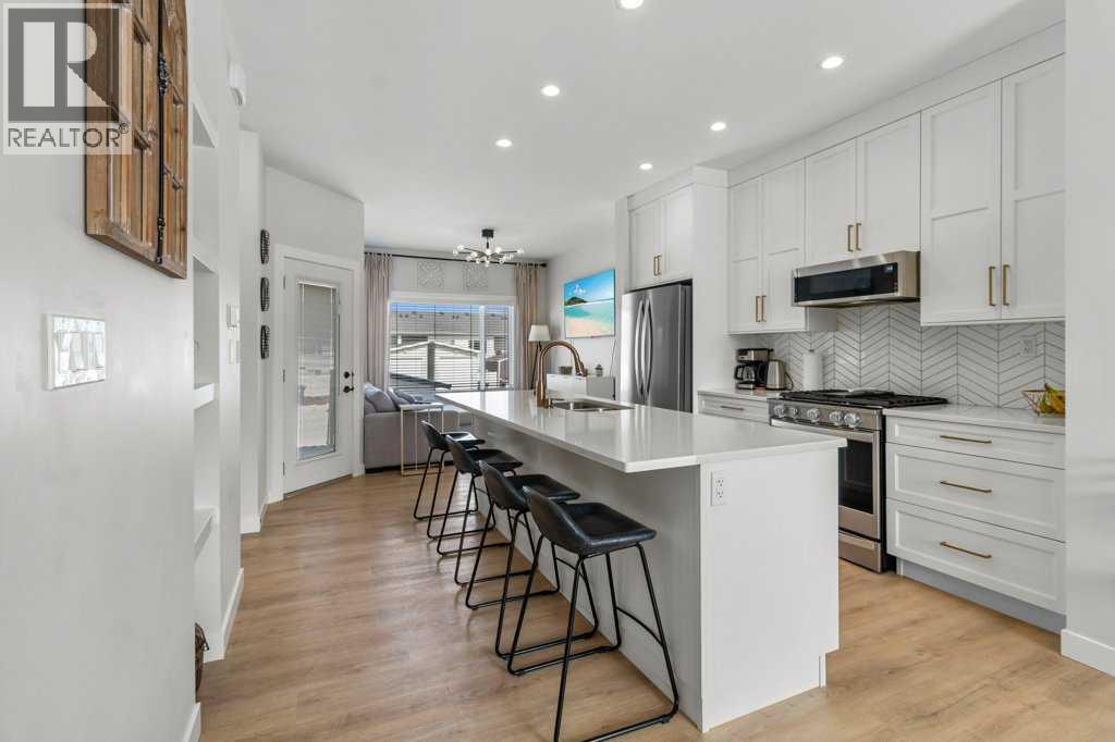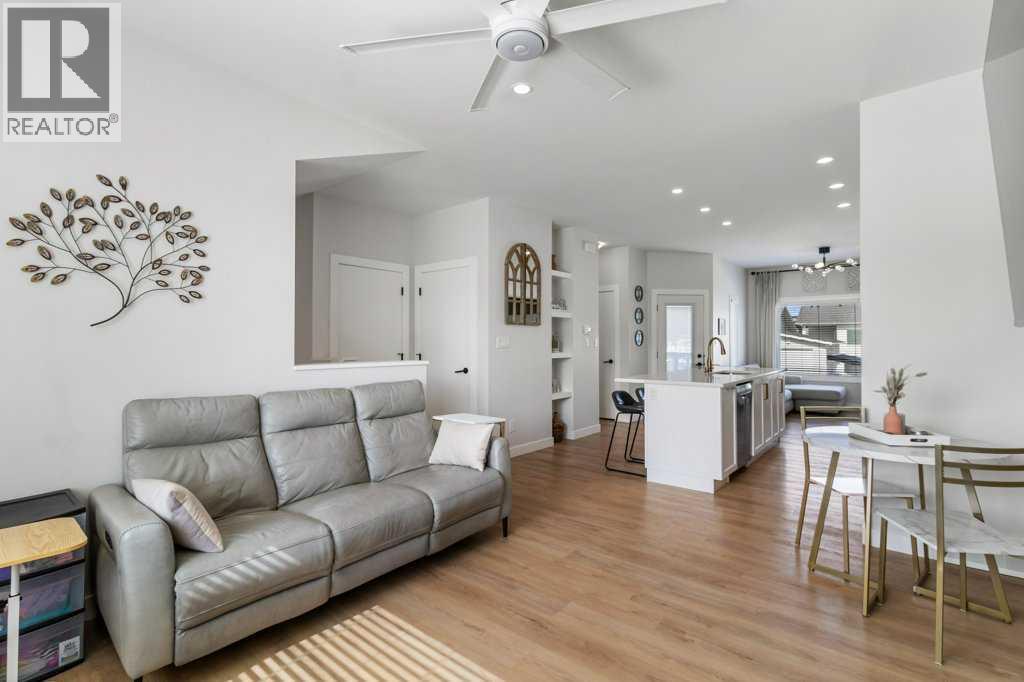 Welcome to 52 Evergreen Way in Red Deer, located in the desirable and well established community of Evergreen. This beautiful end unit townhome offers a wider footprint and larger yard than some interior units, along with thoughtful upgrades and exceptional care throughout. Step inside to a spacious entry and head up to the bright, open concept main level featuring 9’ ceilings and luxury vinyl plank flooring. The stunning kitchen is beautifully finished with quartz countertops, full tile backsplash, a large island with seating, and an abundance of white cabinetry extending to the ceiling. It is open to the dining and living areas, creating the perfect space for entertaining or spending time with family. The living room showcases an oversized Napoleon gas fireplace with a custom feature wall, creating a warm and inviting focal point. The space is also thoughtfully designed with a built-in TV niche to conceal wiring for a clean, modern look, and the TV wall mount is included. From the main living area, step out to your private west facing deck where you can enjoy afternoon sun, evening sunsets, and open views of the green space. A phantom screen door was added to the deck in June 2025 and comes with warranty. The outdoor area has been carefully designed for low-maintenance living, featuring a stamped concrete patio, gravel landscaping, established perennials, and a well-built shed. The fully finished lower level offers three bedrooms, including a spacious primary suite with a walk-in closet and an updated ensuite featuring a large shower. Two additional bedrooms, a full bathroom, storage, and convenient in-hall laundry complete the lower level. Additional highlights include air conditioning, a high-end ceiling fan, stainless steel appliances including a gas stove, and both front and rear parking options. The yard is fully finished with no lawn to maintain, making this an ideal property for those seeking low-maintenance living. Located close to walking paths, scenic po nds, playgrounds, and within walking distance to Clearview Market, this home offers both comfort and convenience in a fantastic neighborhood. (id:63190)