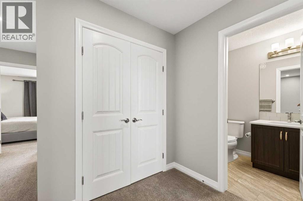 **OPEN HOUSE SAT APRIL 25 12-2 pm** Set within the lake community of Mahogany, this upgraded Jayman Sonata 20 model stands out for the level of thought and investment throughout. Each upgrade was chosen with purpose, focused on practical improvements, quality finishes, and the kind of details that add up to a home that simply works and flows better day-to-day. The kind of home that you would intentionally craft if given the opportunity to choose all of your desired improvements. The main level is open and architectural, shaped by elevated ceiling height and uninterrupted sight-lines. The entrance is defined by a strong focal point on the living room fireplace, finished in upgraded stone and carried vertically to the ceiling, reinforcing scale and balance within the space. The kitchen has been thoughtfully upgraded beyond builder standard, featuring an added pantry, a central oversized island in place of the standard peninsula, upgraded quartz countertops, and full-height tile backsplash for a more finished look. A gas range offers everyday functionality, while two-tone, soft-close cabinetry adds subtle contrast and keeps the palette refined. Upstairs, the primary suite is both spacious and practical, with an oversized walk-in closet and a private ensuite featuring a tiled walk-in shower. A walk-through laundry connection and thoughtfully expanded closet layout are part of a series of carefully selected builder enhancements that improve daily convenience and flow. Two additional bedrooms and a family bath provide flexibility for family life, work, or retreat. The builder-developed basement is elevated by an extra-depth foundation, creating a noticeably higher ceiling in the media room, an uncommon advantage that shifts the space from basement to destination. A built-in wet bar adds functionality for entertaining, while a fourth bedroom and full bathroom complete a lower level designed for independent use. System upgrades are integrated rather than showcased, includin g solar panels, air conditioning, hot water on demand, smart home technology, and Hardie board siding on both the house and garage. Exterior Gemstone lighting adds durability and year-round convenience rather than seasonal novelty. The sunny south-facing yard extends the living experience and features professional landscaping, an oversized deck, and a beautiful two-tone custom patio. The detached double garage is fully insulated and drywalled, and is future-ready, wired for 240V EV charging. Mahogany provides the backdrop to this home’s beautiful design, an established lake community built around pathways, parks, wetlands, and a year-round lake-focused lifestyle that prioritizes outdoor connection, recreation, and everyday convenience. (id:63190)