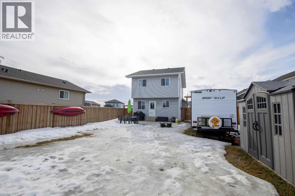 This well-kept modern two-storey in Clairmont is move-in ready and shows pride of ownership throughout. Offering a large concrete driveway with plenty of space for vehicles, trailers, and dedicated RV parking, plus a spacious yard that’s been upgraded with a brand new fence and RV gate for added access and functionality. The backyard also features a new 20 x 20 concrete patio, perfect for relaxing or entertaining, along with two new 10 x 8 sheds for extra storage. Inside, the home is bright and inviting with large windows and a clean, modern feel. The kitchen offers white cabinetry, tiled backsplash, updated stainless steel appliances, and new faucets, flowing nicely into a good-sized dining area with direct access to the backyard. Upstairs you’ll find 3 bedrooms including a spacious primary with a 3-piece ensuite and walk-in closet, along with a full bathroom for the additional rooms. The basement is undeveloped and ready for your future plans. A solid home with great upgrades, functional space, and room to grow. Call and book your viewing today! (id:63190)