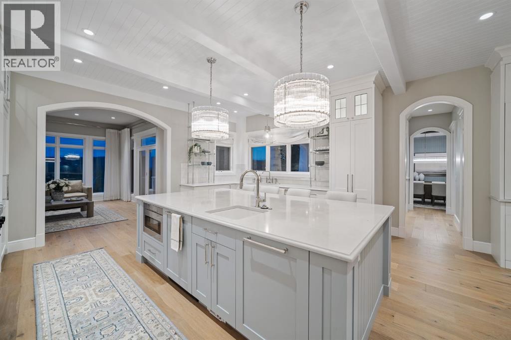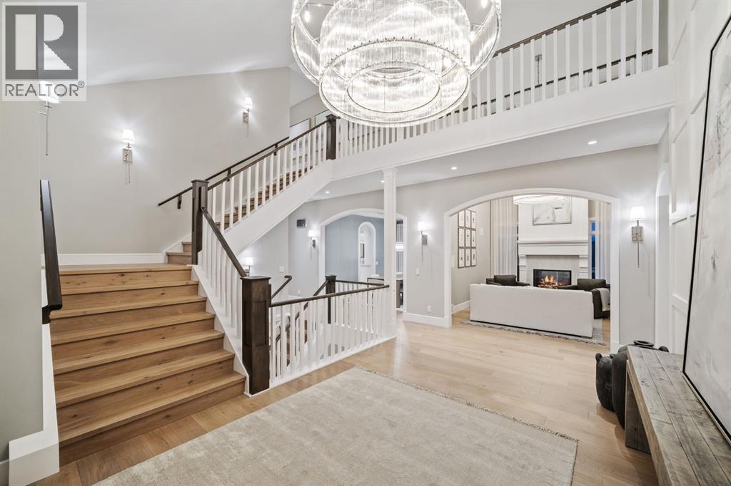 Words can’t quite capture the warmth, elegance, and undeniable presence of this extraordinary estate in the coveted community of Hawks Landing. Perfectly positioned along the 14th tee box of the prestigious Priddis Greens Golf Course, this home is wrapped in mature trees, peaceful pathways, and nature’s quiet calm—offering over 7,730 sq ft of luxurious, comfortable living that feels like a true sanctuary.Recently transformed through an extensive $1.5M+ renovation, every square inch of this 5-bedroom, 4.5-bath residence has been thoughtfully reimagined with timeless design, elevated craftsmanship, and an unmistakable sense of home. The moment you step through the doors, the double-height foyer envelopes you in warmth—paneled feature walls, a sculptural chandelier, and rich textures create an inviting welcome that sets the tone for the entire home. Over $150,000 in audio visual system through out this home and set to entertain.Custom cabinetry, designer fixtures, handcrafted millwork, and curated lighting flow seamlessly from room to room. The grand sitting room—anchored by a striking fireplace—is both breathtaking and intimate, offering a beautiful space to gather, unwind, or simply take in views of the manicured fairways beyond. French doors open to an expansive deck where quiet mornings and golden sunsets become part of your daily rhythm.At the heart of the home, a chef-inspired kitchen brings together luxury and livability with a Viking 6-burner gas range, double ovens, premium appliances, and custom cabinetry. A cozy family room, casual dining nook, and built-in study space make this area perfect for everyday living, while the formal dining room, butler’s pantry, and temperature-controlled wine cellar elevate every dinner and celebration. A private office with coffered ceilings offers a refined and inspiring space to work from home.Upstairs, the primary suite feels like a boutique hotel retreat—complete with a private balcony, spa-worthy 6-piece ensuite, stea m shower, deep soaker tub, dual vanities, makeup station, and two walk-in closets. Two additional bedrooms, a stylish bonus room, and beautifully appointed bathrooms complete this welcoming upper level.The walkout lower level extends the home’s comfort and versatility with a sprawling rec space, custom wet bar, home gym, two spacious bedrooms with walk-in closets, and a chic full bath. Step outside and enjoy direct access to the golf course, scenic walking paths, and the natural beauty that defines Hawks Landing.Every system has been updated for peace of mind and modern efficiency—two new A/C units, refreshed furnaces, a new boiler system, freshly poured driveway, and roof ridgecap replacements scheduled for July. From premium appliances to custom electrical upgrades, every detail has been carefully considered.Award winning designer renovation done by Avid Interior Design and where life’s most meaningful moments unfold beautifully. (id:63190)