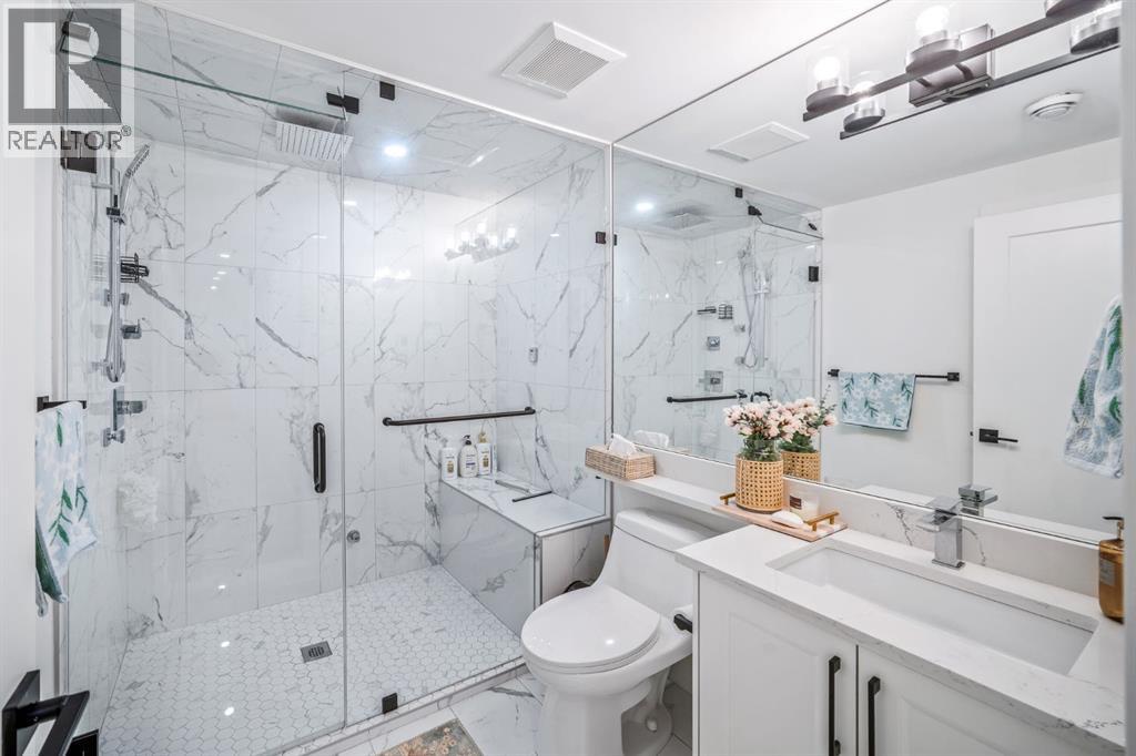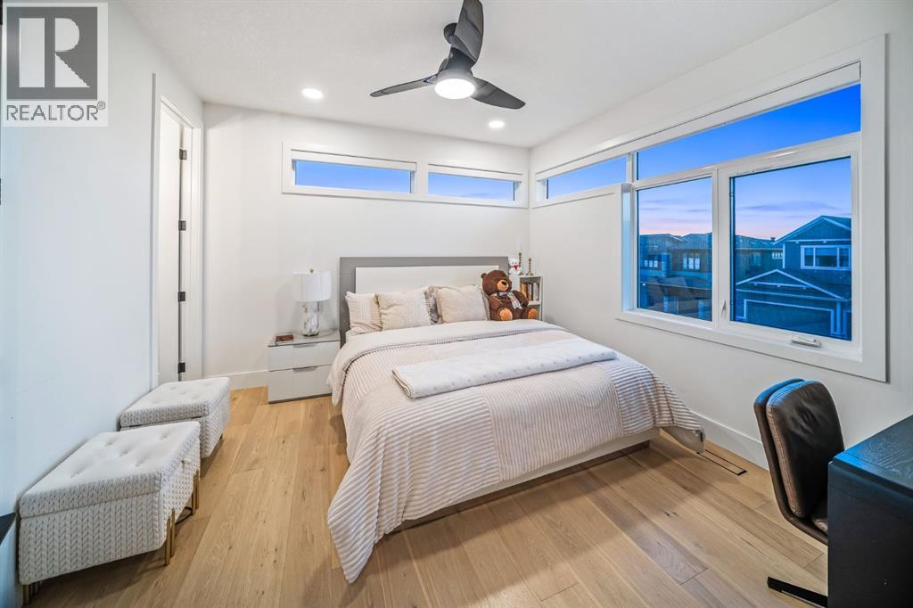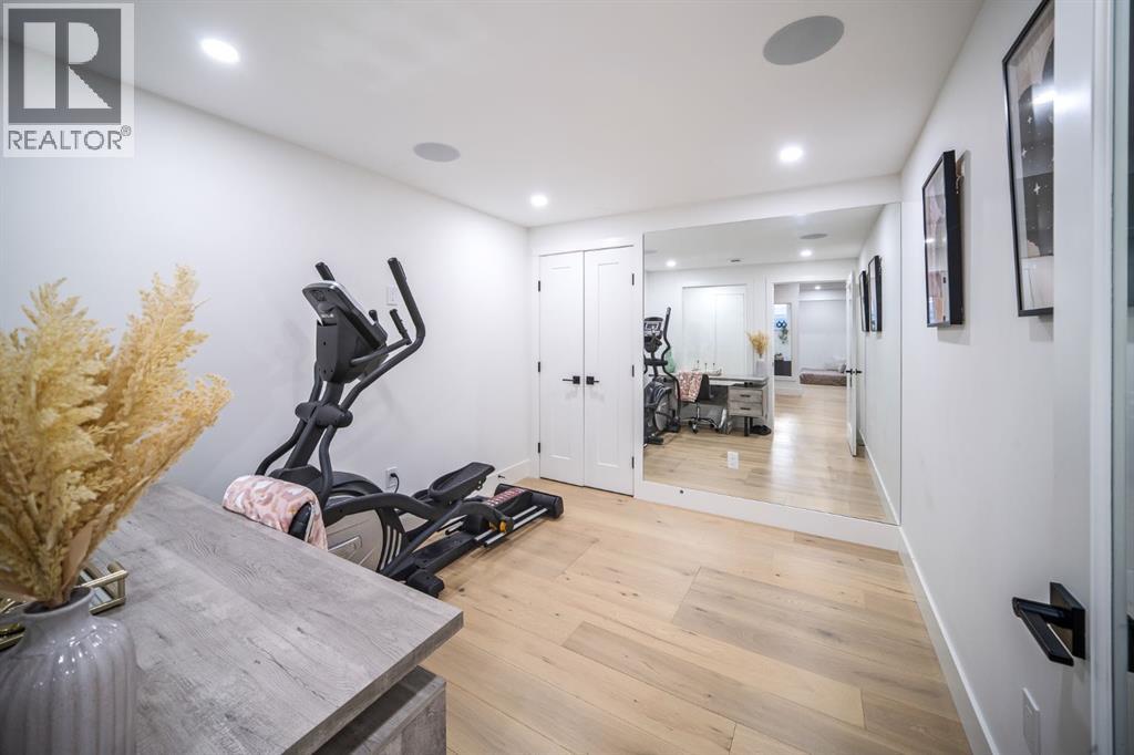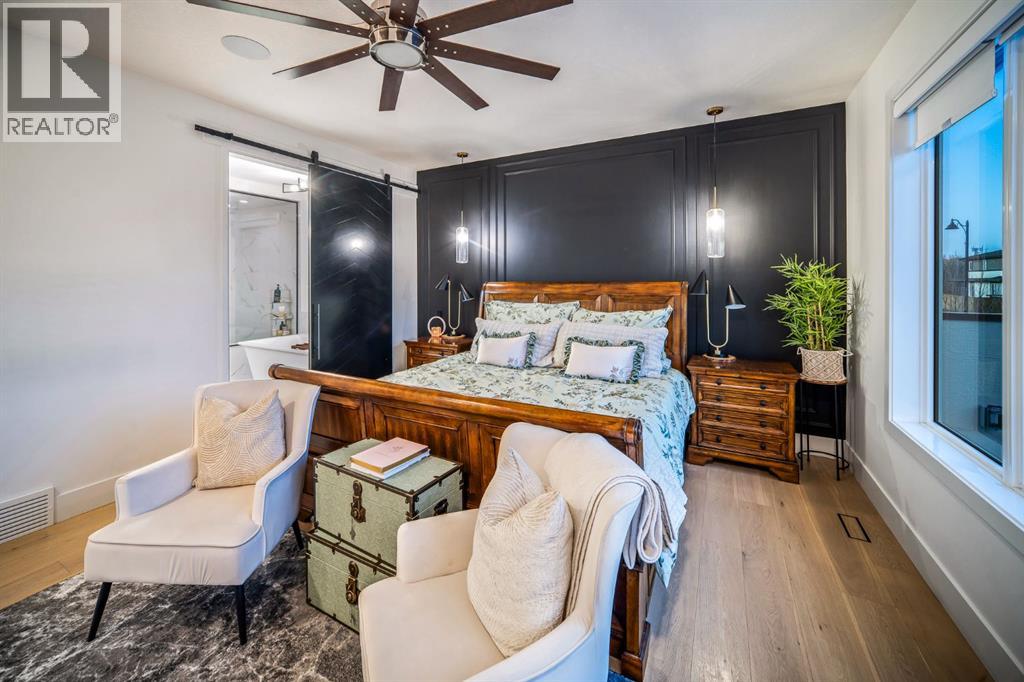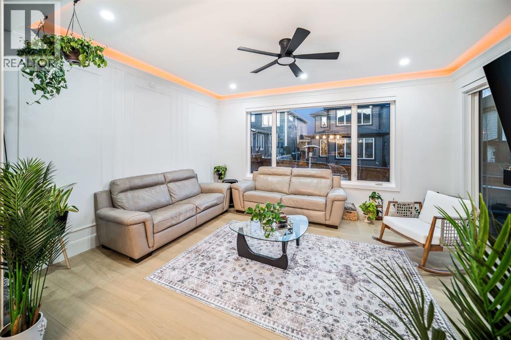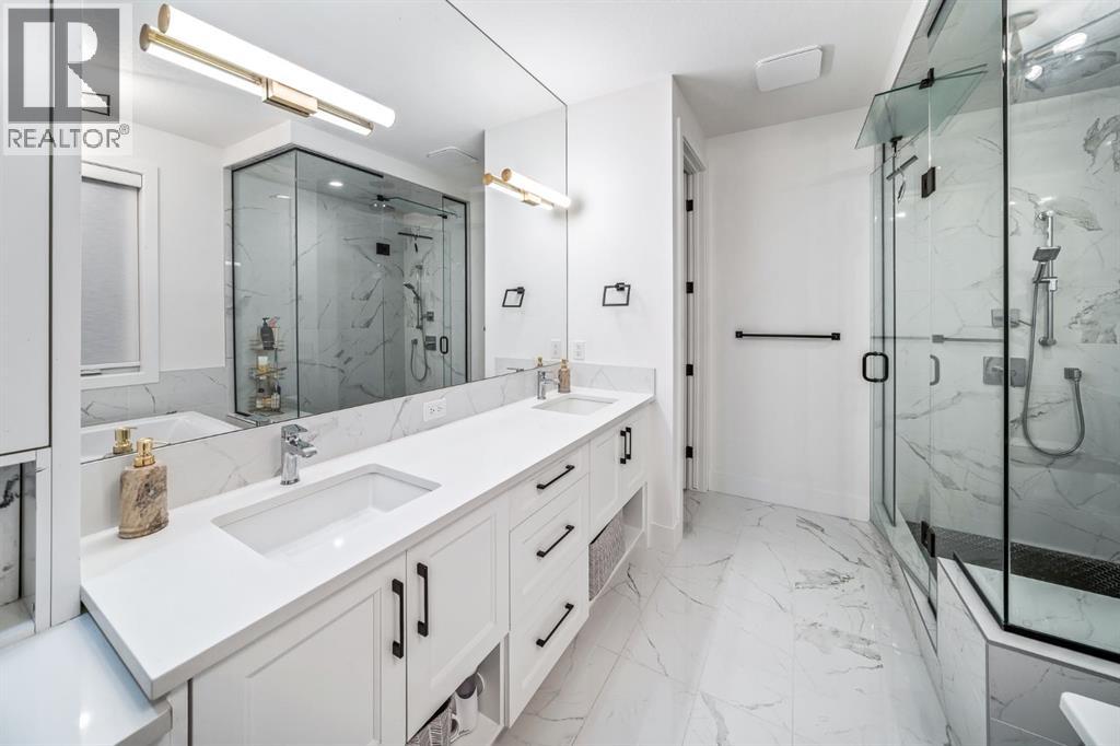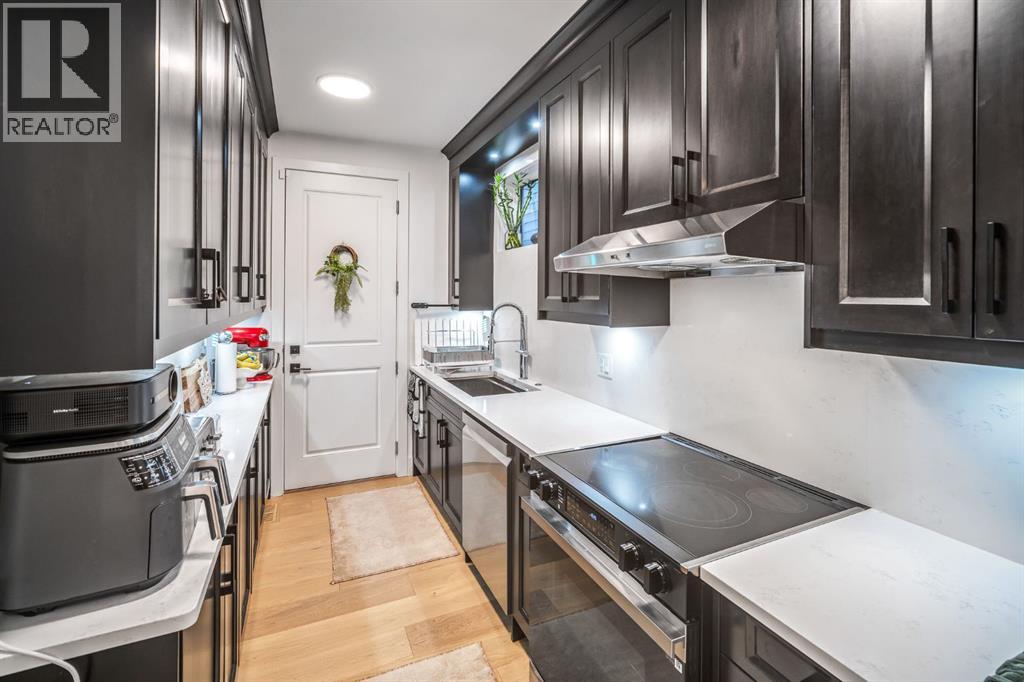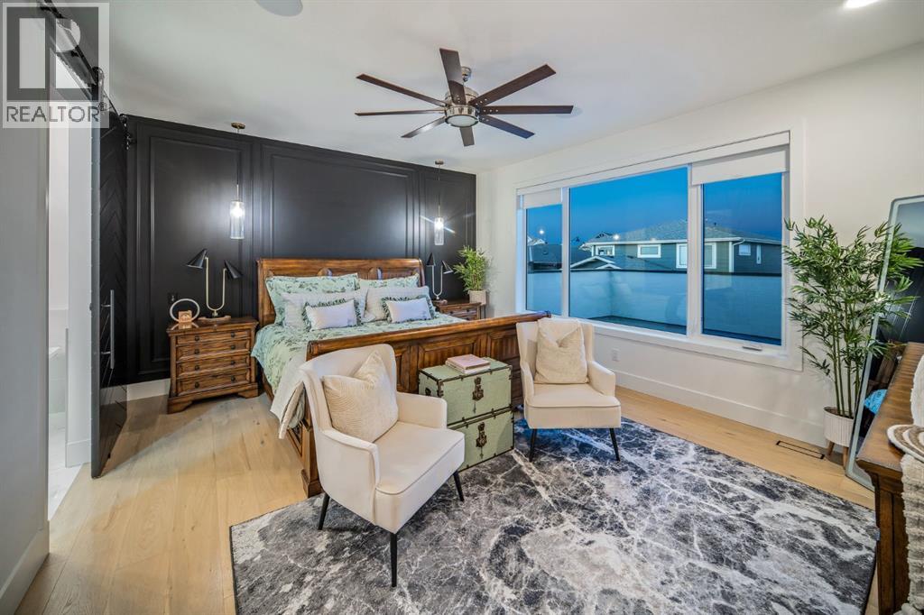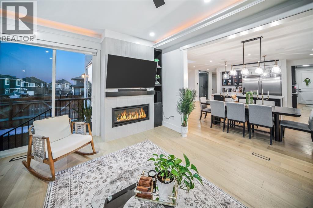 Welcome to this exceptional custom residence in the prestigious community of Aspen Woods—an exquisite family home offering over 4,800 sq ft of impeccably designed living space. Featuring 5 bedrooms and 4.5 bathrooms, this home is thoughtfully crafted for both refined everyday living and elevated entertaining, all set on a generous east-facing lot with a triple attached garage.Upon entry, you’re greeted by soaring 9-foot ceilings and rich hardwood flooring that lead into a breathtaking open-concept living space, where dramatic 20-foot ceilings create a grand yet inviting atmosphere filled with natural light. The chef-inspired kitchen is a true centerpiece, beautifully appointed with extensive custom cabinetry, quartz countertops, a built-in wall oven, gas cooktop with pot filler, an oversized island, and a fully outfitted walk-in pantry. Designed with both function and sophistication in mind, the home also features a separate spice kitchen/butler’s pantry with its own garage access—offering seamless flow and added convenience.The dining area is elegantly enhanced with custom buffet millwork and transitions effortlessly to the outdoor living space. Anchoring the main living room is a stunning floor-to-ceiling stone gas fireplace, complemented by designer lighting and expansive windows that flood the home with warmth and light. A true highlight of the property is the fully enclosed sunroom, thoughtfully designed as an extension of the home and complete with its own fireplace—creating a luxurious, year-round retreat that opens seamlessly onto the patio. Above, a private upper deck awaits completion, offering the opportunity to further elevate the outdoor experience. The main floor also features a beautifully reimagined office, complete with bespoke millwork and custom built-ins. Designer detailing continues throughout, from the refined front entry to the stylish powder room and into the primary suite, creating a cohesive and elevated aesthetic. A well-appointed mudr oom with additional storage completes the level. Upstairs, hardwood flooring continues throughout, leading to a spacious loft-style bonus room—perfect for family living or relaxation. The primary suite is a true sanctuary, featuring a custom sliding barn door and a spa-inspired ensuite with dual vanities, a dedicated makeup station, glass-enclosed steam shower, and a deep soaker tub. Three additional bedrooms complete the upper level—two with private ensuites—alongside an additional 5-piece bathroom, ideal for growing families. The fully developed lower level is designed for both comfort and entertainment, offering a dedicated home theatre, wet bar, versatile flex space, a fifth bedroom, a 3-piece bath, and a generous recreation area. Ideally located near top-rated schools, premium amenities, and with effortless access to the mountains, this remarkable home embodies the Aspen Woods lifestyle—luxurious, connected, and effortlessly refined. (id:63190)
