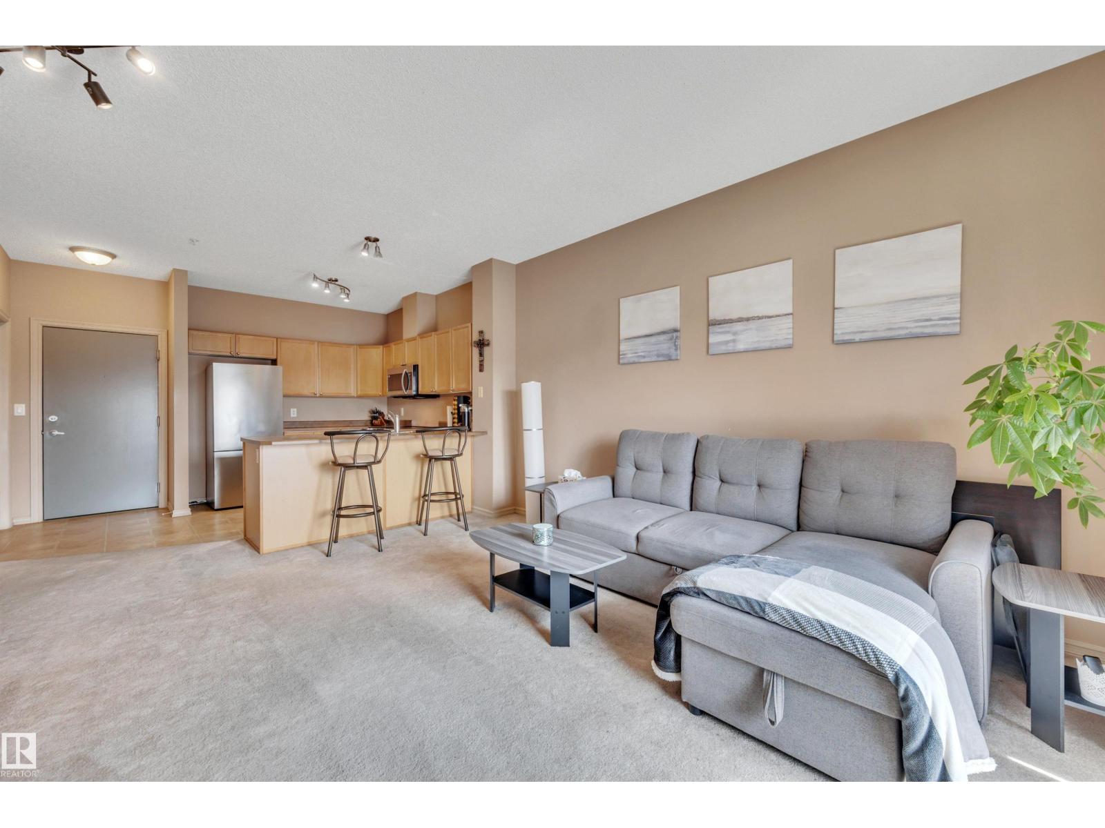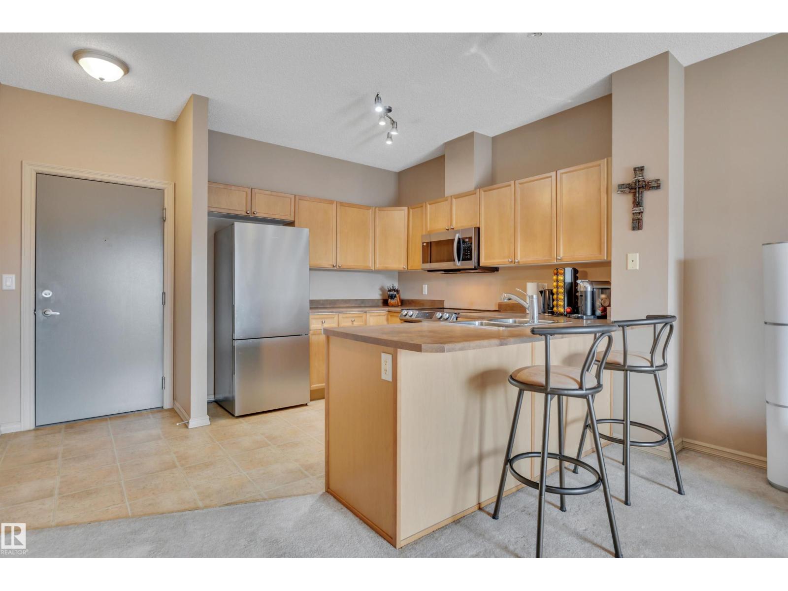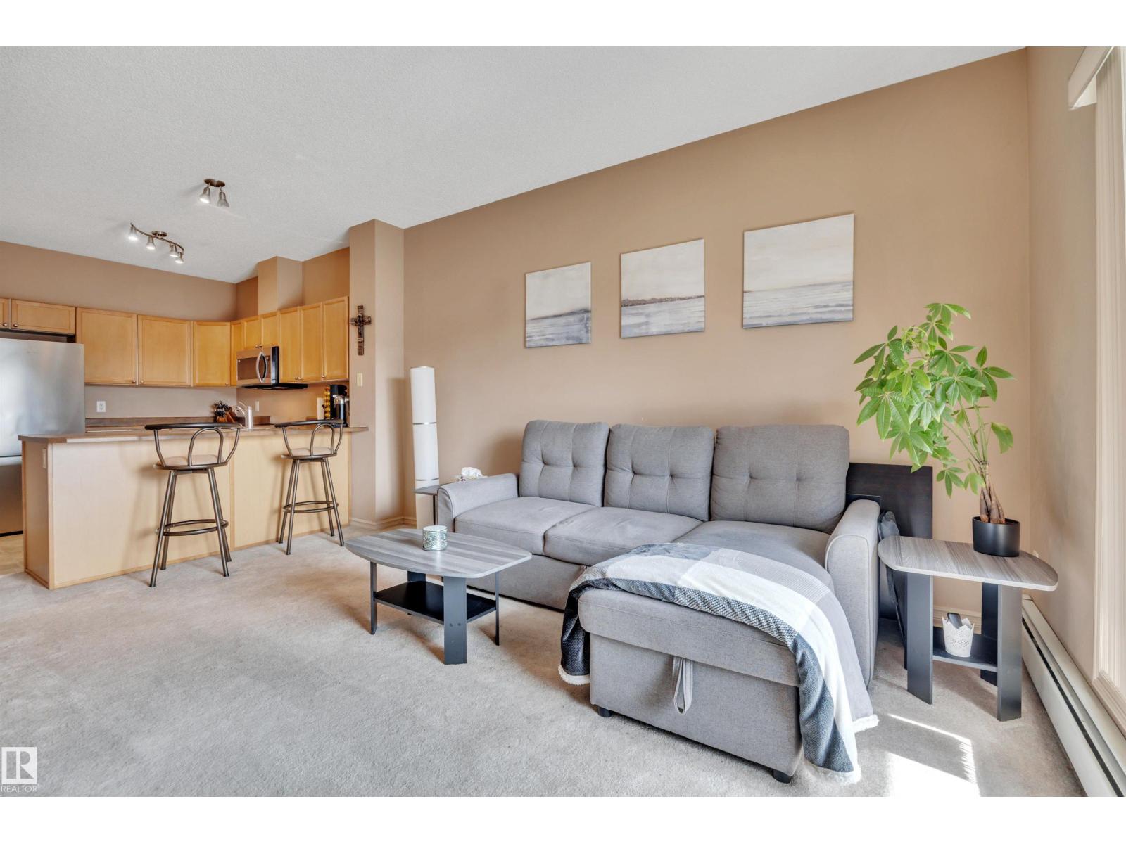 Welcome to this bright and beautifully cared-for south-facing one-bedroom condo! The open-concept layout creates a spacious, airy feel, while large windows fill the home with natural light. Step out onto your sunny balcony and enjoy long summer evenings. The kitchen is designed for both function and style, featuring newer appliances, maple cabinetry, and a handy breakfast bar—perfect for hosting friends. You'll love the convenience of in-suite laundry, heated underground parking, and extra storage. Located just a short walk from shops, trails, transit, and more—with ELECTRICITY included in the condo fees! Some furniture is also included! (id:63190)