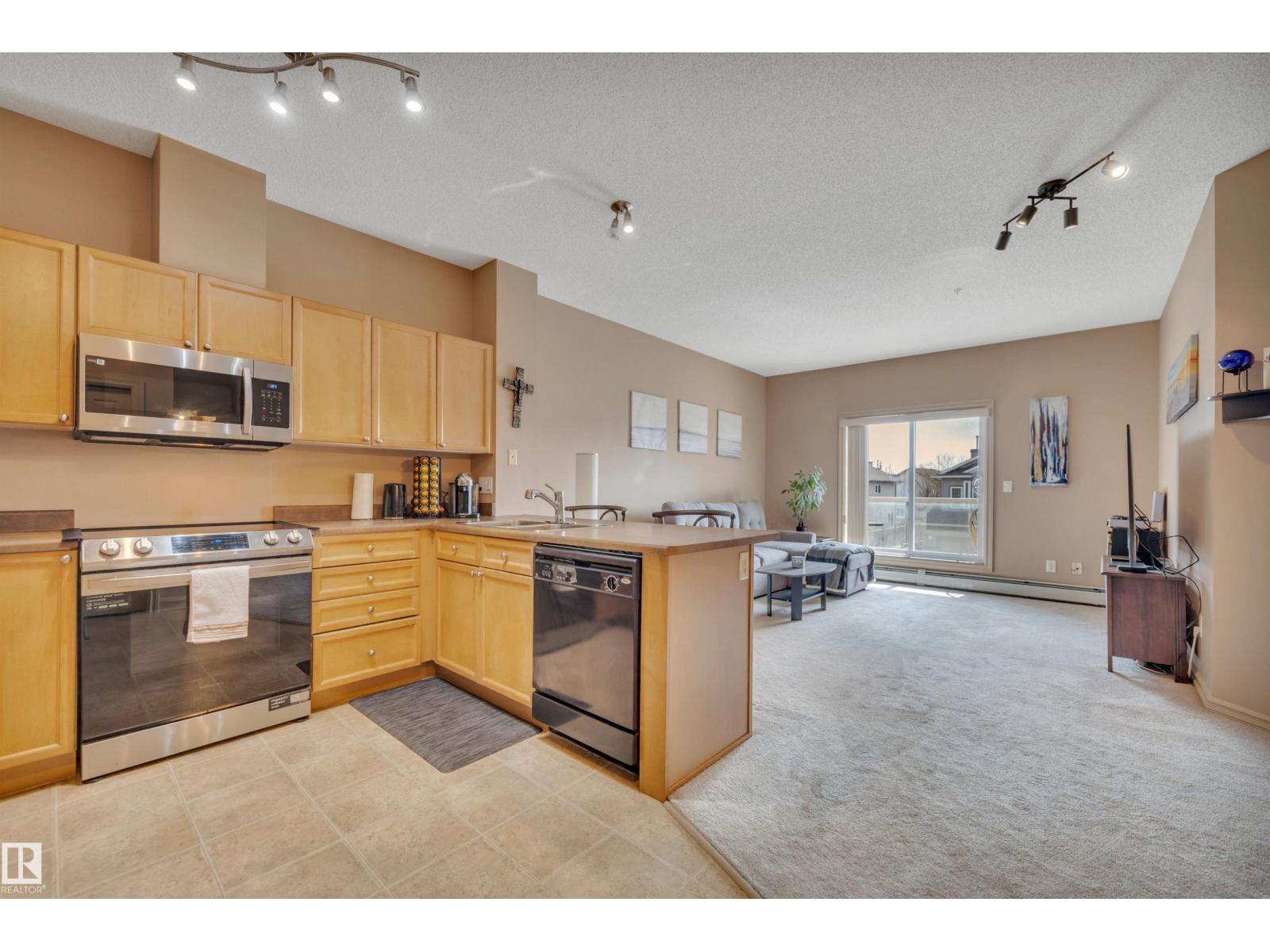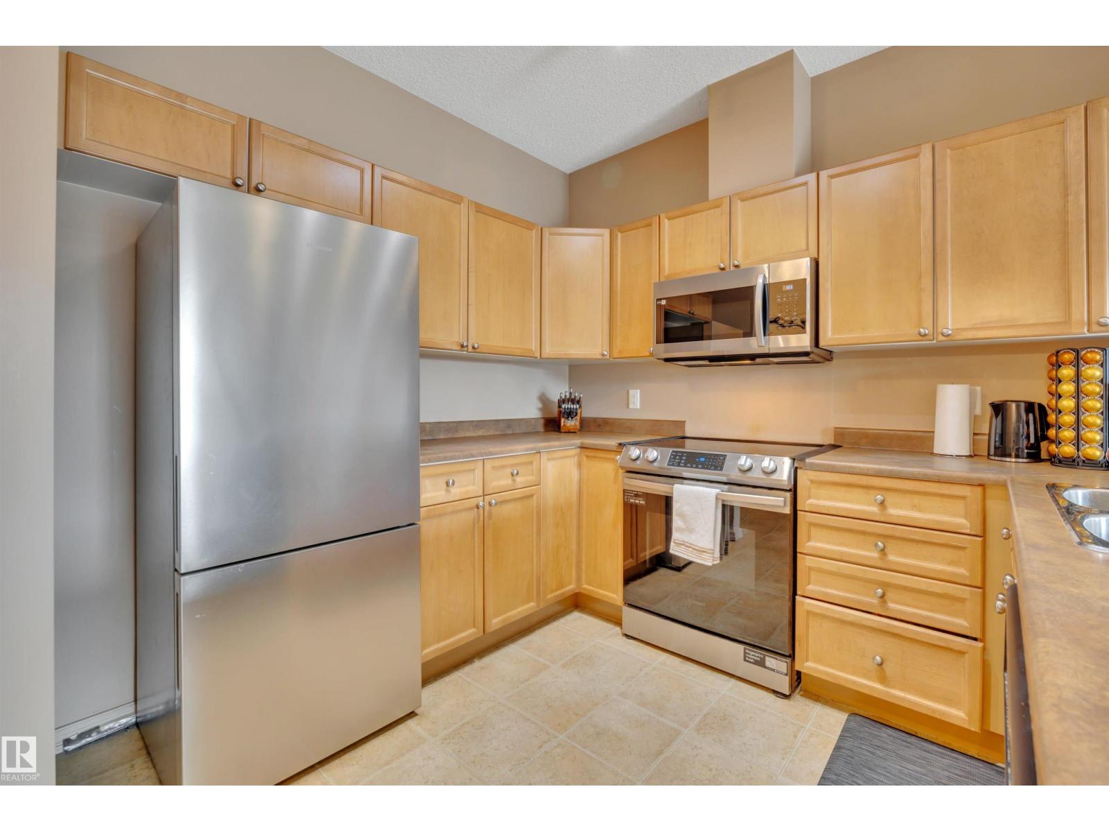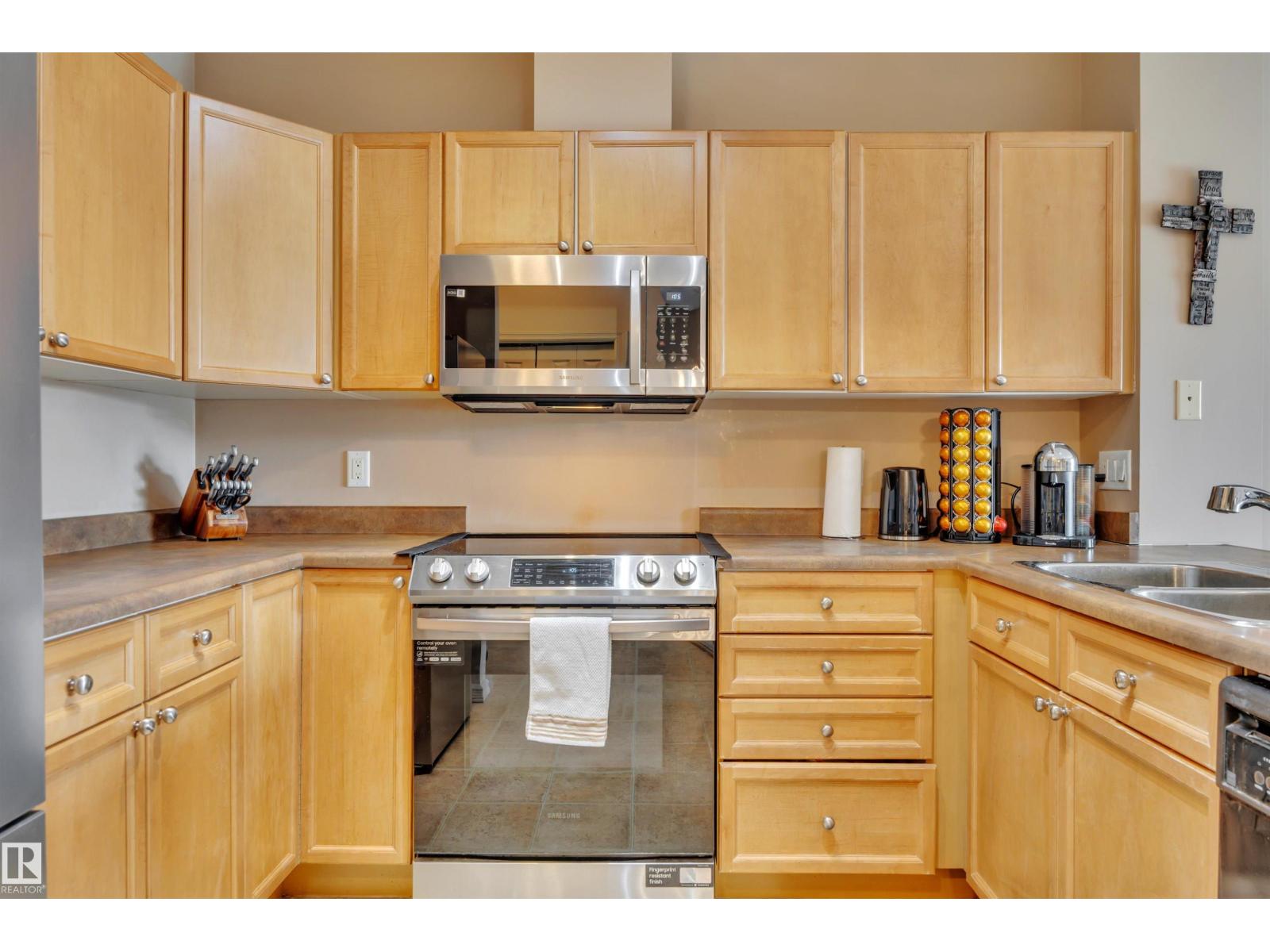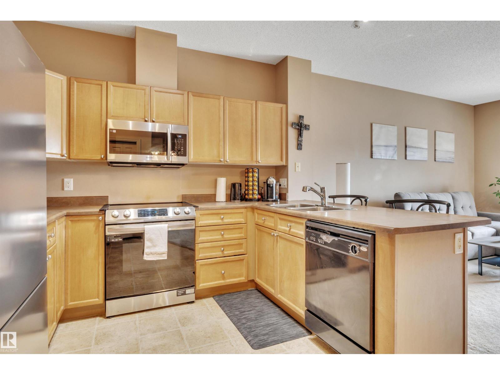 Welcome to this bright and beautifully cared-for south-facing one-bedroom condo! The open-concept layout creates a spacious, airy feel, while large windows fill the home with natural light. Step out onto your sunny balcony and enjoy long summer evenings. The kitchen is designed for both function and style, featuring newer appliances, maple cabinetry, and a handy breakfast bar—perfect for hosting friends. You'll love the convenience of in-suite laundry, heated underground parking, and extra storage. Located just a short walk from shops, trails, transit, and more—with ELECTRICITY included in the condo fees! Some furniture is also included! (id:63190)