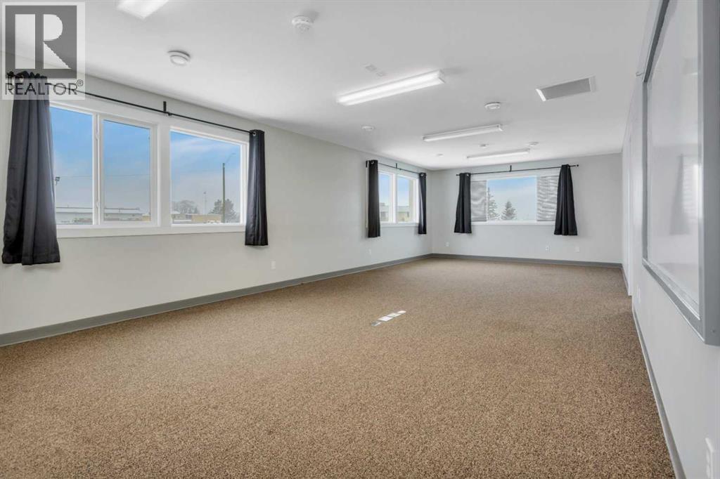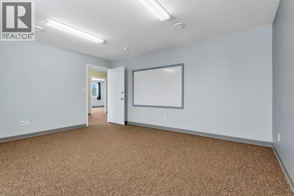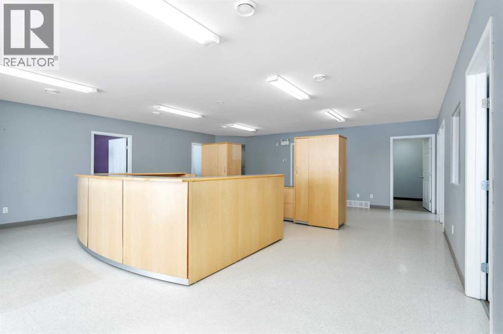 Located at 4807 43 Street in the industrial area of Rocky Mountain House, this 2005 8,000+ sq. ft. building on 1.28 acres presents an excellent opportunity for businesses looking to expand their operations.Designed with versatility in mind, the main floor includes a 4,000 sq. ft. shop featuring radiant heat, three overhead doors (10x10 x2 and 16x20), two offices, and a mezzanine for additional storage. The front portion of the building is thoughtfully laid out for administrative use, offering six private offices, a spacious reception area, a bathroom, and a kitchenette.The upper level is well-suited for meetings and training, with three large conference rooms, two bathrooms with showers, and a full kitchen complete with a washer and dryer.The rear yard is fully fenced with chain link, providing secure and ample space for equipment, vehicles, or additional storage. (id:63190)