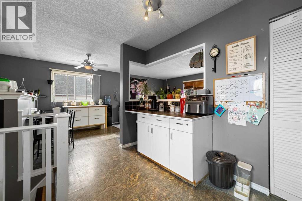 Take a look at this affordable bungalow ideally located near downtown and the school. The main floor features three bedrooms and one bathroom, along with an additional bedroom and bathroom downstairs. The open concept layout seamlessly connects the kitchen, dining, and living areas. The kitchen offers ample cabinetry, generous counter space, and a convenient pantry. Downstairs, you’ll find a spacious family room complete with a cozy wood burning stove. A large mudroom is situated at the back entrance for added functionality. Outside, the yard is private and fully fenced. There’s also an older detached garage at the rear that will require some repairs. (id:63190)