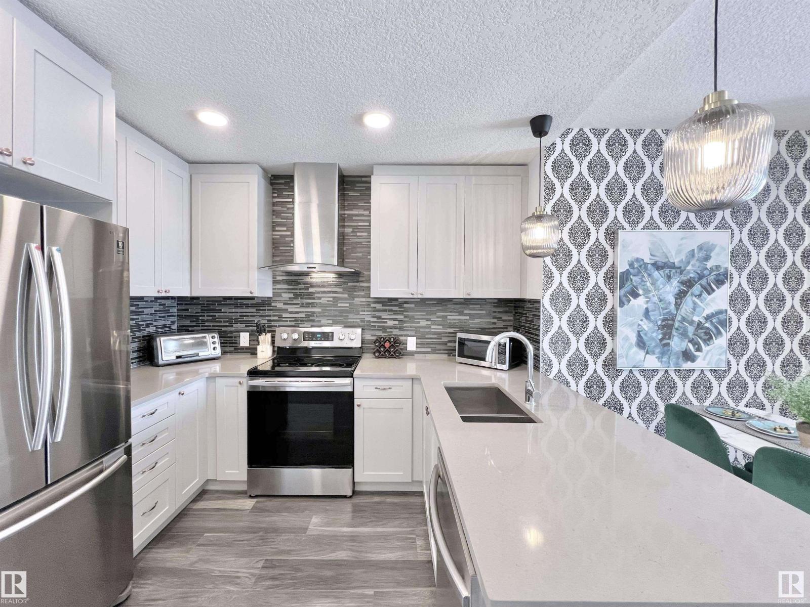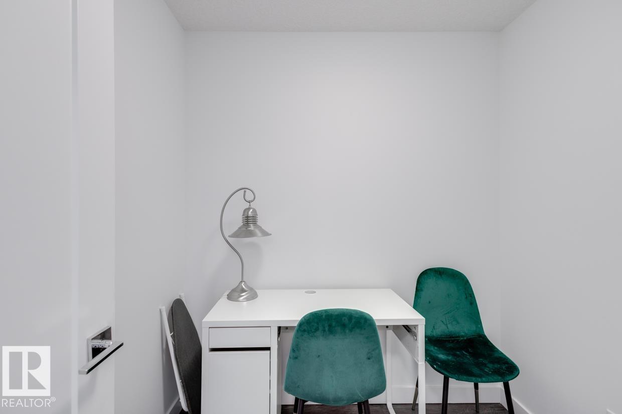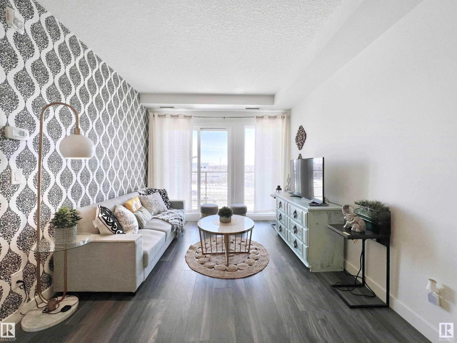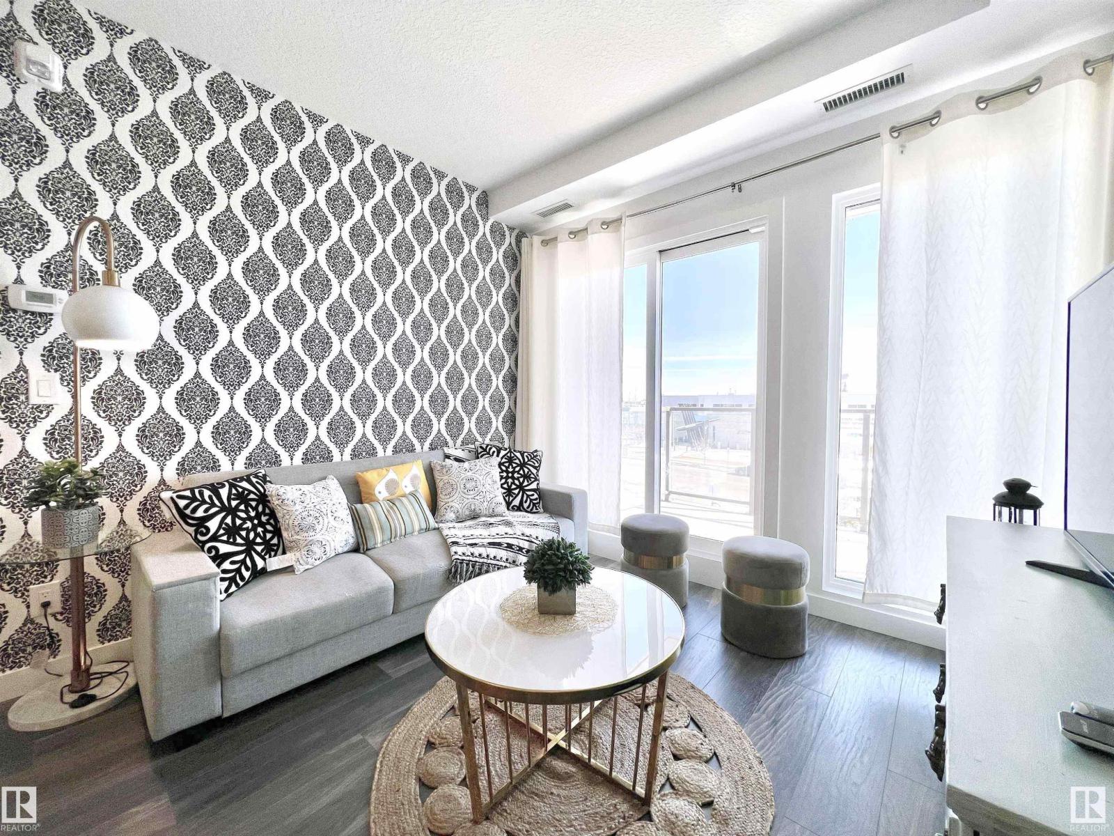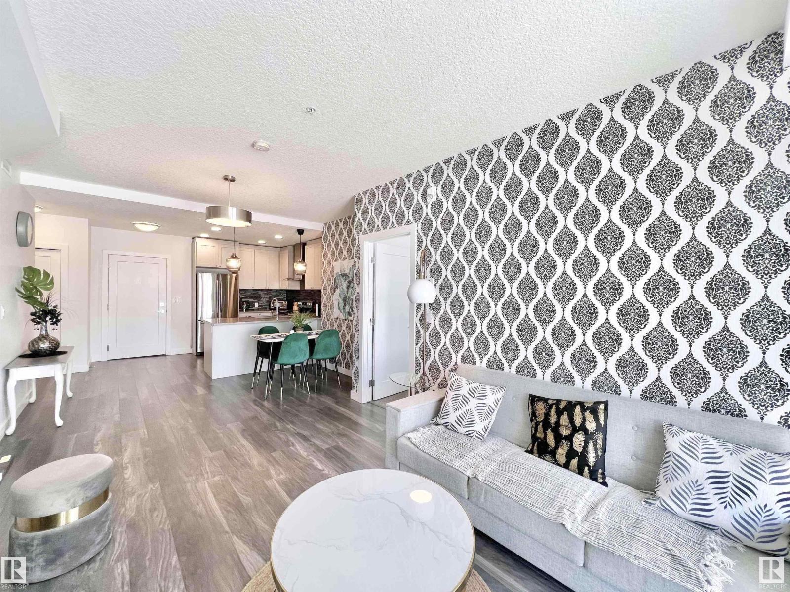 Experience luxury living in this sun-drenched, high-end condo in Southwest Edmonton. Boasting over 900sqft of elegant living space, this home impresses with soaring 9’ ceilings and a modern open-concept layout. The gourmet kitchen is a chef’s dream, featuring premium stainless steel appliances and designer finishes. Both spacious bedrooms and the private balcony enjoy a desirable Southeast exposure, flooding the interior with vibrant natural light all day long. The primary suite offers sophisticated tray-ceiling details, a generous walk-in closet, and a spa-like ensuite. This residence also includes a functional work-from-home nook and stylish flooring throughout. Located in a secure building with a grand, sophisticated lobby, you are just steps away from premium shopping, dining, and transit. This move-in-ready gem is the perfect blend of comfort, style, and location. Truly a rare find for those seeking a bright and airy sanctuary! (id:63190)