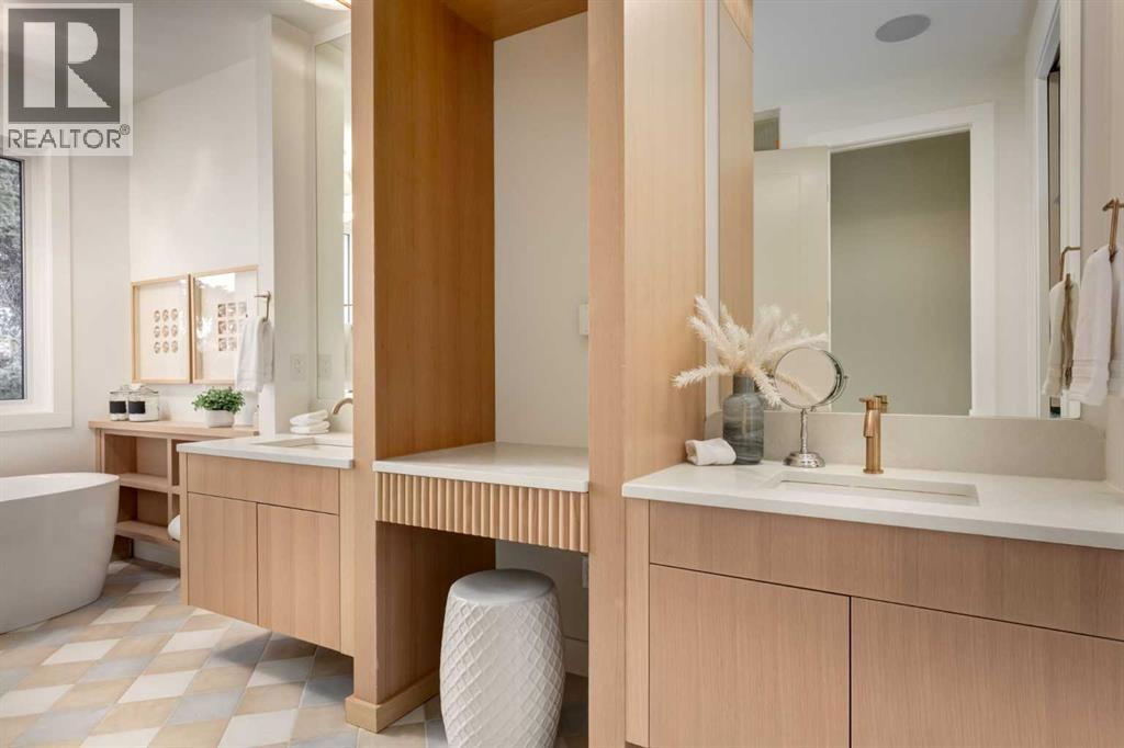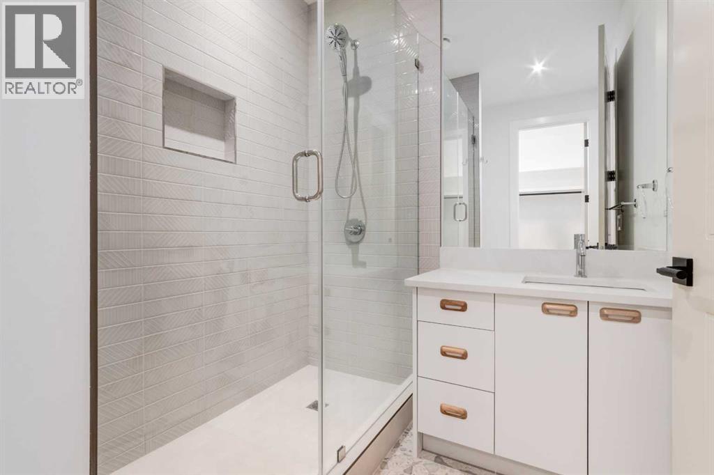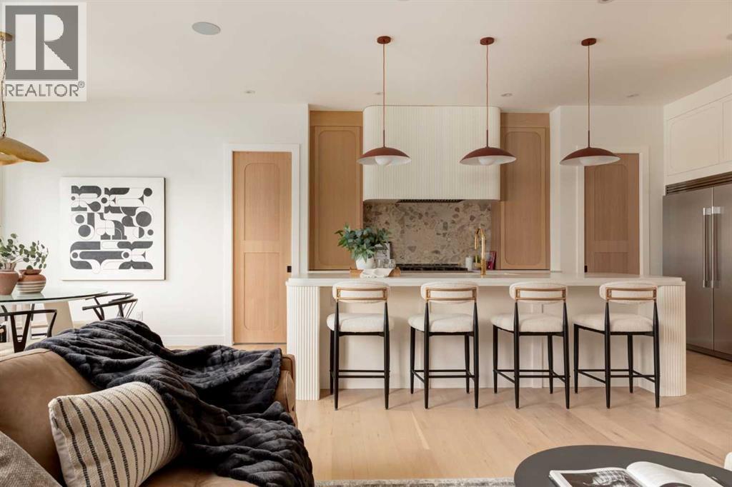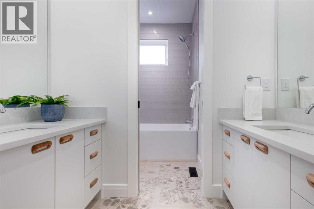 Welcome to 8812 33 Avenue NW, a brand-new luxury home by Platinum Build Homes, designed by Maxime Chin Designs, located on a wide lot in the sought-after community of Bowness. Offering nearly 3,800 sq ft of developed living space, this thoughtfully designed residence combines modern elegance with functional family living. The main floor features 10 ft ceilings and a bright, open-concept layout. A front office with custom built-ins sits behind French doors, while a stylish powder room adds a designer touch. The living room is anchored by a feature fireplace and large windows overlooking the private backyard and deck. The chef-inspired kitchen showcases white oak cabinetry, a quartz island, premium appliances, and a butler’s pantry, seamlessly connecting to a mudroom with additional built-ins. Upstairs, the primary suite offers a vaulted ceiling, a walk-in closet, and a spa-like 6-piece ensuite complete with a soaker tub and steam shower. Two additional bedrooms share a 5-piece bathroom, and a bonus room and upper-level laundry provide added convenience. The fully finished basement is ideal for entertaining and everyday living, featuring a spacious recreation room with a wet bar, a home gym, two additional bedrooms, a 4-piece bathroom, and an extra powder room. Additional highlights include dual furnaces, ceiling speakers, and a built-in security system. Enjoy a prime location just minutes from the Bow River pathways, Bowness Park, schools, and downtown Calgary. Backed by Alberta New Home Warranty, this move-in-ready home offers an exceptional opportunity to own a high-quality new build in a vibrant inner-city community. (id:63190)