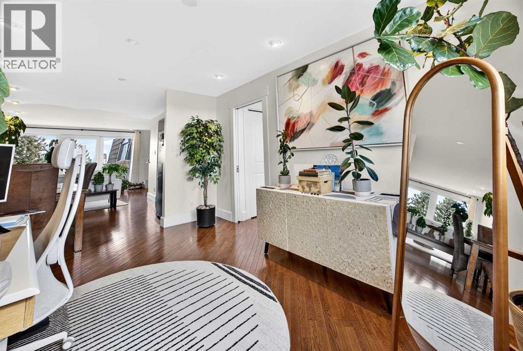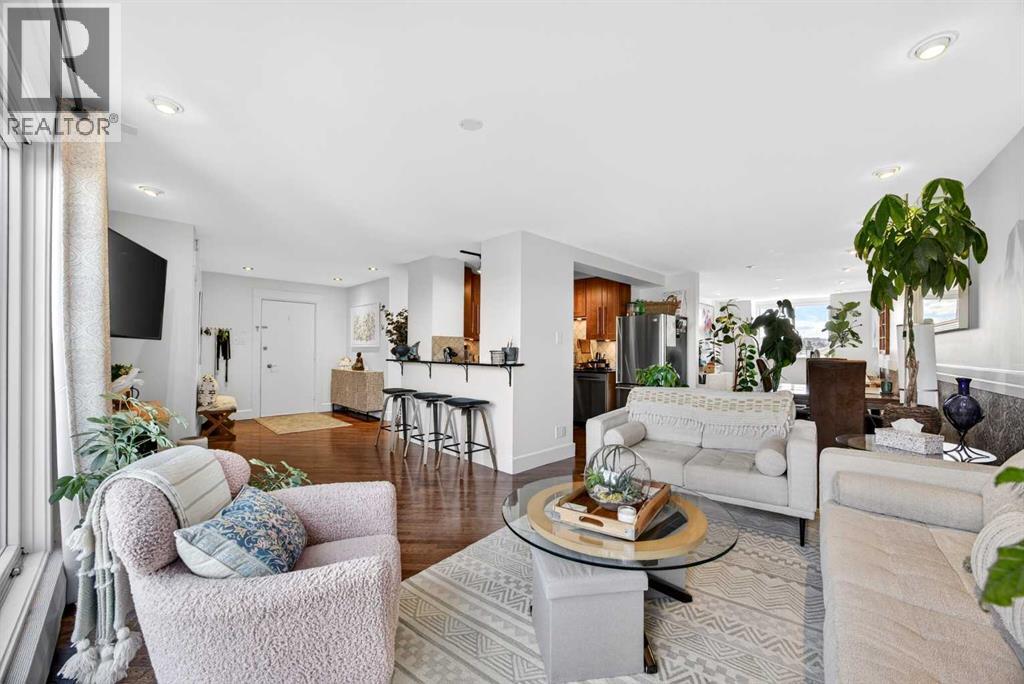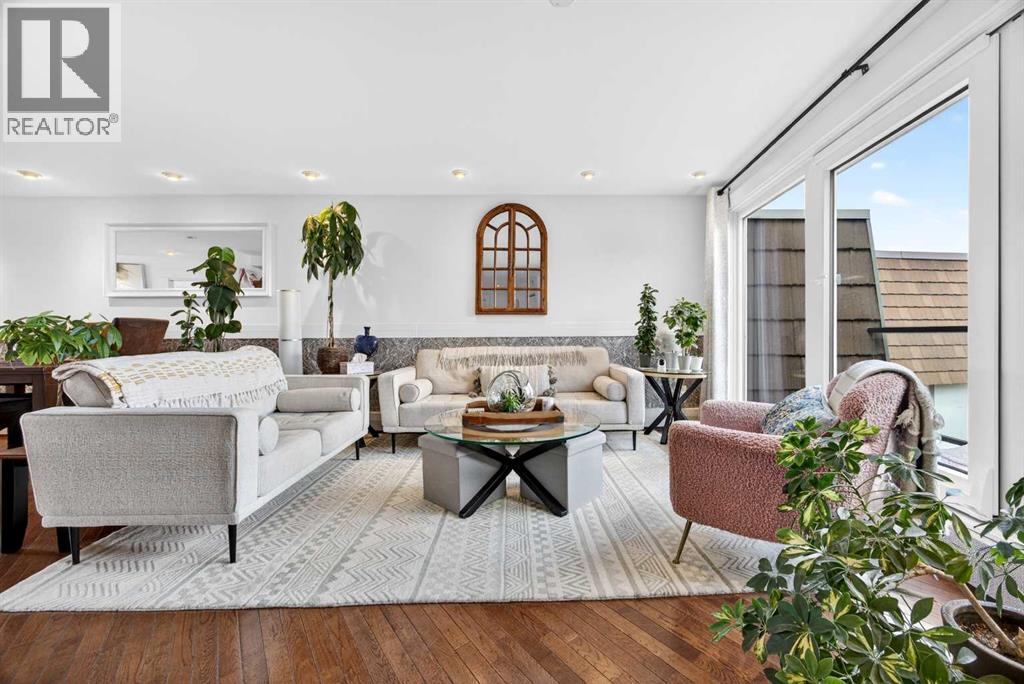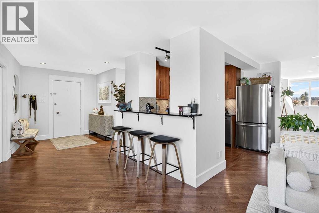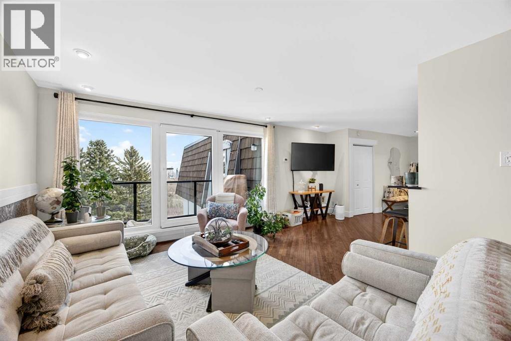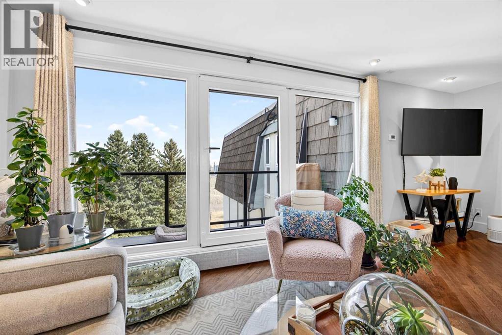 The PENTHOUSE @ RIVERVIEW l OVER 1030 SQ FT l 2 BEDROOM + FLEX + 2 FULL BATHROOMS l BALCONY w DOWNTOWN VIEW l CONCRETE BUILDING l 1 PARKING STALL + 1 RENTED STALL l ENSUITE LAUNDRY ***ATTENTION: PROFESSIONALS l FIRST-TIME BUYERS l INVESTORS l DOWNSIZERS l DISCERNING BUYERS*** A rare opportunity to own the top-floor penthouse unit in this well-maintained inner-city building — one of the largest and most impressive suites in the complex, offering over 1,030 sq ft of refined, light-filled living space. Every room benefits from generous windows, hardwood floors, flat ceilings with dimmable pot lights, and a seamless open-concept layout that feels both elegant and effortlessly livable. The kitchen shines with quartz countertops & SS appliances flowing naturally into the living and dining areas — where breathtaking downtown Calgary views take centre stage. Step onto your private balcony and let the skyline speak for itself. The spacious primary bedroom features its own ensuite, while a second bedroom and flex room offer versatility for any lifestyle. A brand new washer and dryer complete this truly move-in-ready home. The building is equally impressive — a solid, well-maintained concrete structure managed by an exceptionally proactive condo board. Recent capital upgrades include new balconies, patio windows & doors, exterior walls, and a new boiler, with no major projects anticipated ahead. The reserve fund is on track to be fully funded within a couple of years, with condo fee reductions planned to follow. Backing onto Edworthy Park & Douglas Fir Trail systems, Direct Bike Path to downtown YYC, Walking Distance from Train Station, Steps from the Elbow River pathways, 17th Avenue, and the best of inner-city Calgary living. Penthouse views - Turnkey condition. & a building you can trust. (id:63190)
