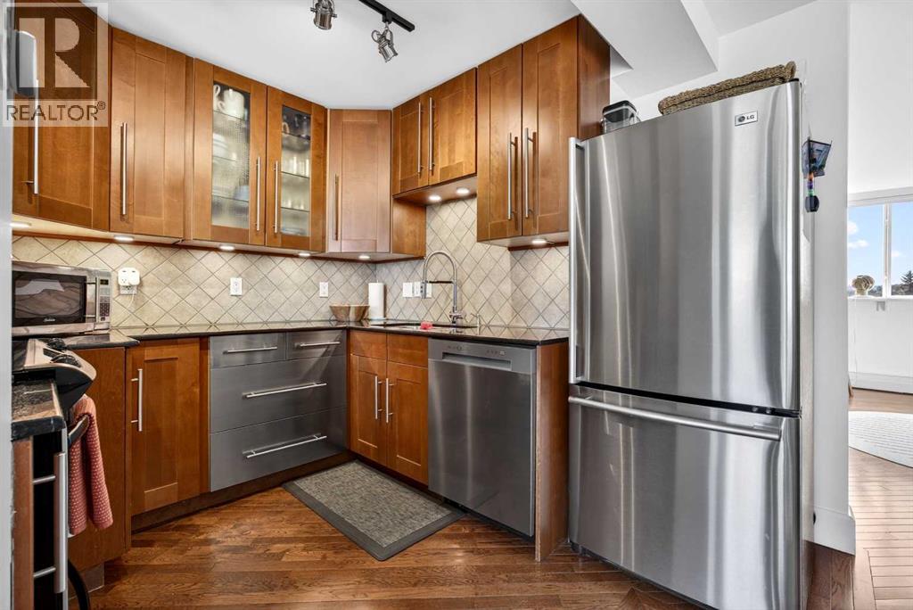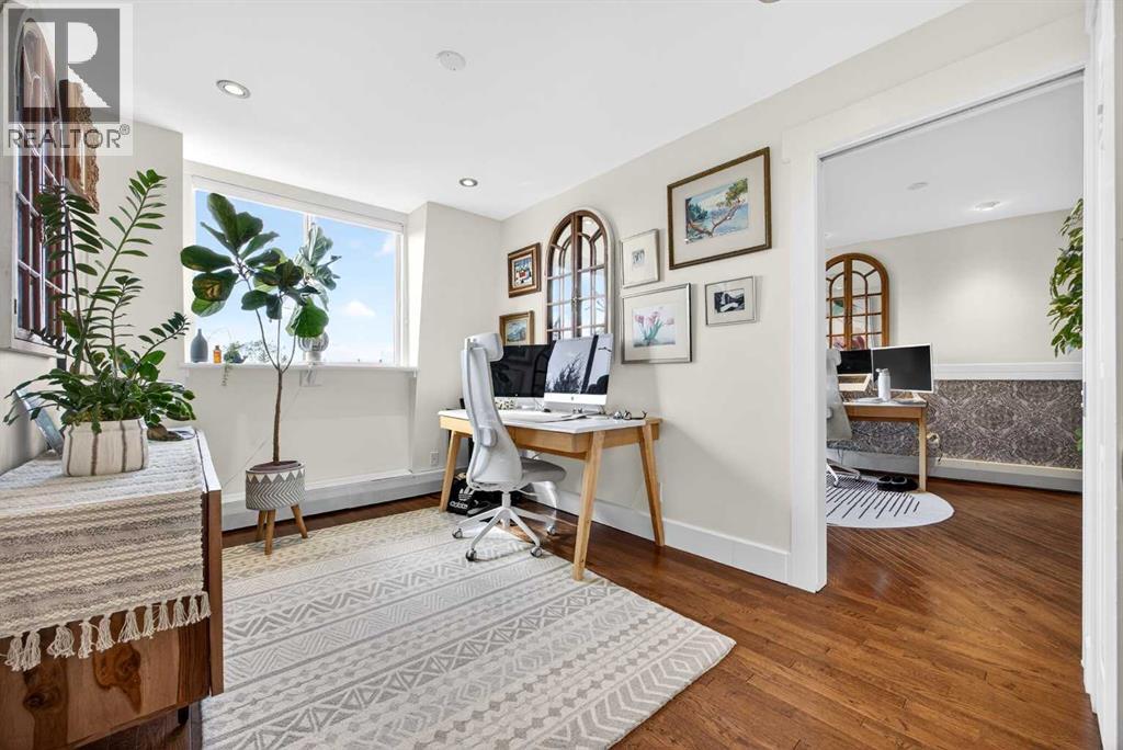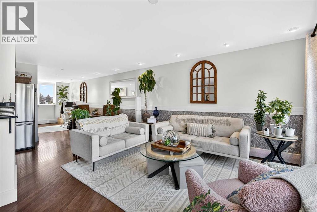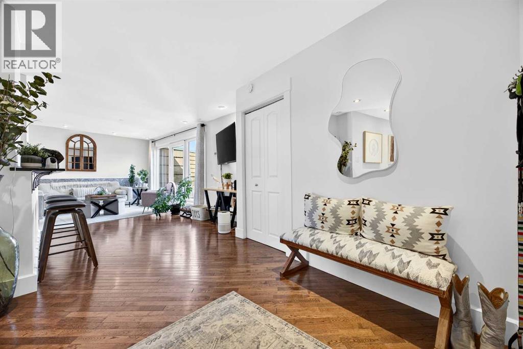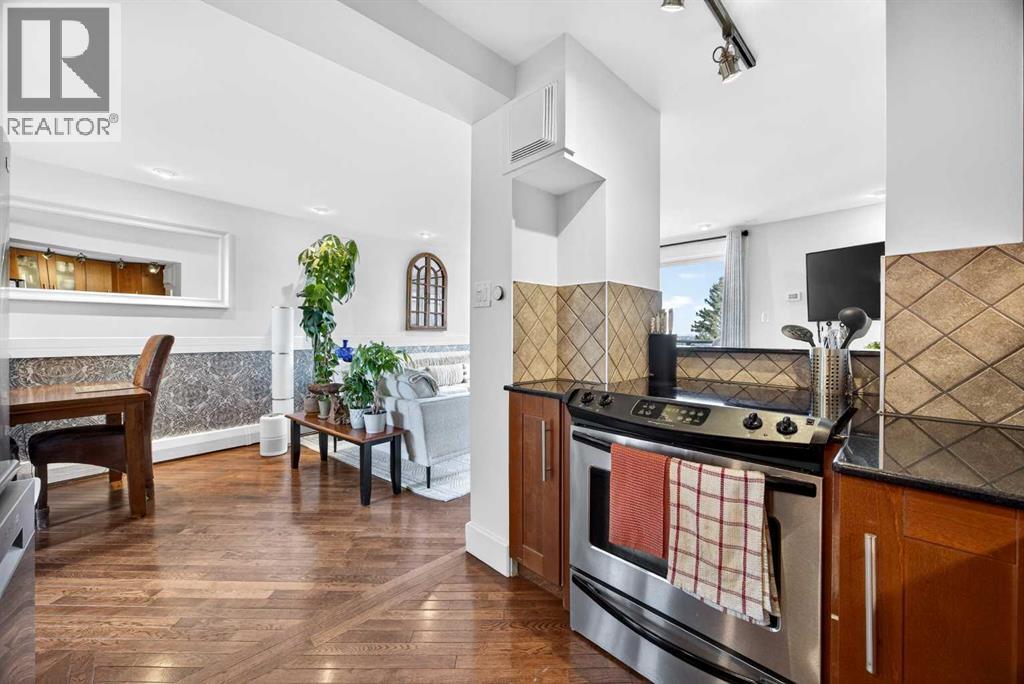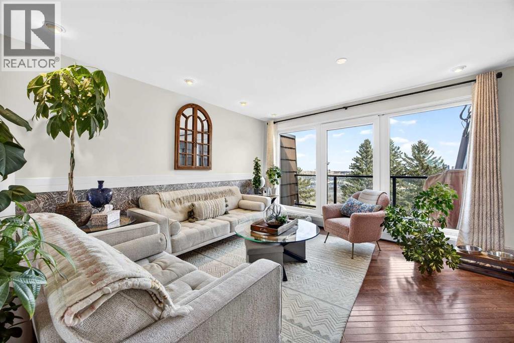 The PENTHOUSE @ RIVERVIEW l OVER 1030 SQ FT l 2 BEDROOM + FLEX + 2 FULL BATHROOMS l BALCONY w DOWNTOWN VIEW l CONCRETE BUILDING l 1 PARKING STALL + 1 RENTED STALL l ENSUITE LAUNDRY ***ATTENTION: PROFESSIONALS l FIRST-TIME BUYERS l INVESTORS l DOWNSIZERS l DISCERNING BUYERS*** A rare opportunity to own the top-floor penthouse unit in this well-maintained inner-city building — one of the largest and most impressive suites in the complex, offering over 1,030 sq ft of refined, light-filled living space. Every room benefits from generous windows, hardwood floors, flat ceilings with dimmable pot lights, and a seamless open-concept layout that feels both elegant and effortlessly livable. The kitchen shines with quartz countertops & SS appliances flowing naturally into the living and dining areas — where breathtaking downtown Calgary views take centre stage. Step onto your private balcony and let the skyline speak for itself. The spacious primary bedroom features its own ensuite, while a second bedroom and flex room offer versatility for any lifestyle. A brand new washer and dryer complete this truly move-in-ready home. The building is equally impressive — a solid, well-maintained concrete structure managed by an exceptionally proactive condo board. Recent capital upgrades include new balconies, patio windows & doors, exterior walls, and a new boiler, with no major projects anticipated ahead. The reserve fund is on track to be fully funded within a couple of years, with condo fee reductions planned to follow. Backing onto Edworthy Park & Douglas Fir Trail systems, Direct Bike Path to downtown YYC, Walking Distance from Train Station, Steps from the Elbow River pathways, 17th Avenue, and the best of inner-city Calgary living. Penthouse views - Turnkey condition. & a building you can trust. (id:63190)