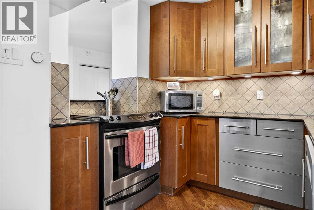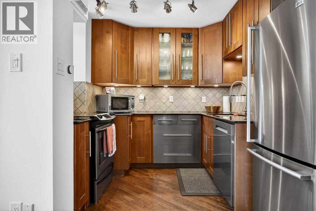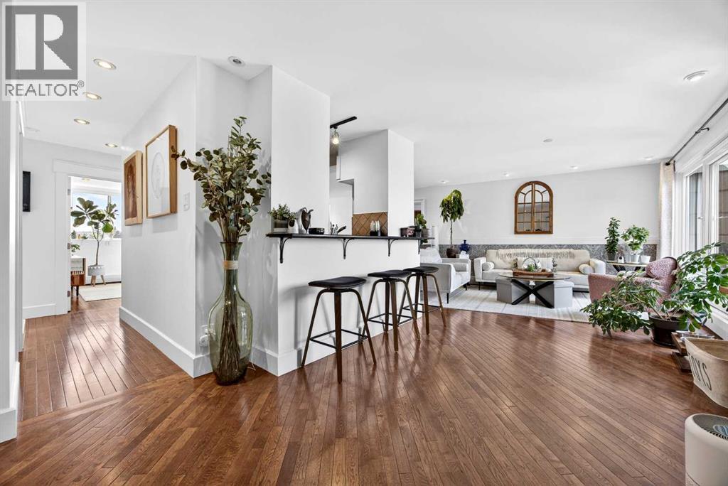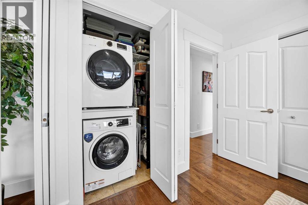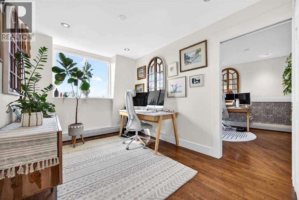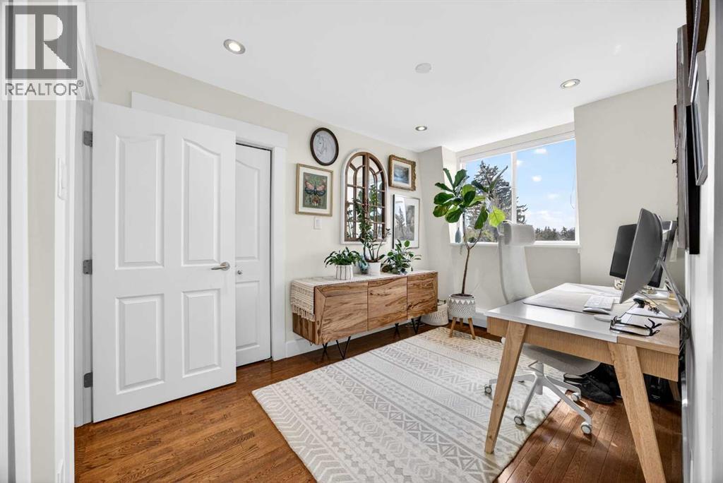 The PENTHOUSE @ RIVERVIEW l OVER 1030 SQ FT l 2 BEDROOM + FLEX + 2 FULL BATHROOMS l BALCONY w DOWNTOWN VIEW l CONCRETE BUILDING l 1 PARKING STALL + 1 RENTED STALL l ENSUITE LAUNDRY ***ATTENTION: PROFESSIONALS l FIRST-TIME BUYERS l INVESTORS l DOWNSIZERS l DISCERNING BUYERS*** A rare opportunity to own the top-floor penthouse unit in this well-maintained inner-city building — one of the largest and most impressive suites in the complex, offering over 1,030 sq ft of refined, light-filled living space. Every room benefits from generous windows, hardwood floors, flat ceilings with dimmable pot lights, and a seamless open-concept layout that feels both elegant and effortlessly livable. The kitchen shines with quartz countertops & SS appliances flowing naturally into the living and dining areas — where breathtaking downtown Calgary views take centre stage. Step onto your private balcony and let the skyline speak for itself. The spacious primary bedroom features its own ensuite, while a second bedroom and flex room offer versatility for any lifestyle. A brand new washer and dryer complete this truly move-in-ready home. The building is equally impressive — a solid, well-maintained concrete structure managed by an exceptionally proactive condo board. Recent capital upgrades include new balconies, patio windows & doors, exterior walls, and a new boiler, with no major projects anticipated ahead. The reserve fund is on track to be fully funded within a couple of years, with condo fee reductions planned to follow. Backing onto Edworthy Park & Douglas Fir Trail systems, Direct Bike Path to downtown YYC, Walking Distance from Train Station, Steps from the Elbow River pathways, 17th Avenue, and the best of inner-city Calgary living. Penthouse views - Turnkey condition. & a building you can trust. (id:63190)
