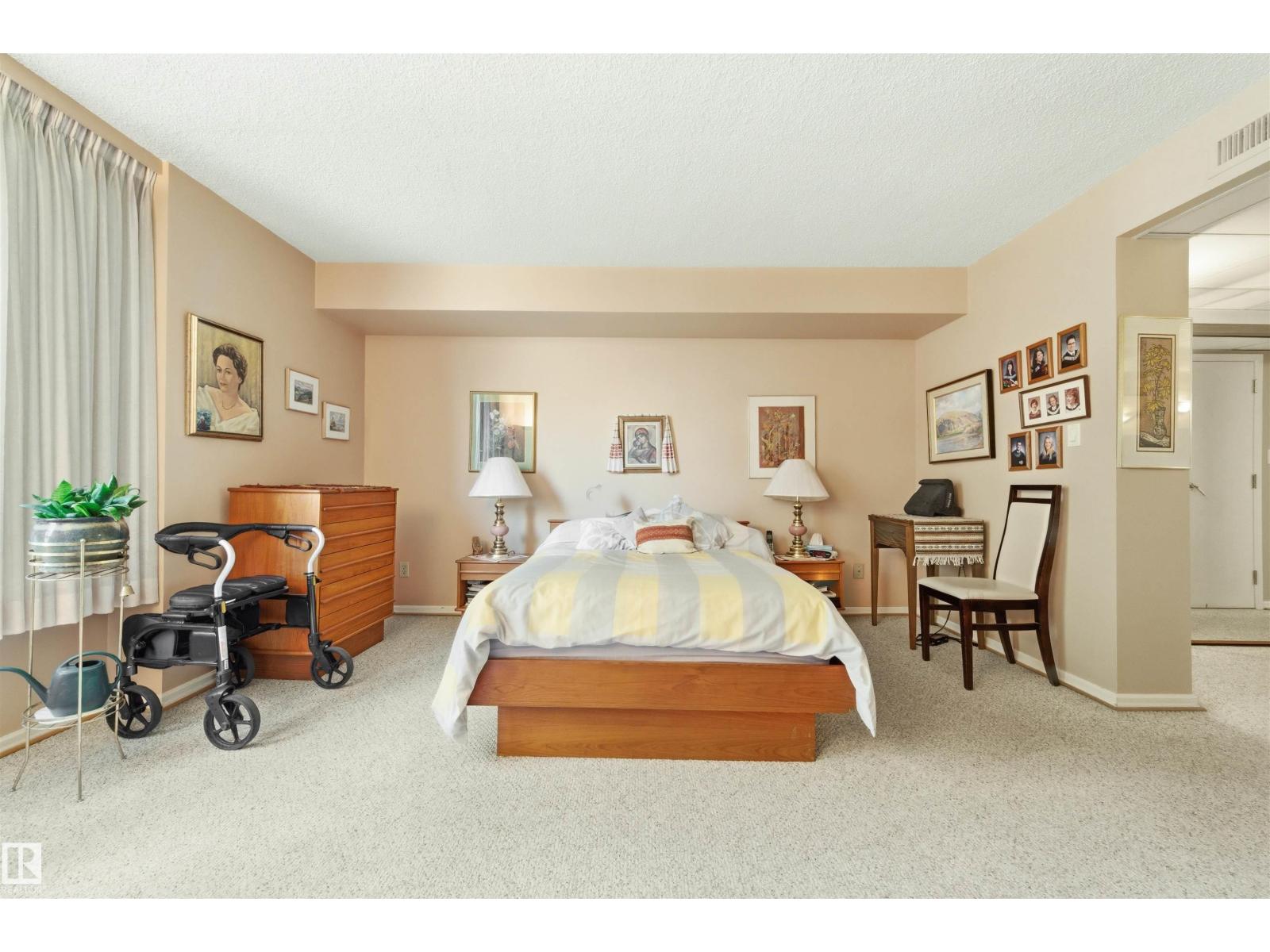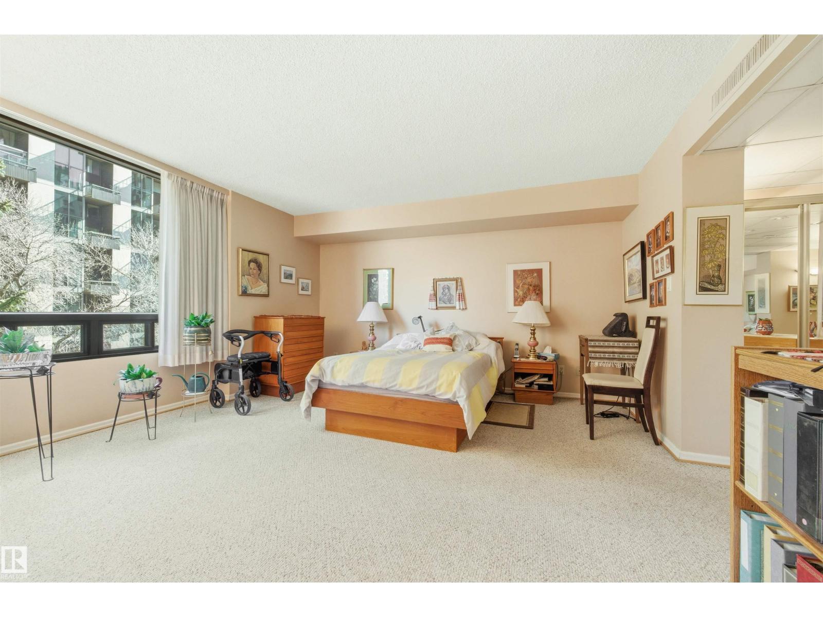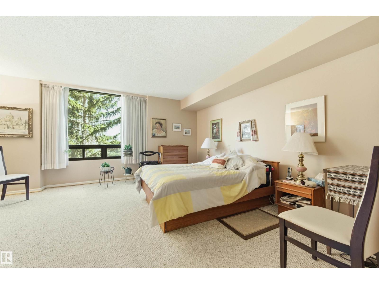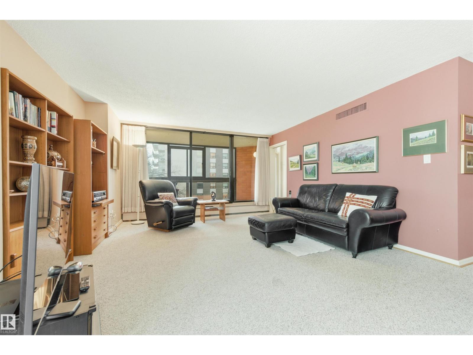 Style & elegance welcomes you to this lovely two bedroom,two bathroom condo with two parking stalls+1564sqft of living space.The living area is bright,spacious+features two sitting areas(one w/a sliding door to the enclosed balcony)+an adjoining dining room--perfect for entertaining.The kitchen offers ample cabinets,corian counters+a separate garden door to the gorgeous three season balcony.The large primary bedroom is a dream w/a 4pc ensuite,closet space+bulit-in vanity.Completing this unit is a second bedroom,a spacious front foyer,a 3pc bath(w/sauna),laundry/storage room+2 storage lockers in the underground parking.The suite has been immaculately maintained in its original move-in condition,+ is a blank canvas for someone looking to renovate+add their own personal touch.Nestled in a quiet,well maintained building w/only 3 units per floor.Steps to Jasper Ave,Victoria Promenade,the River Valley, shops,restaurants+transit.Urban living has never felt so FABULOUS—Your new condo awaits! (id:63190)