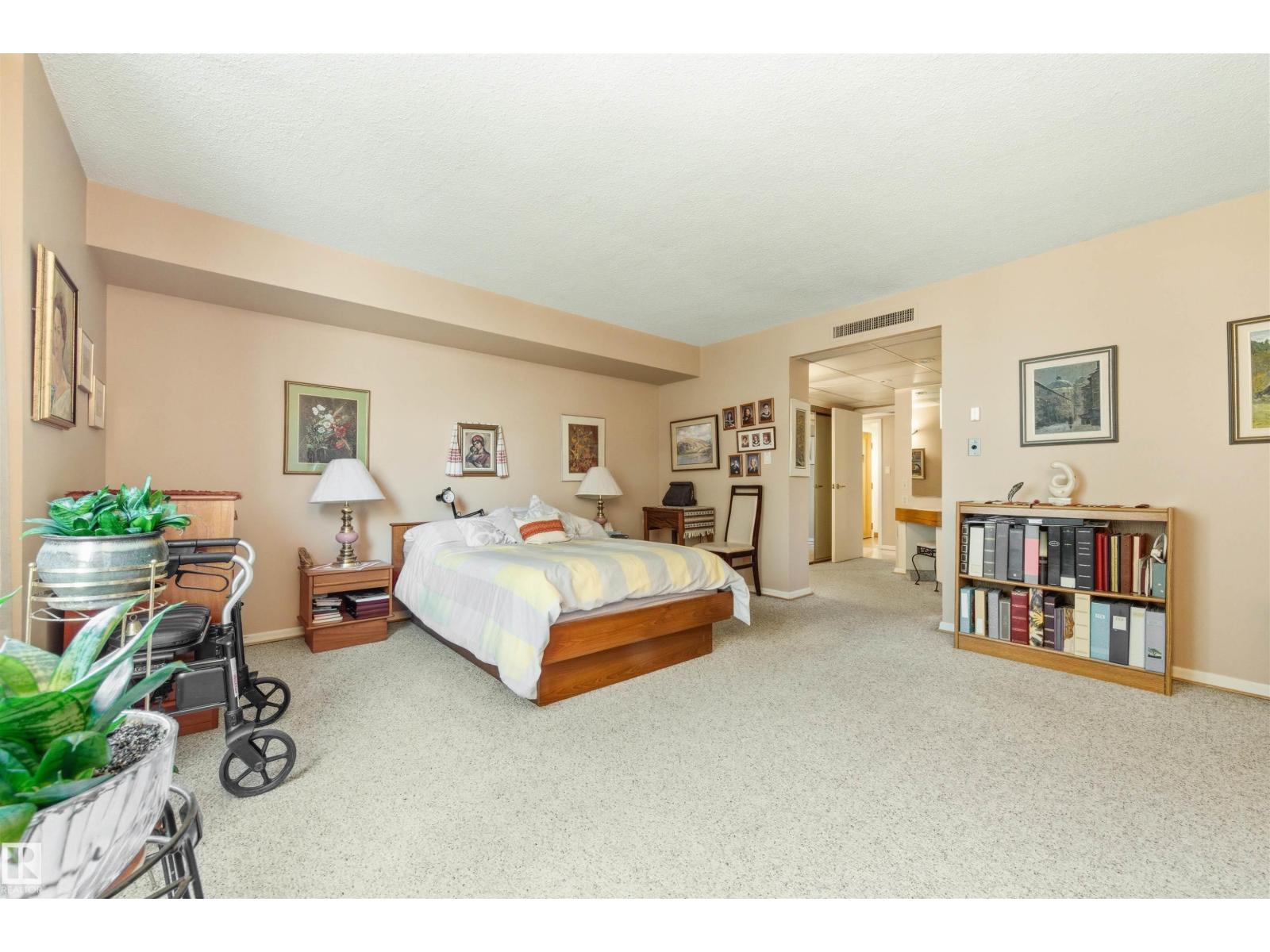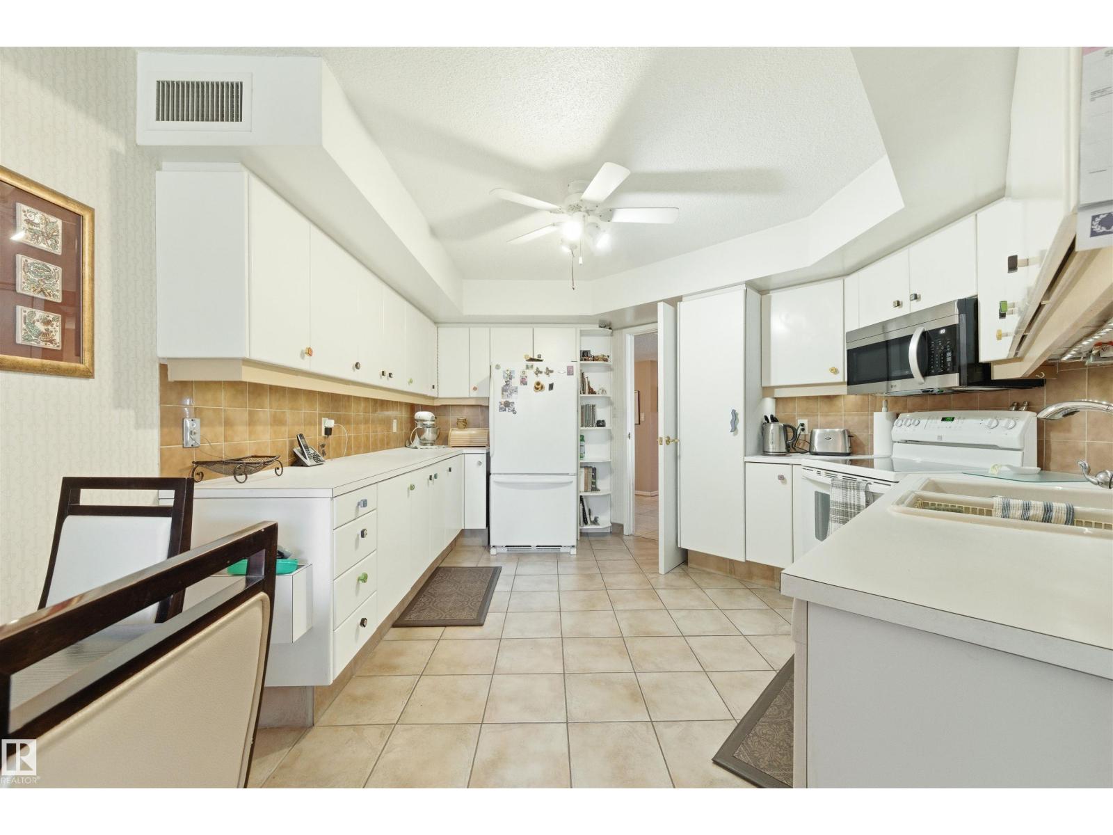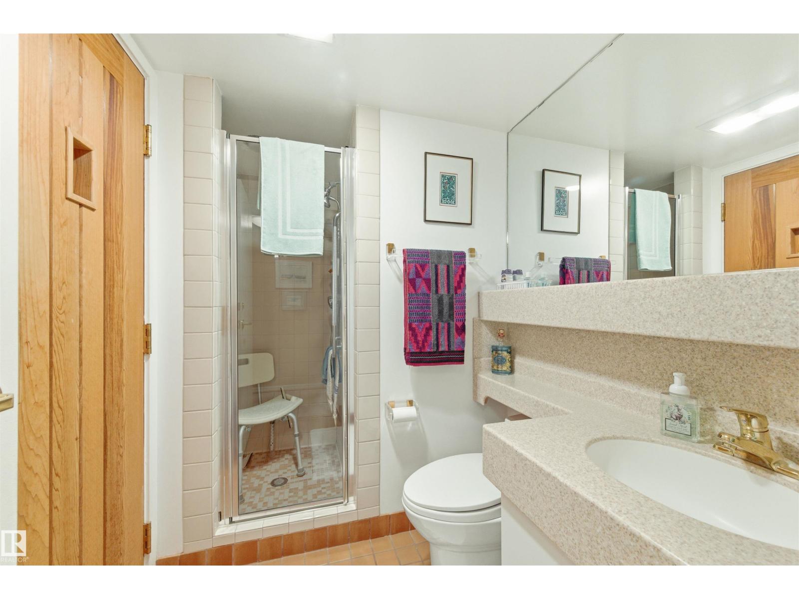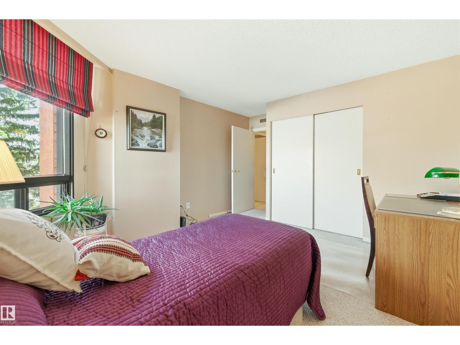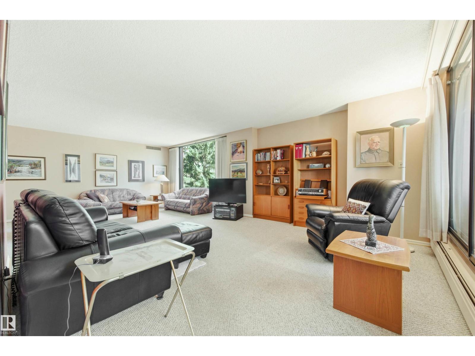 Style & elegance welcomes you to this lovely two bedroom,two bathroom condo with two parking stalls+1564sqft of living space.The living area is bright,spacious+features two sitting areas(one w/a sliding door to the enclosed balcony)+an adjoining dining room--perfect for entertaining.The kitchen offers ample cabinets,corian counters+a separate garden door to the gorgeous three season balcony.The large primary bedroom is a dream w/a 4pc ensuite,closet space+bulit-in vanity.Completing this unit is a second bedroom,a spacious front foyer,a 3pc bath(w/sauna),laundry/storage room+2 storage lockers in the underground parking.The suite has been immaculately maintained in its original move-in condition,+ is a blank canvas for someone looking to renovate+add their own personal touch.Nestled in a quiet,well maintained building w/only 3 units per floor.Steps to Jasper Ave,Victoria Promenade,the River Valley, shops,restaurants+transit.Urban living has never felt so FABULOUS—Your new condo awaits! (id:63190)