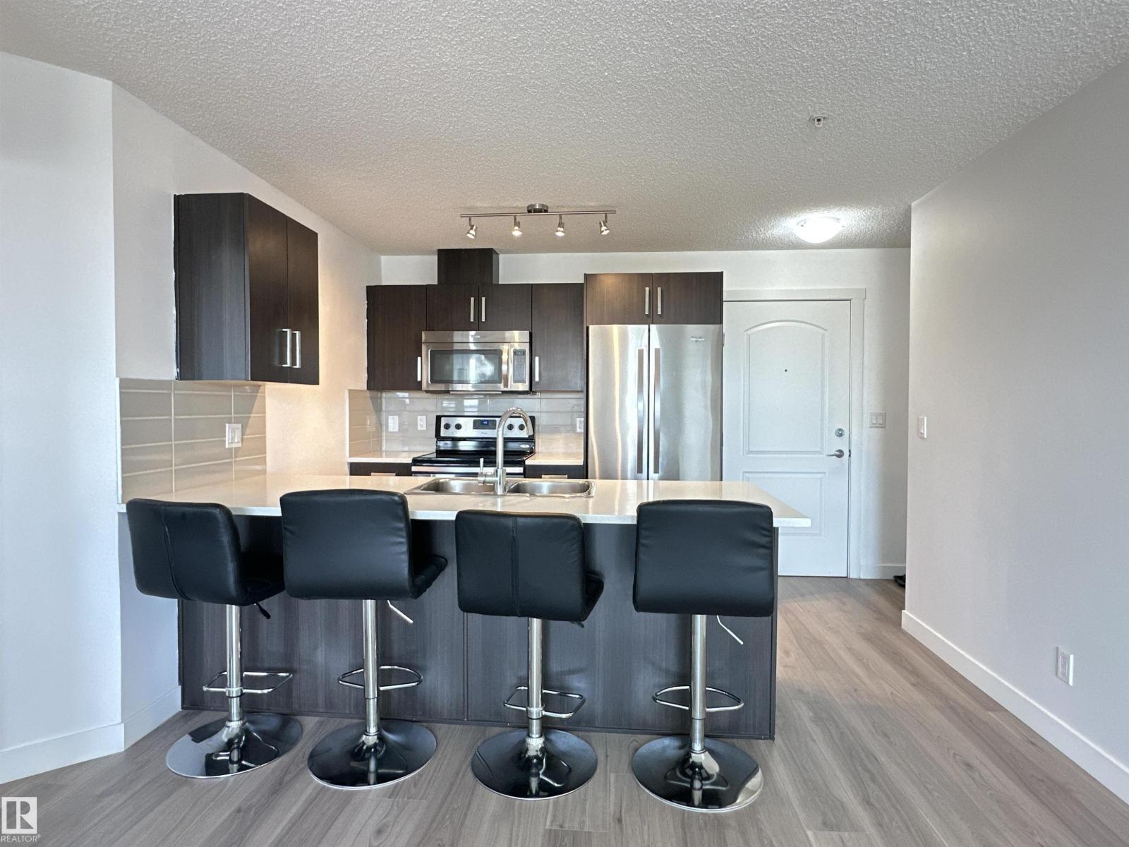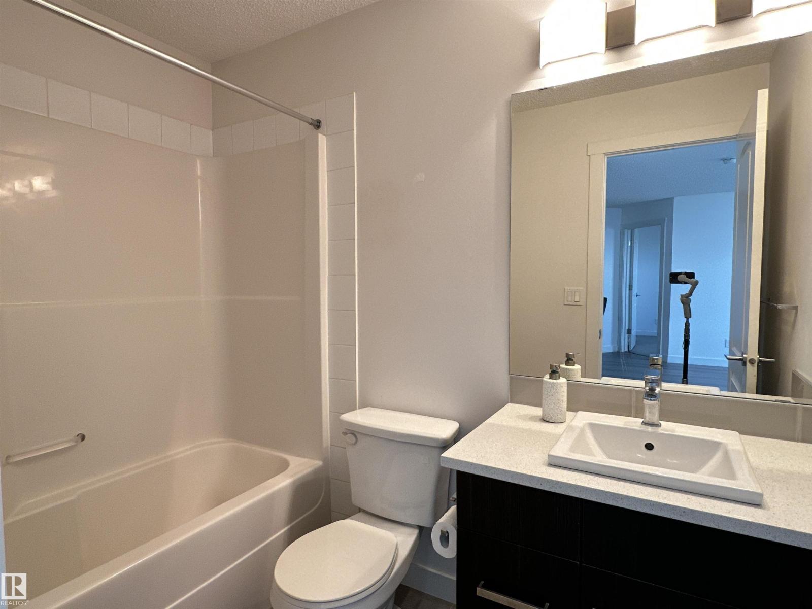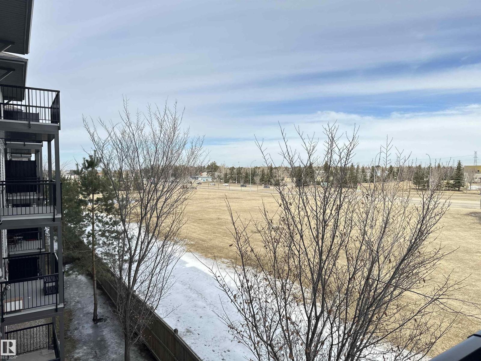 Welcome home to this bright & spacious 2 bed, 2 bath apartment in a highly coveted South Edmonton location. Well-designed unit, modern kitchen with SS appliances, quartz countertop & a generous bar seating. Open-concept living area is filled w/ natural light, direct access to your private covered balcony. The primary bedroom offers a peaceful retreat w/ a walk-through closet & a 4-pc ensuite. The second bedroom is positioned on the opposite side for maximum privacy, conveniently located next to 4-pc bath & in-suite laundry. A versatile den provides flexible space for a home office, guest room or additional living area. Enjoy the secured building access, elevator service, plus titled underground parking & a dedicated storage unit. Quick access to Highway 2, Anthony Henday Dr, 10 mins to South Common, 20 mins to YEG Airport & Premium Outlet. Steps to bus stops, Walmart, Sobeys, Real Canadian, restaurants, shopping, and all major amenities. Please note some pictures are virtually staged including fireplace. (id:63190)