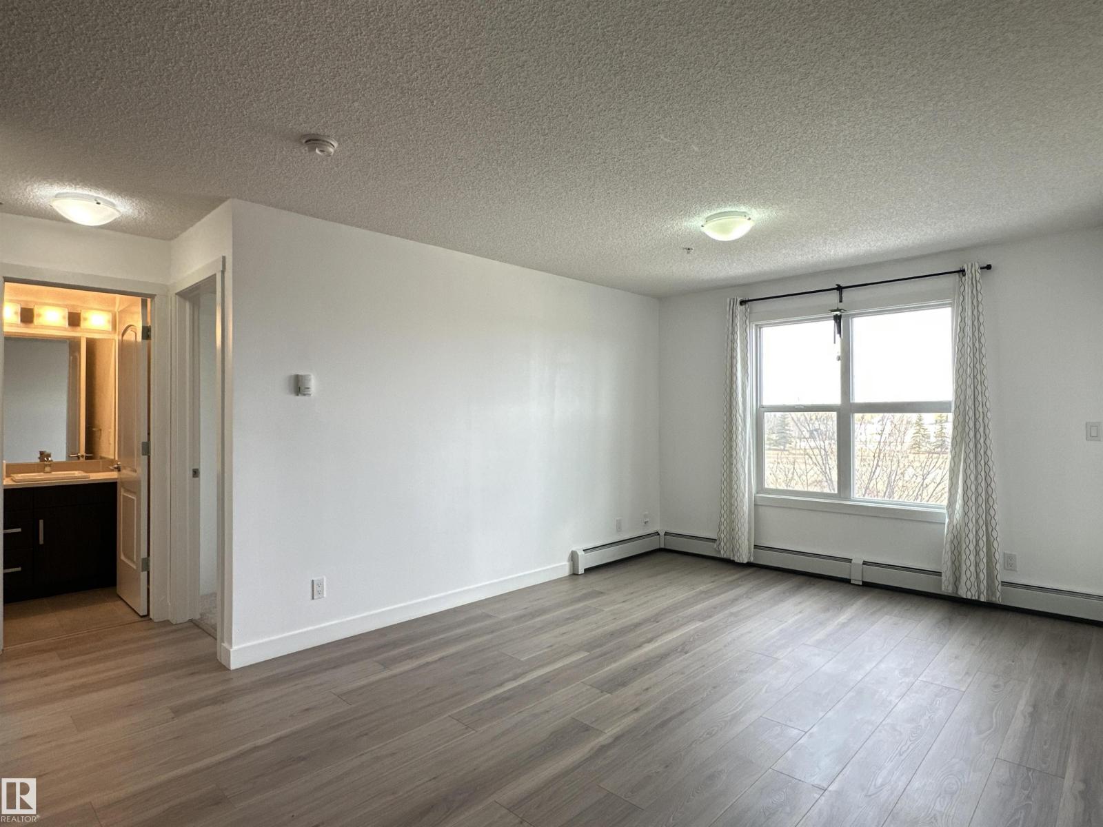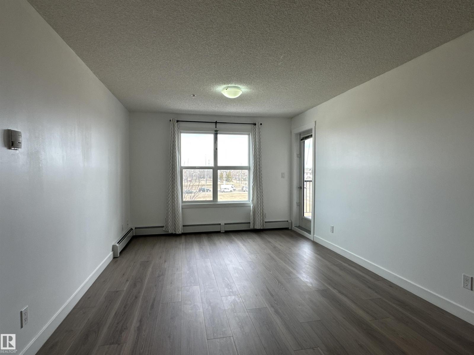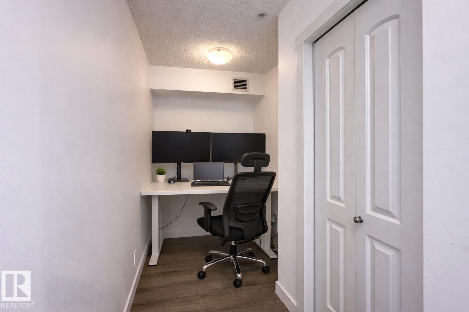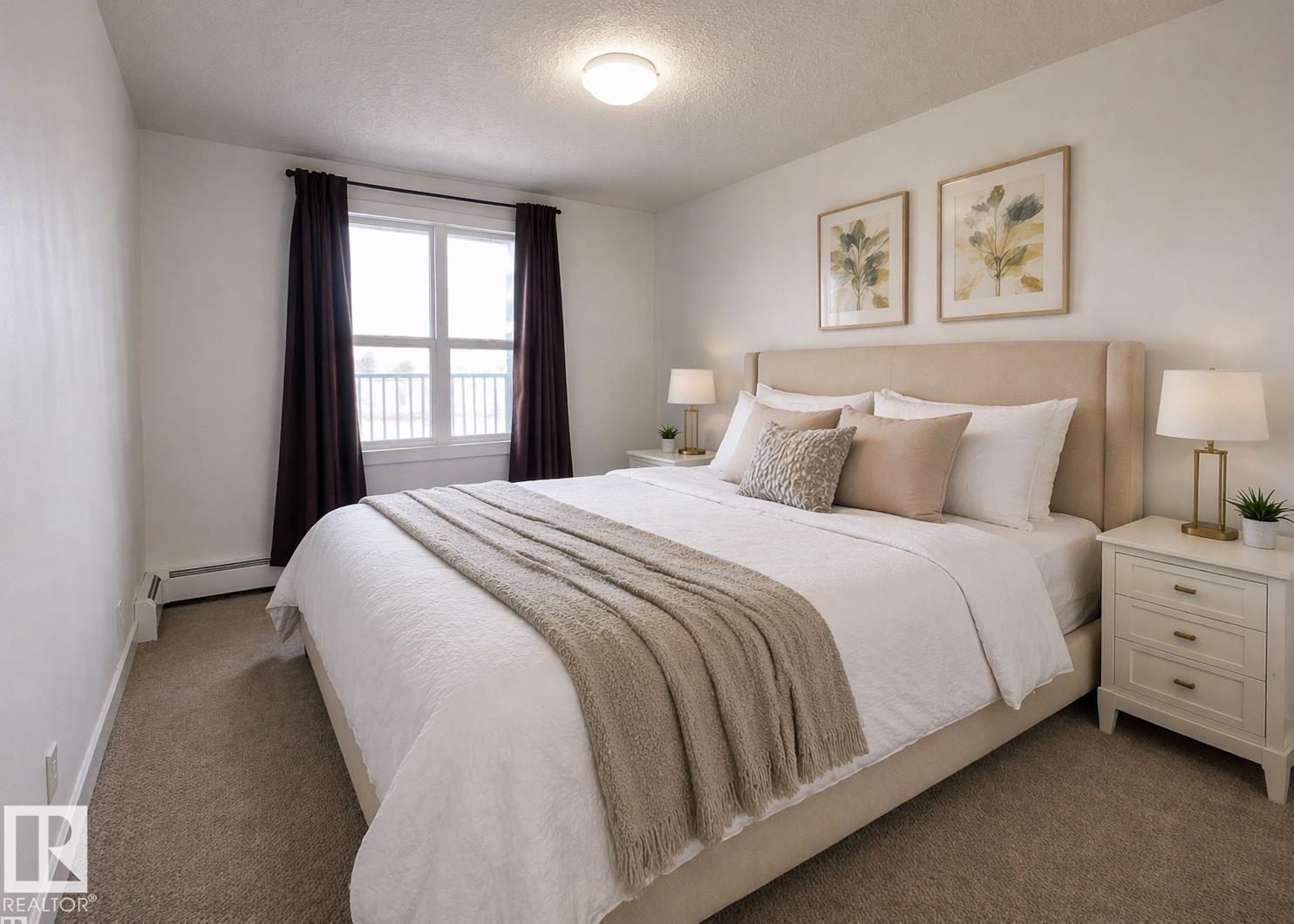 Welcome home to this bright & spacious 2 bed, 2 bath apartment in a highly coveted South Edmonton location. Well-designed unit, modern kitchen with SS appliances, quartz countertop & a generous bar seating. Open-concept living area is filled w/ natural light, direct access to your private covered balcony. The primary bedroom offers a peaceful retreat w/ a walk-through closet & a 4-pc ensuite. The second bedroom is positioned on the opposite side for maximum privacy, conveniently located next to 4-pc bath & in-suite laundry. A versatile den provides flexible space for a home office, guest room or additional living area. Enjoy the secured building access, elevator service, plus titled underground parking & a dedicated storage unit. Quick access to Highway 2, Anthony Henday Dr, 10 mins to South Common, 20 mins to YEG Airport & Premium Outlet. Steps to bus stops, Walmart, Sobeys, Real Canadian, restaurants, shopping, and all major amenities. Please note some pictures are virtually staged including fireplace. (id:63190)