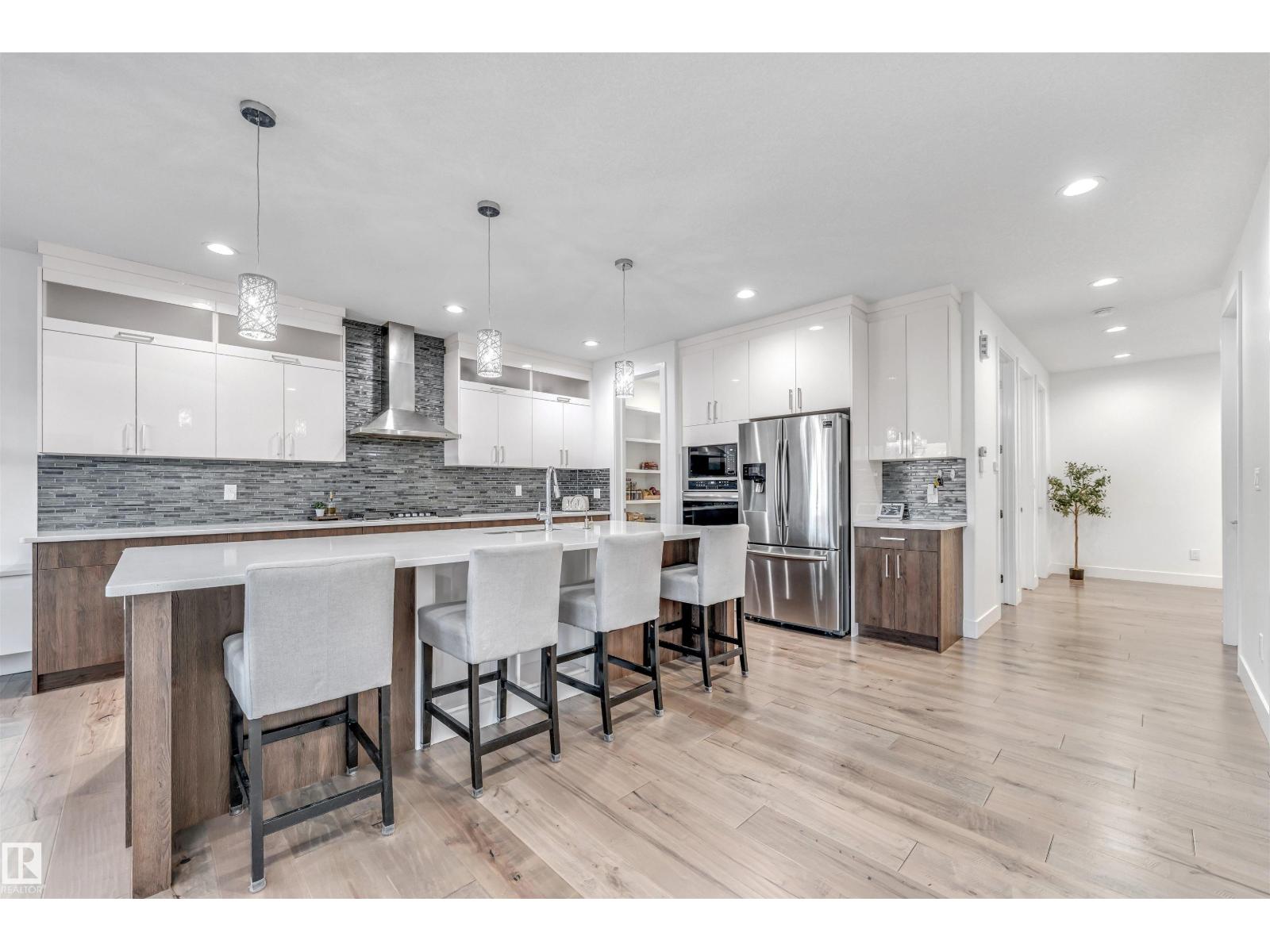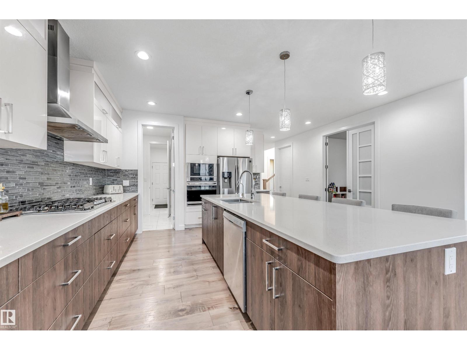 Welcome to Graydon Hill, a serene southwest community surrounded by nature yet minutes from city conveniences. This beautifully maintained home offers over 2,700 sq.ft. plus a fully finished basement with a side entrance. Enjoy natural light throughout w/ soaring windows & a vaulted living room. Gorgeous kitchen features a walk through pantry, upgraded appliances (incl. gas stove), Air Condition & reverse osmosis. Open concept kitchen, dining, living room + MAIN FLOOR BATH & DEN/BDRM. Upstairs find huge primary walk-in & 5pc ensuite. 2 more well-sized bedrooms, 4pc bathroom, laundry & spacious bonus room. Basement offers 2 additional bedrooms, living area & wet bar. Features engineered hardwood, quartz throughout, central vac rough-in, 8' doors, 9' ceilings, new windows, BACK GATE for ADDTL PARKING & new landscaping. Walking trail across the street leading to a naturalized storm pond + large park down the block. Easy access to Henday, Calgary Trail, Currents of Windermere, South Common & more! (id:63190)