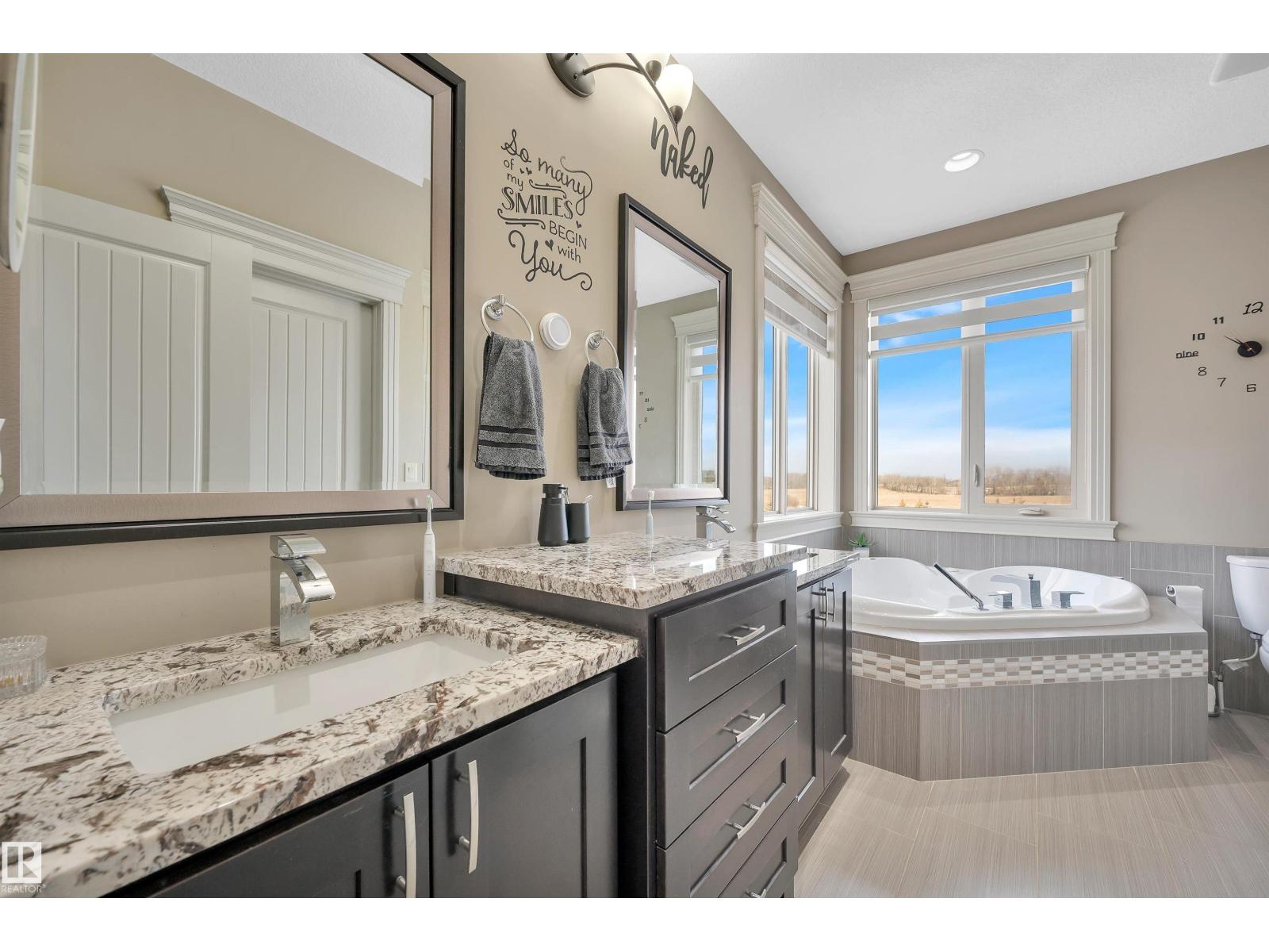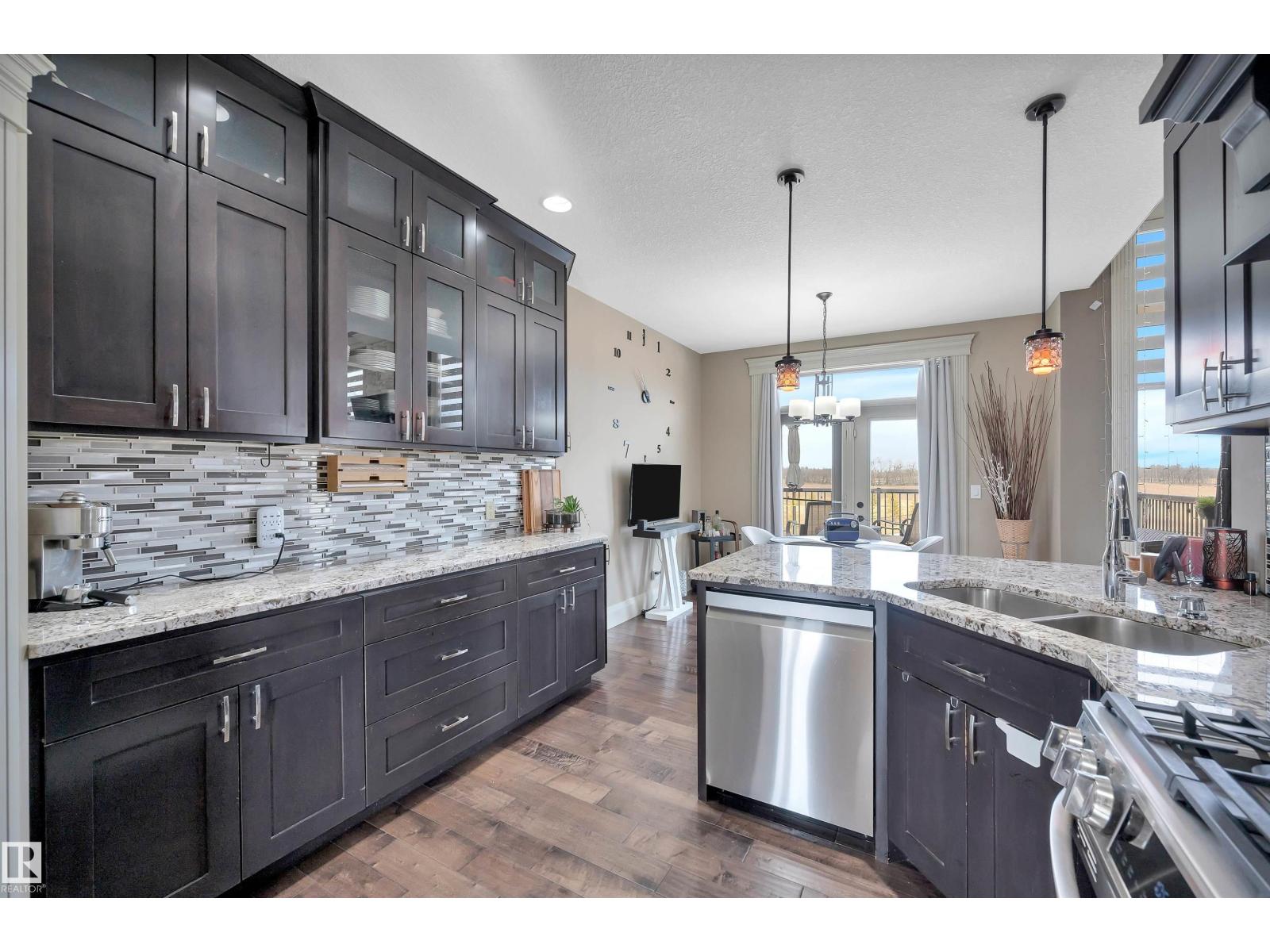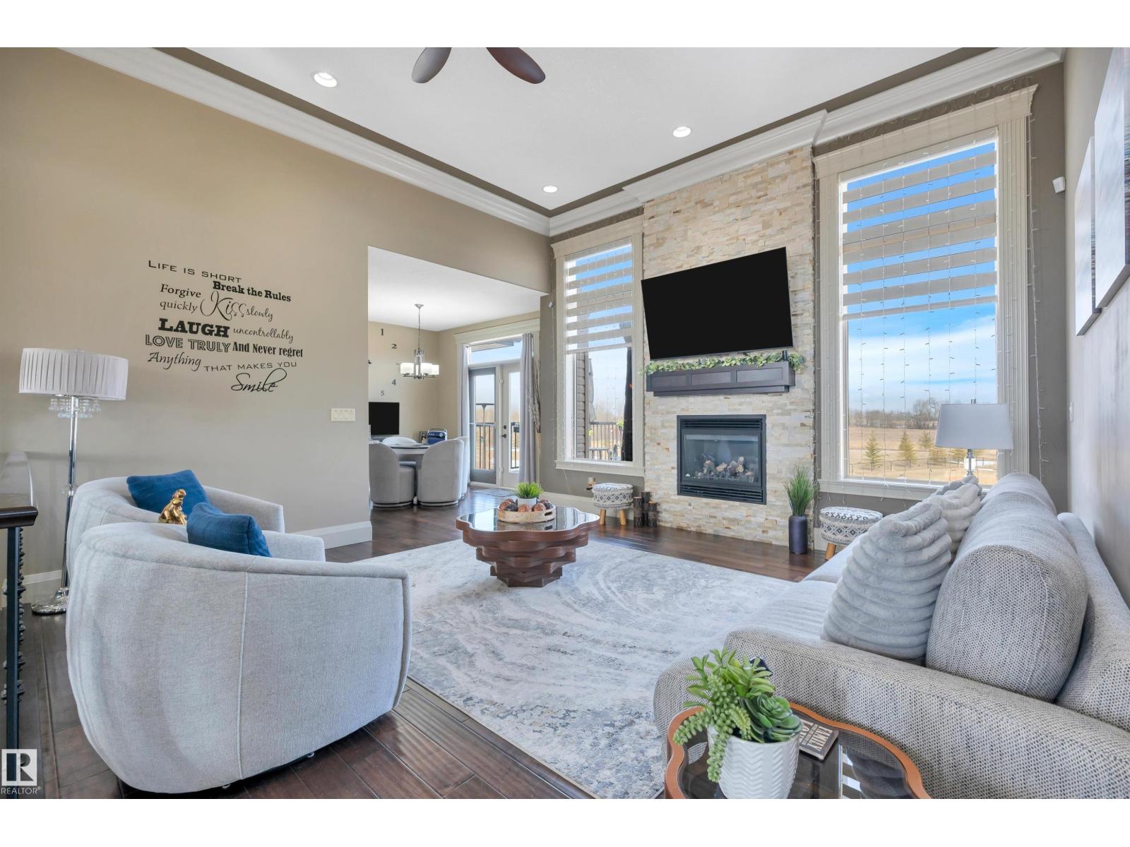 Stunning walkout bungalow set on 2.52 fully fenced acres just minutes from Beaumont. A bright front foyer opens into the dining area and main living room, finished with a stone fireplace, feature wall, hardwood flooring, and crown moulding.The kitchen includes tons of cabinetry, granite countertops, stainless steel appliances, a corner pantry, and access to the upper deck. The main floor features a primary bedroom with a walk-in closet and ensuite with dual sinks and soaker tub, along with two additional bedrooms (or bedroom and den) and a full 5-piece bath. Laundry/mudroom connects directly to the oversized heated garage. The fully finished walkout basement includes a rec room, wet bar, games/family space, two bedrooms, a full bath, and direct access to the backyard. Upgrades include full solar, new appliances, new blinds, epoxy garage floors, a large concrete parking pad, and Dura Deck with stairs to the yard. A property that gives you the space, privacy, and flexibility that comes with acreage living. (id:63190)