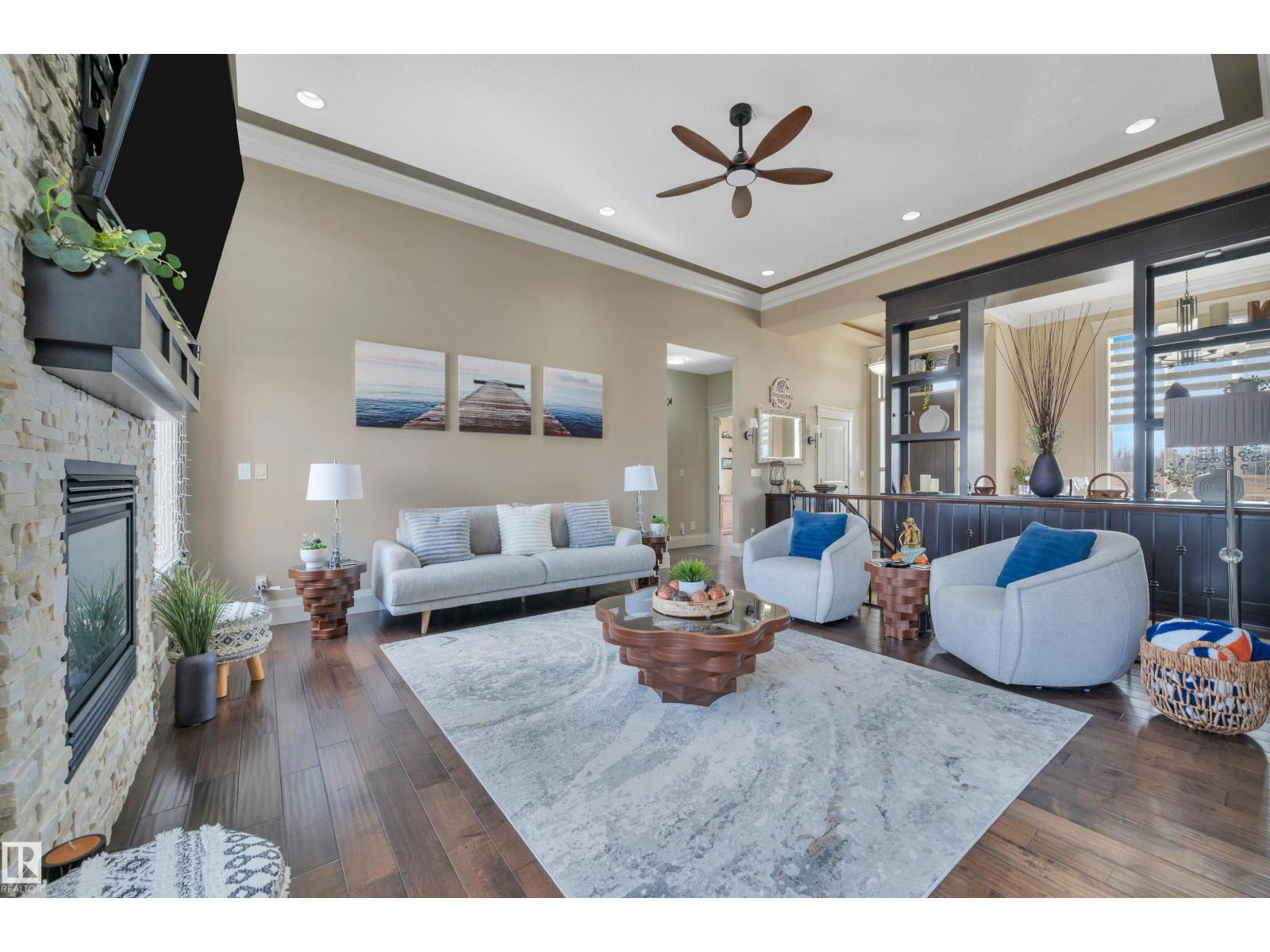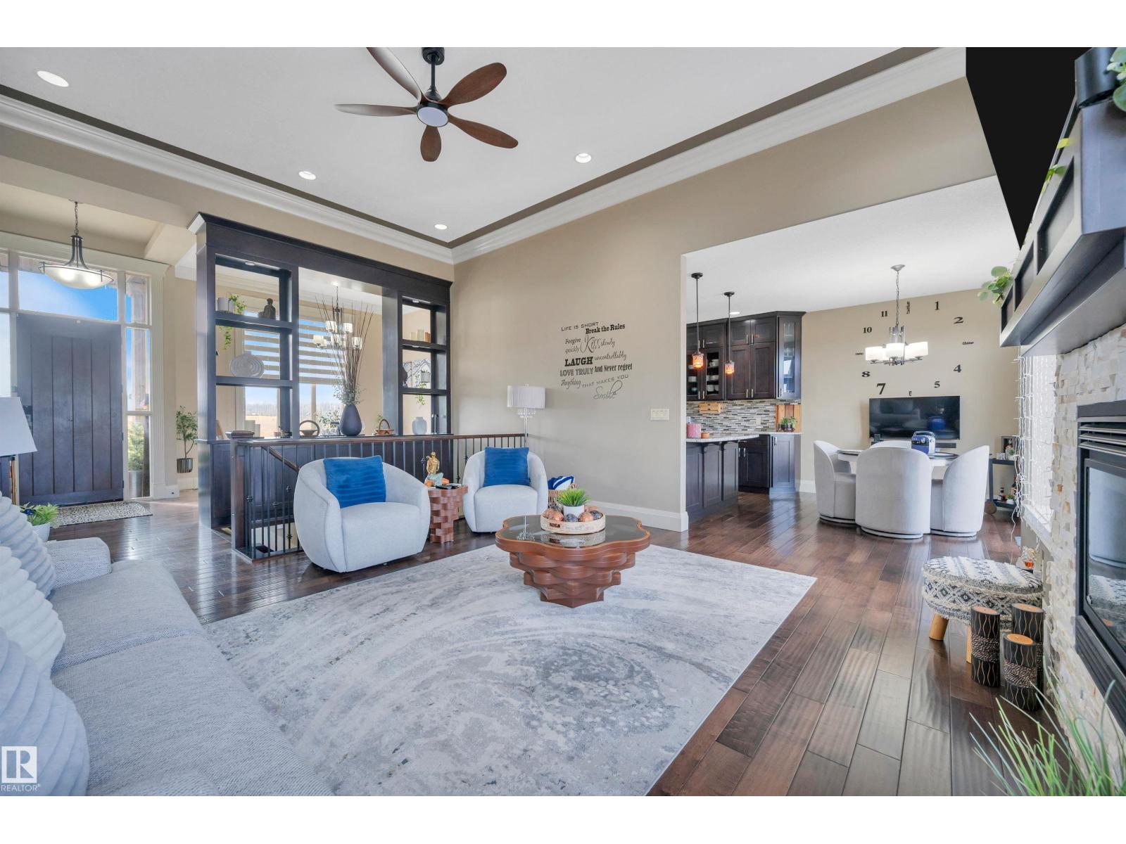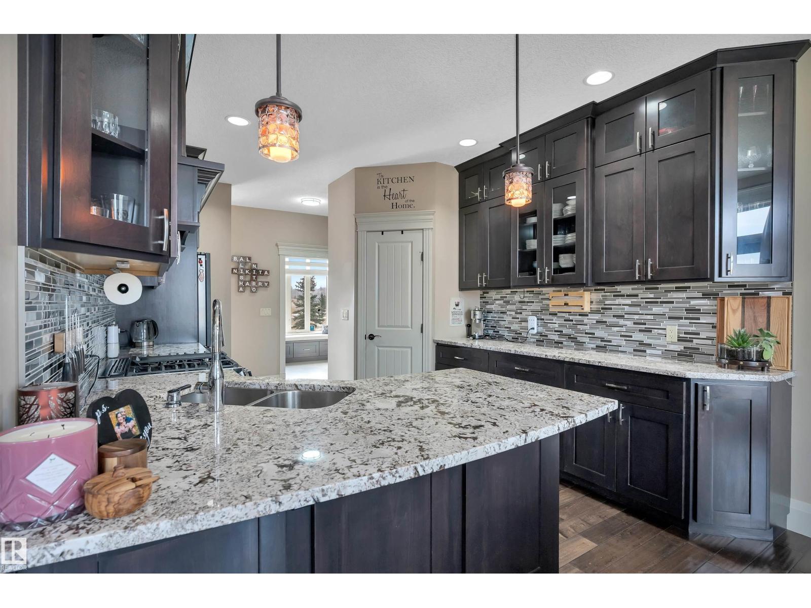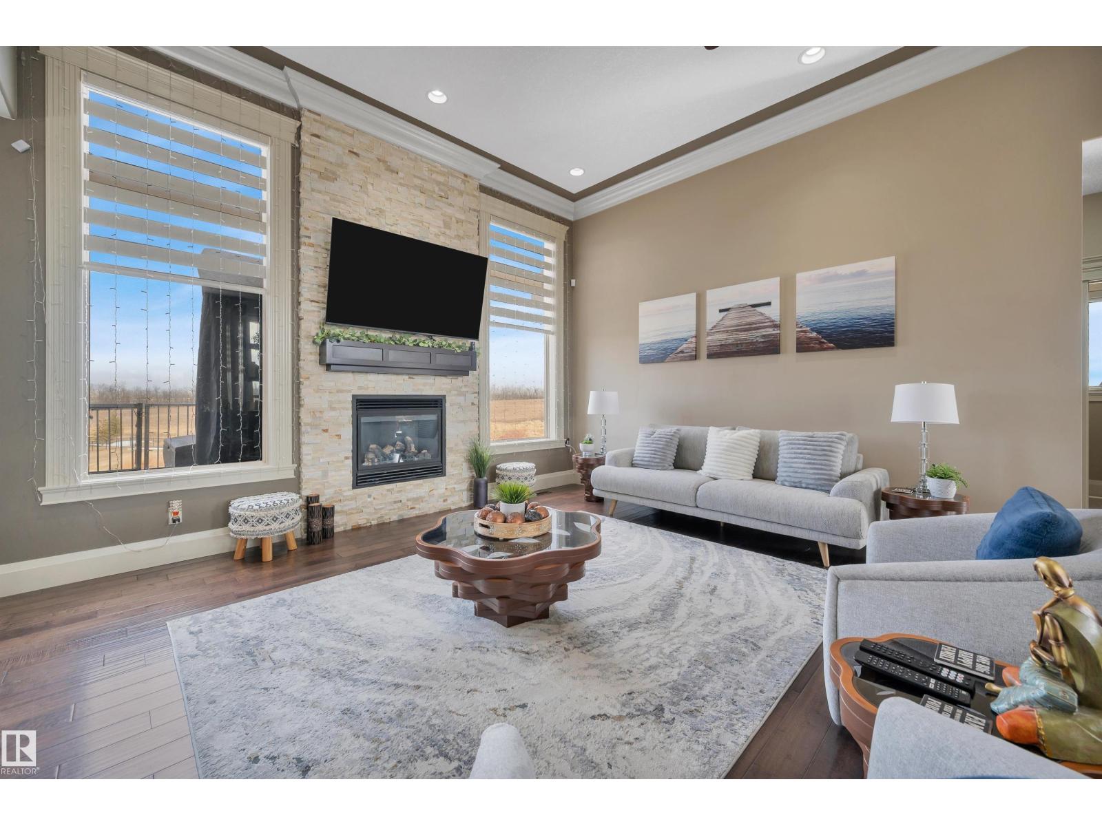 Stunning walkout bungalow set on 2.52 fully fenced acres just minutes from Beaumont. A bright front foyer opens into the dining area and main living room, finished with a stone fireplace, feature wall, hardwood flooring, and crown moulding.The kitchen includes tons of cabinetry, granite countertops, stainless steel appliances, a corner pantry, and access to the upper deck. The main floor features a primary bedroom with a walk-in closet and ensuite with dual sinks and soaker tub, along with two additional bedrooms (or bedroom and den) and a full 5-piece bath. Laundry/mudroom connects directly to the oversized heated garage. The fully finished walkout basement includes a rec room, wet bar, games/family space, two bedrooms, a full bath, and direct access to the backyard. Upgrades include full solar, new appliances, new blinds, epoxy garage floors, a large concrete parking pad, and Dura Deck with stairs to the yard. A property that gives you the space, privacy, and flexibility that comes with acreage living. (id:63190)