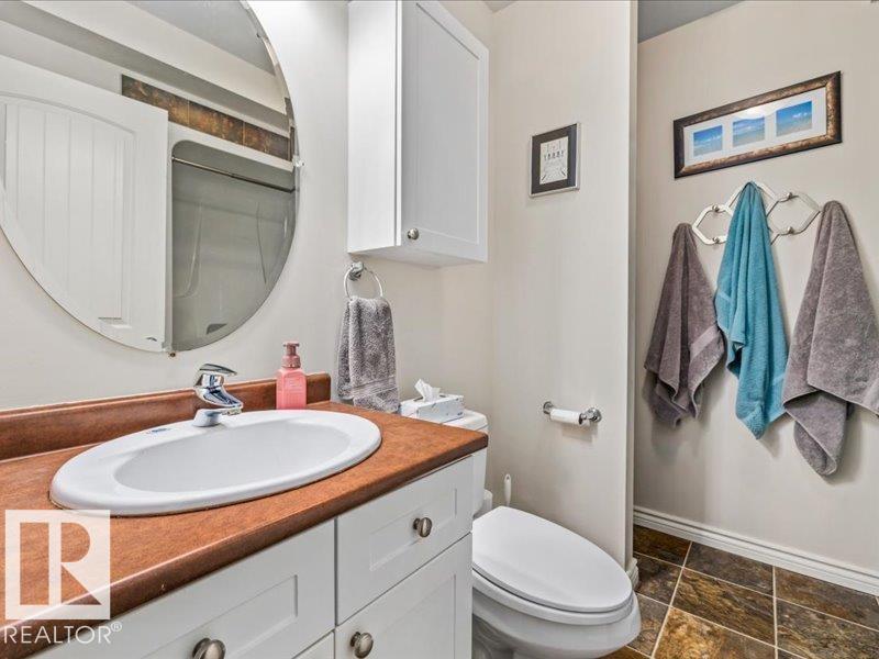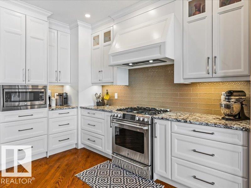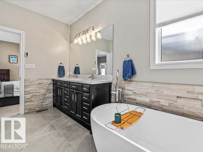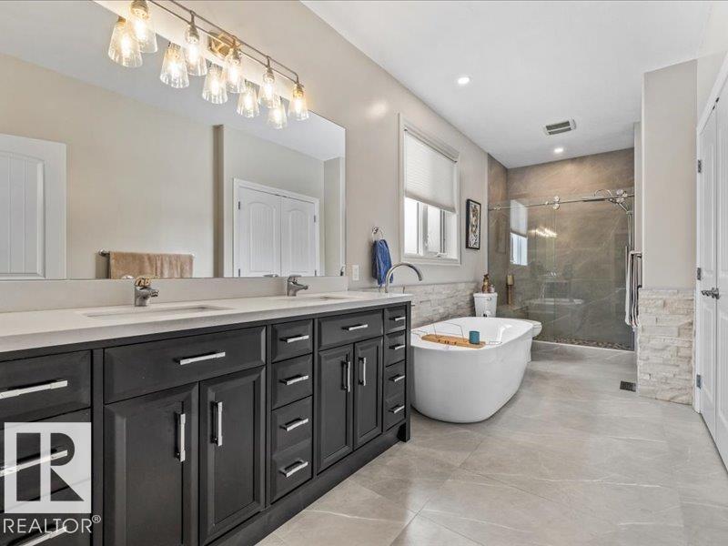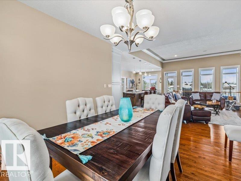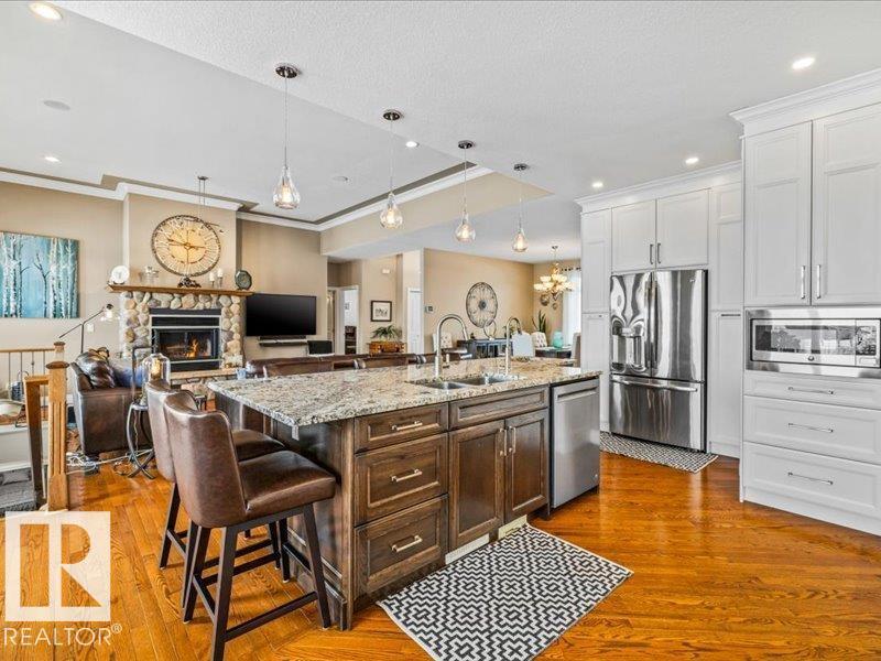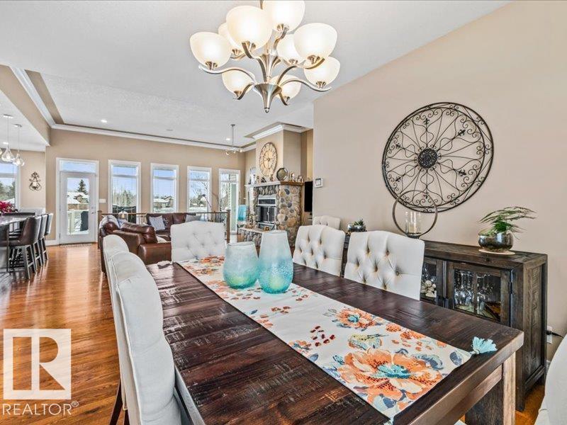 Perched on a half-acre in the serene Habitat Acres subdivision, this thoughtfully designed bungalow offers the rare balance of natural seclusion and city convenience, just minutes from Sherwood Park. Every room was intentionally oriented toward the stunning wetland backdrop, where wildlife roams year-round. The open main floor features 11-ft ceilings, a wood burning fireplace, custom floor-to-ceiling cabinetry, and stone countertops sourced specifically for this home. The primary suite captures morning sun through east-facing windows. A fully renovated ensuite, matched original hardwood throughout, and an updated kitchen reflect a meticulous renovation by a master contractor. The lower level adds two bedrooms, a theatre room, a bar, and a full bath. City water. Half-acre lot. A property of this caliber, in this setting, rarely comes to market. (id:63190)