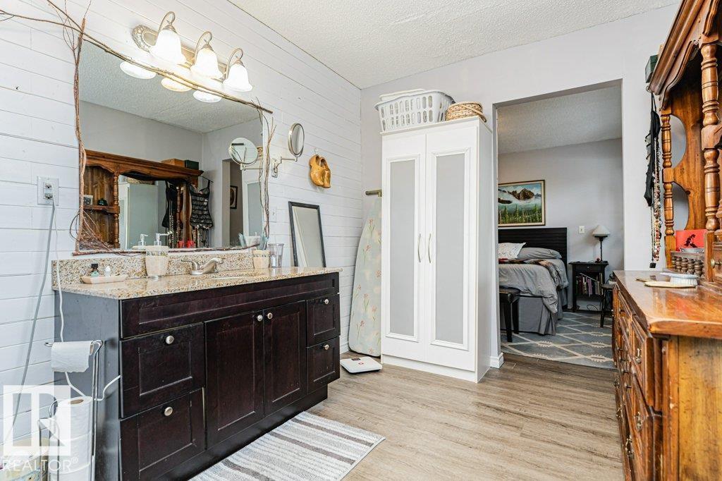 Discover the charm of small-town living in Lamont—perfect for a young couple starting out or a retired couple seeking comfort and space. This beautifully maintained home offers 2 main-floor bedrooms, including a primary retreat with a custom spa-inspired ensuite. Stay cool with central A/C and enjoy a stunning remodeled kitchen featuring modern two-tone cabinetry, pull-out organizers, and warm butcher block countertops. The fully finished basement boasts a spacious family room with cozy gas stove, wet bar, third bedroom, and full bath—ideal for entertaining or guests. Outside, enjoy a large covered deck, fenced and landscaped yard, and RV parking. Car lovers and hobbyists will appreciate the oversized heated attached garage plus a heated detached garage with loft and separate entrance—perfect for a workshop, storage, or play space. Durable metal roof and thoughtful upgrades throughout complete this exceptional property. Single Att'd Garage Plus 16x14 workshop or Sunroom and 22x14 shop or detached garage . (id:63190)