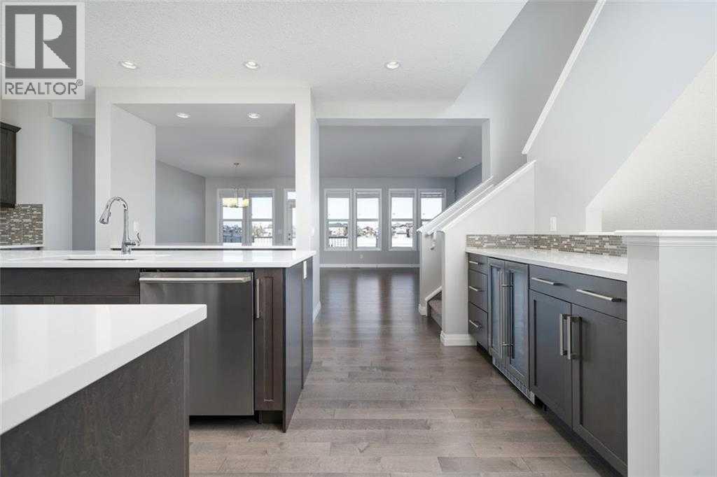 Gorgeous family home in the lake community of Auburn Bay. Upstairs you will find a good sized bonus room, a large bathroom with dual sinks, 3 good sized bedrooms including a primary bedroom with his and hers walk in closets, a beautiful spa like en-suite with his and hers sinks, a glass shower and a stand alone tub. On the main floor you will enjoy your upgraded kitchen that has two large islands, a bar feature which is great for entertaining. Property has been constructed for an A/C connection, has a security system, an oversized double garage and backs onto a walking path with the school right behind. You will also enjoy the perks of lake privileges. Property is close to schools, parks and shopping. (id:63190)