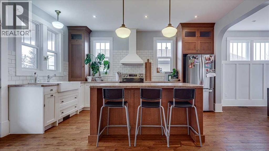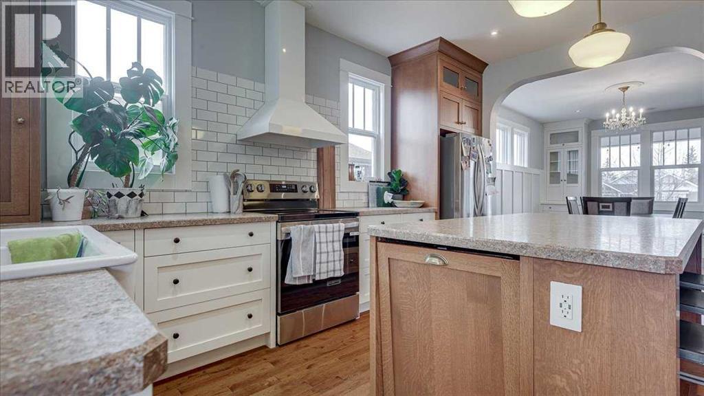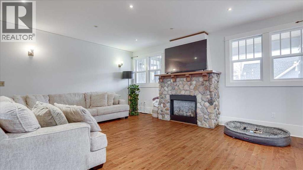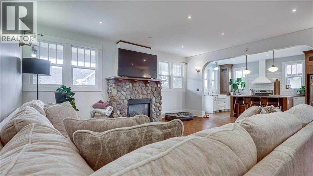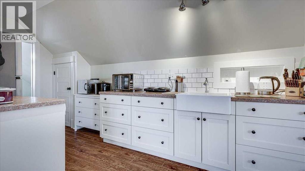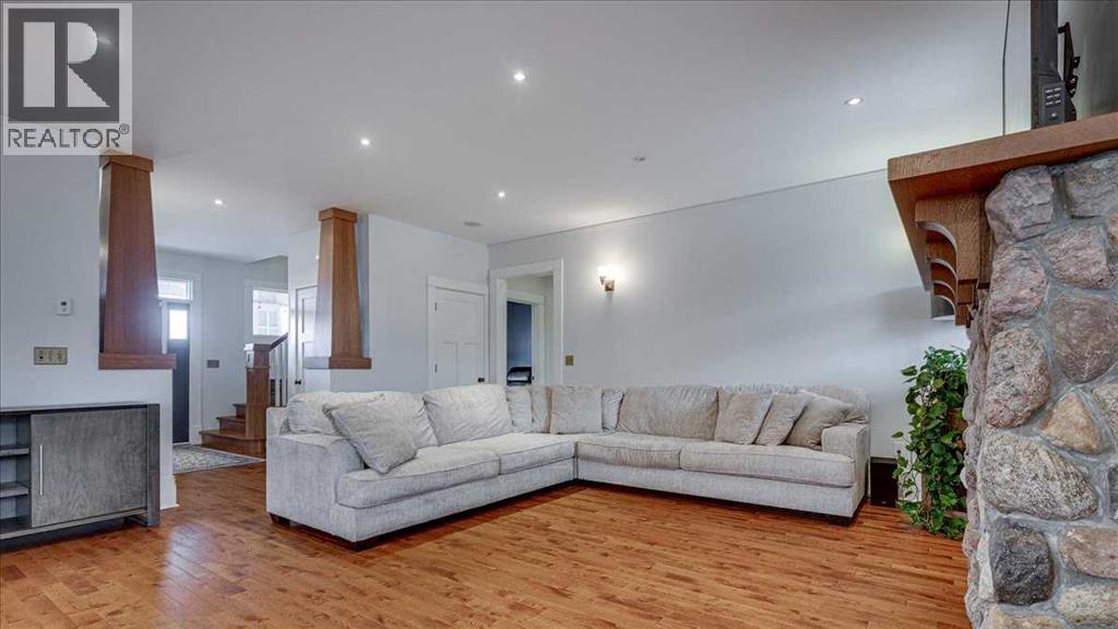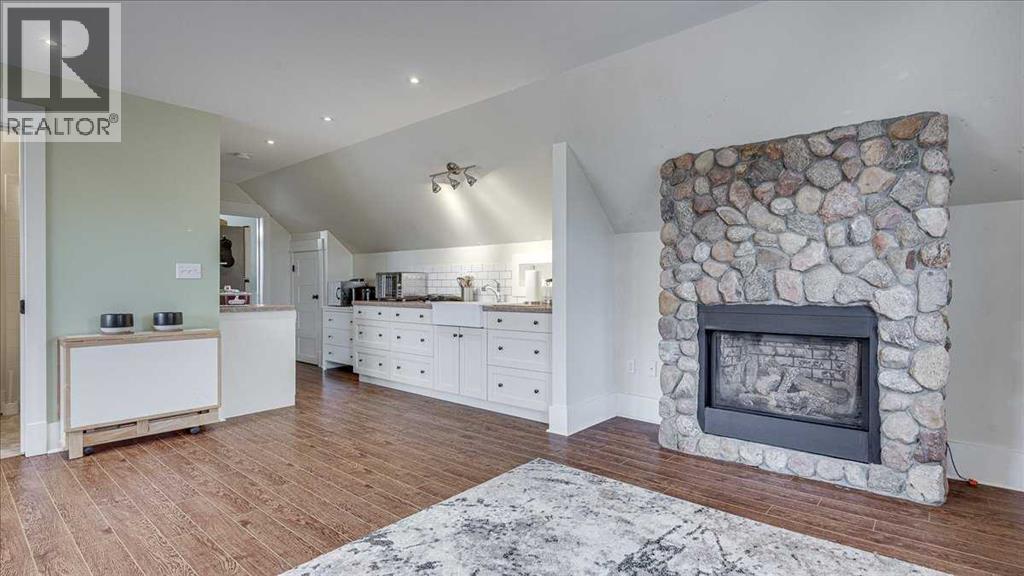 Spacious Meridian Beach home offering over 2,500 sq ft, a carriage house with guest suite loft, and Gull Lake access with potential boat slip—ideal for year-round living or the perfect summer retreat.Located in one of Central Alberta’s most sought-after lake communities, this Craftsman-style home blends character, comfort, and flexibility just steps from the water. The inviting front veranda sets the tone, while the interior offers a bright, open-concept main floor with hardwood flooring, large windows, and a stone-faced fireplace that anchors the living space.The kitchen is designed for both everyday living and entertaining, featuring a large central island, custom cabinetry, subway tile backsplash, farmhouse sink, and stainless steel appliances. It flows seamlessly into the dining area with built-in cabinetry and excellent natural light, creating a warm and functional gathering space.Upstairs, you’ll find spacious bedrooms with vaulted ceilings, including a primary bedroom with its own fireplace and generous layout. The fully developed basement adds additional living space with a large recreation area, bedrooms, and a full bath—ideal for family or guests.A standout feature of this property is the **detached carriage house-style garage with an upper-level guest suite loft**, complete with its own living space, kitchen, bedroom area, and bathroom. This flexible space is well-suited for extended family, long-term guests, or private accommodations.Practical elements include a functional mudroom with built-ins, main floor laundry, and ample storage throughout. The long driveway and garage provide plenty of room for vehicles, boats, and recreational equipment.Meridian Beach offers a true lake lifestyle with easy access to Gull Lake, including boating, swimming, and year-round outdoor recreation. Conveniently located within reach of Ponoka, Lacombe, and Red Deer, this property offers space, flexibility, and lake living in a highly desirable setting. (id:63190)