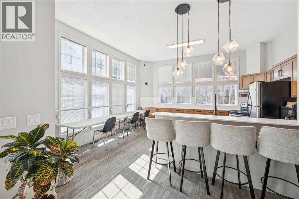 Welcome to this meticulously maintained third-floor end unit offering 962 sq ft of bright and functional living space with 2 bedrooms, 2 full bathrooms and titled parking in a beautiful complex. Facing into the quiet centre clubhouse and courtyard area, this home provides a peaceful setting with minimal noise—perfect for comfortable everyday living. Pride of ownership is evident throughout, with the unit showing exceptionally well and having been thoughtfully cared for by the current owner. The open-concept layout is both practical and inviting, seamlessly connecting the kitchen, dining, and living areas—ideal for entertaining or relaxing at home. The spacious kitchen is a true focal point, featuring a large centre island, ample cabinetry, and newer appliances, including a recently upgraded SS refrigerator and stacked washer and dryer near the tiled foyer. Expansive windows throughout the unit allow for an abundance of natural light, enhancing the bright and airy atmosphere with beautiful maple engineered hardwood floors. The primary bedroom offers a private retreat with incredibly high ceilings, a walk-in closet and a 3-piece ensuite. The second bedroom is generously sized and conveniently located near the 4-piece bathroom, making it perfect for guests, a home office, or shared living. Additional highlights include two built-in wall air conditioning units for year-round comfort, a large private balcony overlooking the beautifully maintained clubhouse and courtyard area with a new Phantom Retractable Screen, a titled underground parking stall, separate titled storage locker, and bike storage. This wonderful complex offers excellent amenities within the clubhouse, including a fitness centre with new equipment, resident lounge with pool table, darts, TV, a full kitchen, extra seating, washrooms, and ample visitor parking. Ideally located with easy access to major roadways, shopping, YMCA, restaurants, and all essential services. A quiet, exceptionally well-kept massiv e end unit in a desirable location—this is one you won’t want to miss. (id:63190)