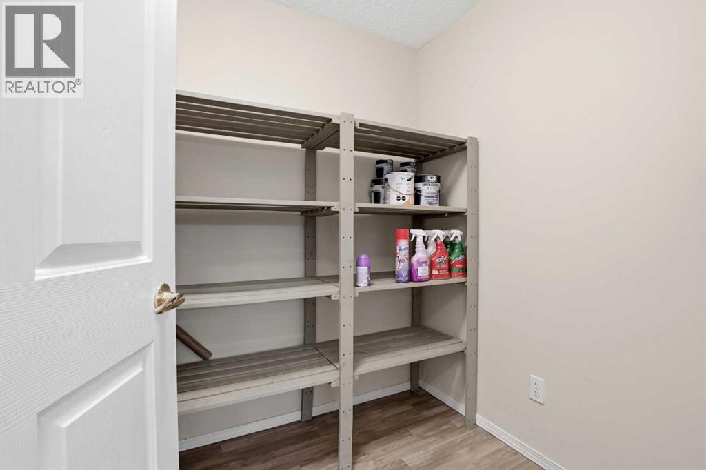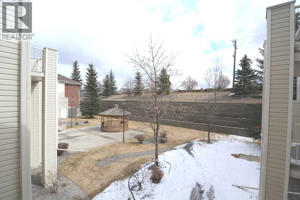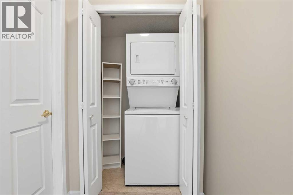 60+ adult condo in the popular Legacy Estates, located in SE Red Deer. Meticulously upgraded unit, freshly painted, with 2 bedrooms, 2 baths, one has a bathtub, the other has a large shower. The kitchen has raised panel white cabinets and comes with the fridge, stove & dishwasher. There is a storage room and in-suite laundry with a stacking washer/dryer (also included). The living room has a garden door out to a covered deck that looks out onto the courtyard- a beautiful setting! This unit is close to the elevator. The heated, titled parking stall is also close to the elevator. Condo fees include heat, power, exterior maintenance, water, sewer, garbage removal, onsite admin and maintenance person(s). Great amenities include a games room, library, gym, puzzle/craft area, wood working shop, hair salon and dining area with meal services. (id:63190)