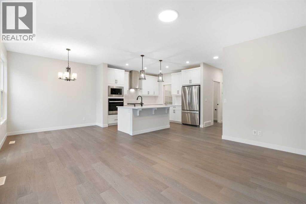 Welcome to your new home in the boutique community of Rivercrest in Cochrane! Built by TricoHomes, this stunning 3 bedroom home is bright, welcoming and has the perfect layout. Uponentering, you'll find a spacious main floor flex room, ideal for a home office, study, or kidsplayroom. Continuing into the main area, you’re greeted by the large full wall of windows toenjoy amazing sun from your south facing backyard. Your open concept kitchen is complete witha built-in stainless steel appliance package including a gas range and additional drawers, hellostorage! Enjoy cooking with ample counter space, a large pantry and spacious island; perfect foryour kids to enjoy breakfast or entertain. An inviting electric fireplace adds warmth and cozinessto your living room making it perfect for relaxing evenings. Heading upstairs you are greeted bya spacious & centrally located bonus room perfect for family movie nights or kids play space.Your primary suite is spacious & complete with a luxurious ensuite including double sinks,drawers for storage, upgraded tile shower and soaker tub. Conveniently situated just off yourensuite, is your spacious walk-in closet. Enjoy a full upstairs laundry room complete withadditional storage and space to hang your clothes. The kids wing of the home is complete withtwo well appointed spare rooms with walk-in closets and a full spare bath with quartzcountertops. In the basement you will find a separate side entrance, 9’ foundation, 3-piecebathroom rough-in and 2 basement windows perfect for your future development. Outside, enjoythe full day sun on your back deck and spacious 38’ wide future yard. Rivercrest is a quietboutique community with stunning mountain views and a future school site. Enjoy getting toknow your neighbours, on a quiet street and convenient access to everything Cochrane has tooffer! Living here means convenient access to Calgary, minutes from Spray Lakes RecreationCentre & downtown Cochrane! You have everyth ing Cochrane has to offer right at yourdoorstep. Call your Realtor and book your showing today! *Photos are representative from aprevious home. Colours for this home will vary. Please reach out for more details.* (id:63190)