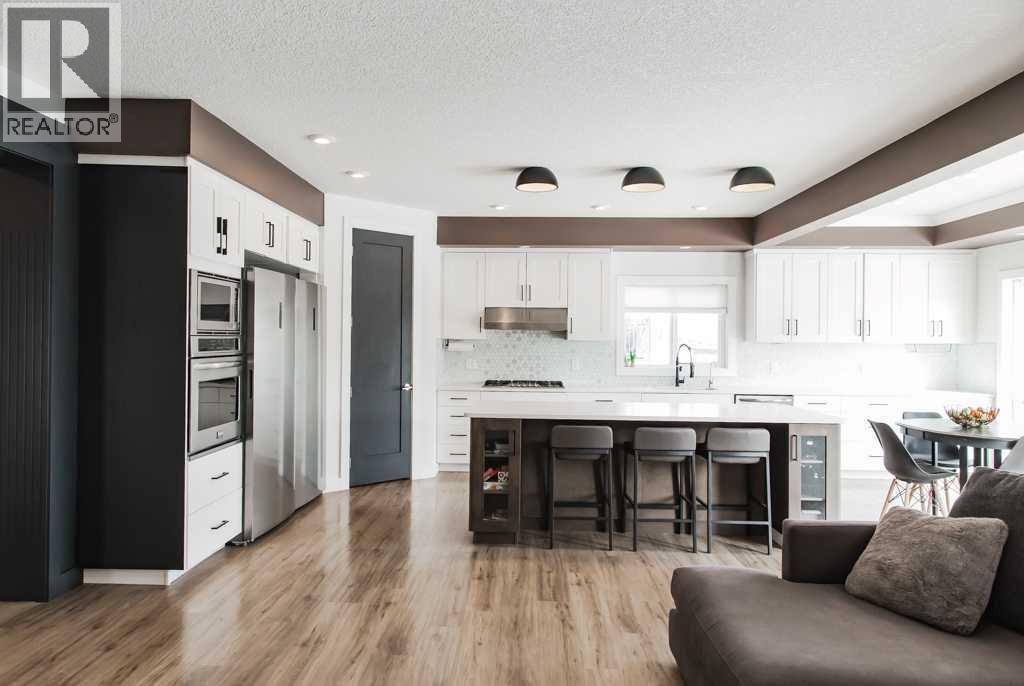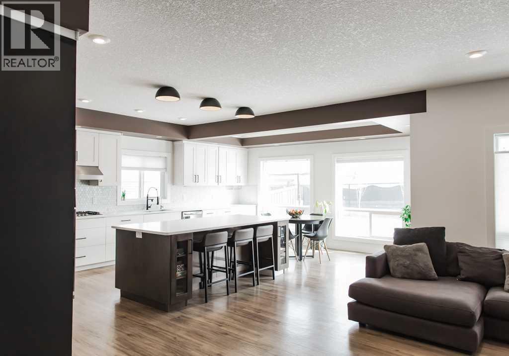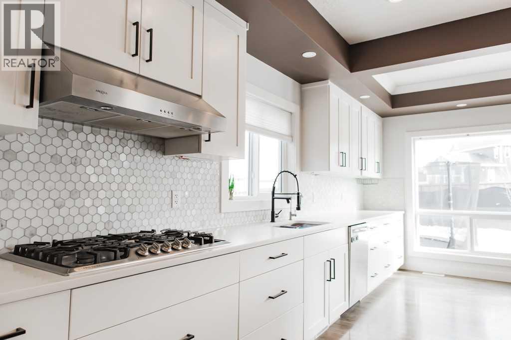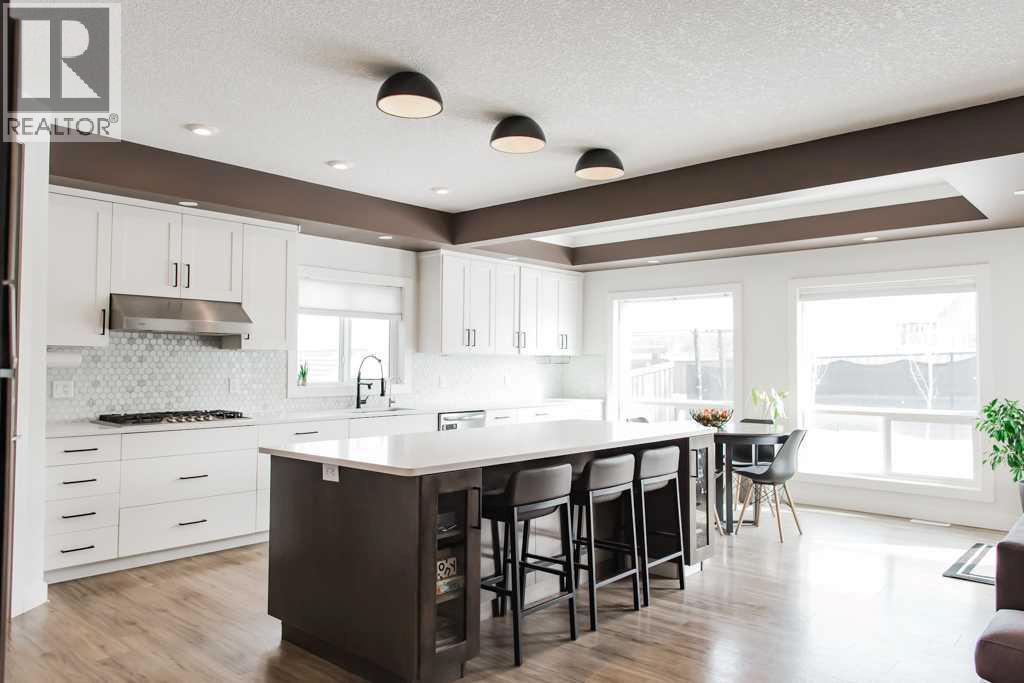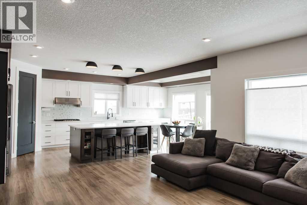If you’ve been searching for more space, greater square footage, and fewer unfinished projects, this is the one. This turnkey property stands out as one of the few homes on the market offering over 4,500 sq ft of fully developed living space. Featuring a total of six generously sized bedrooms and four bathrooms, the bright and expansive main floor is suited for both large gatherings and comfortable everyday living. Located within eyesight of Whispering Ridge Community School, this home is perfectly positioned for families—simply send the kids out the back gate to enjoy the playground and expansive green space beyond. This fully customized home showcases oversized rooms, upscale finishes, and a practical two-storey layout ideal for large families, multi-generational living, or professionals seeking an executive-style residence. You’ll immediately notice the luxurious 8-foot interior doors throughout, while the heart of the home—the kitchen—truly impresses. Designed for both function and style, it features an oversized 8.5-foot island with ample storage and soft-close cabinetry, a large walk-in pantry, an oversized fridge/freezer, built-in wall oven and microwave, dishwasher, and a premium gas cooktop. Seamlessly connected, the main living area offers custom built-ins and a gas fireplace, creating a warm and inviting space. The main floor is completed by a powder room and a well-designed back entry with built-in storage, leading to the heated 29’ x 35’ triple car garage. Upstairs, the primary retreat is a true escape, featuring a two-person jetted tub, tiled steam shower, space for a future sauna, private water closet, and dual vanities. The massive walk-in closet includes built-in shelving and offers direct access to the upper-level laundry room, complete with cabinetry and a sink. A thoughtfully designed, family-friendly bathroom includes double vanities and a separate enclosed tub and toilet area—perfect for busy mornings. With four bedrooms upstairs plus a spaciou s bonus room, there’s no shortage of room for relaxation and entertainment. The fully developed basement welcomes you with a striking brick feature wall leading into a large recreation space complete with a wet bar. Two additional bedrooms, a second laundry area, ample storage, and a full 4-piece bathroom complete this functional lower level. If you’re looking for a move-in-ready home with space to grow—no sod to lay, no fence to build, and no basement to finish—this thoughtfully designed, family-friendly home truly has it all. Book your private viewing today. (id:63190)