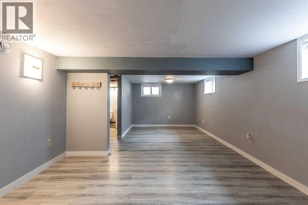 Welcome to this 2 bedroom, 2 bathroom bungalow situated on a spacious lot and just steps from Lions Park, Strathcona Park, and Strathcona Pool! This home is perfect for those looking to enjoy an active lifestyle close to amenities. Inside, you’ll find an open main floor featuring vinyl flooring, a comfortable living room, and a dining area that flows nicely into the kitchen. Two bedrooms and a full 4-piece bathroom complete the main level. The lower level offers plenty of flexibility with a large recreation room, a 3-piece bathroom, laundry, and additional storage. This home has seen several key updates for peace of mind, including a furnace and hot water tank. Step outside to enjoy the fully fenced backyard, featuring a gravel fire pit area—perfect for relaxing or entertaining on cool evenings. There’s plenty of room for kids, pets, or gardening, plus the added bonus of an 17’9”’ x 23’5” detached garage with an attached workshop. Come see the potential for yourself! (id:63190)