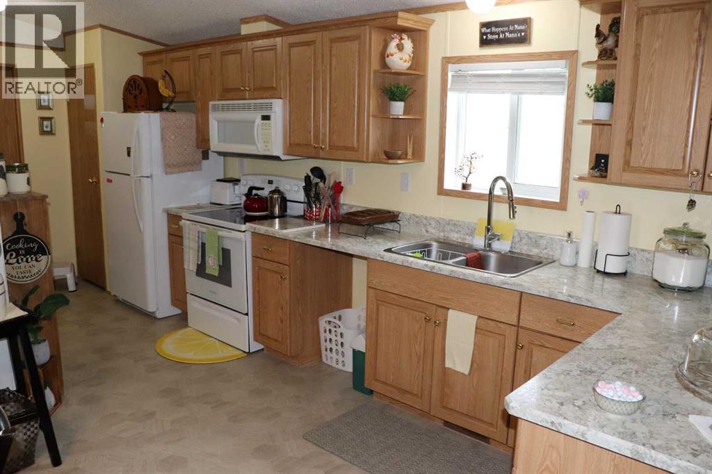 Perfect 3 Bedroom with an oversized double detached heated garage in a cul-de-sac location. This property backs onto to walking trails. Large kitchen with bult in China Cabinet. Two of the bedrooms can accommodate a king sized bed. The master has 4 piece bathroom and a walk in closet. Extra features are air conditioning, triple paved driveway and a covered deck. (id:63190)