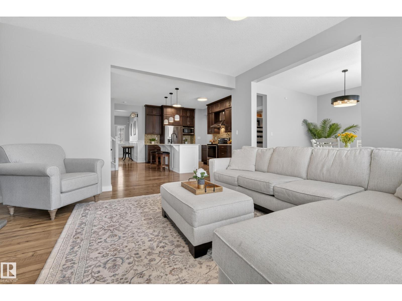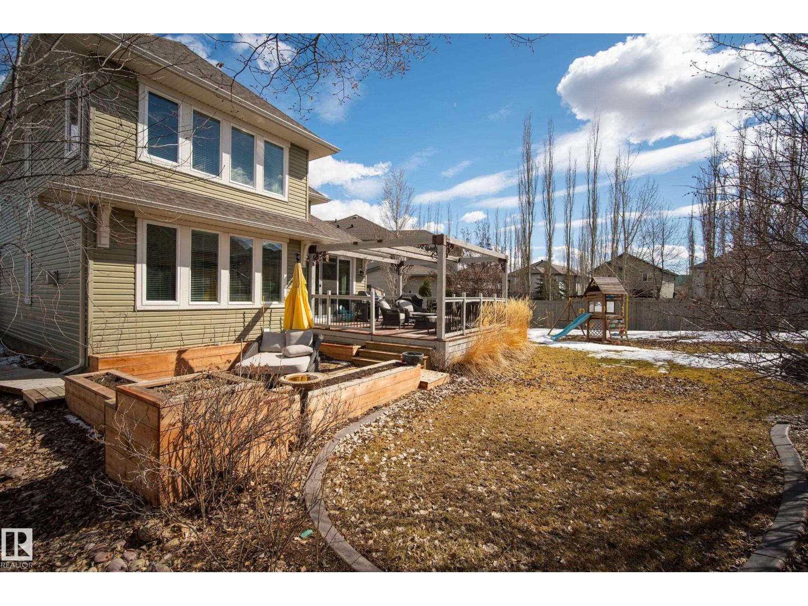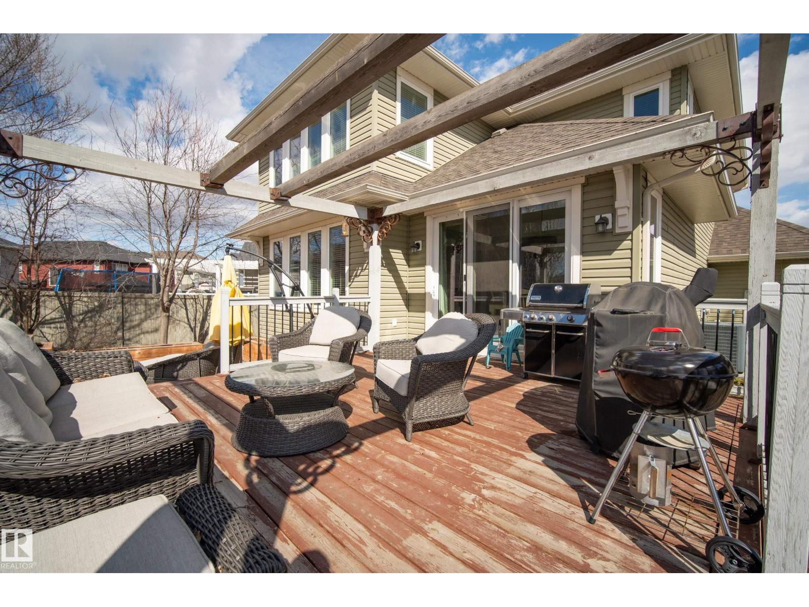 Welcome to one of Beaumont’s most sought after locations, tucked into a quiet cul de sac on a rare pie shaped lot offering over 2300 sqft of bright, air conditioned living space and an oversized double garage. Just steps to two schools, this home is perfectly positioned for family living. The open main floor features a huge mud room ideal for busy families and a custom oversized pantry that offers exceptional storage and organization. Upstairs you will find a bright and spacious bonus room filled with windows overlooking the gorgeous yard, creating the perfect place to relax or gather. Double doors lead to the primary retreat featuring a walk in closet and a large ensuite with a custom shower and skylight. Two additional generously sized bedrooms and a full family bathroom complete the upper level. Step outside and follow the boardwalk around the home to an oasis of a backyard, complete with a private park like yard. (id:63190)