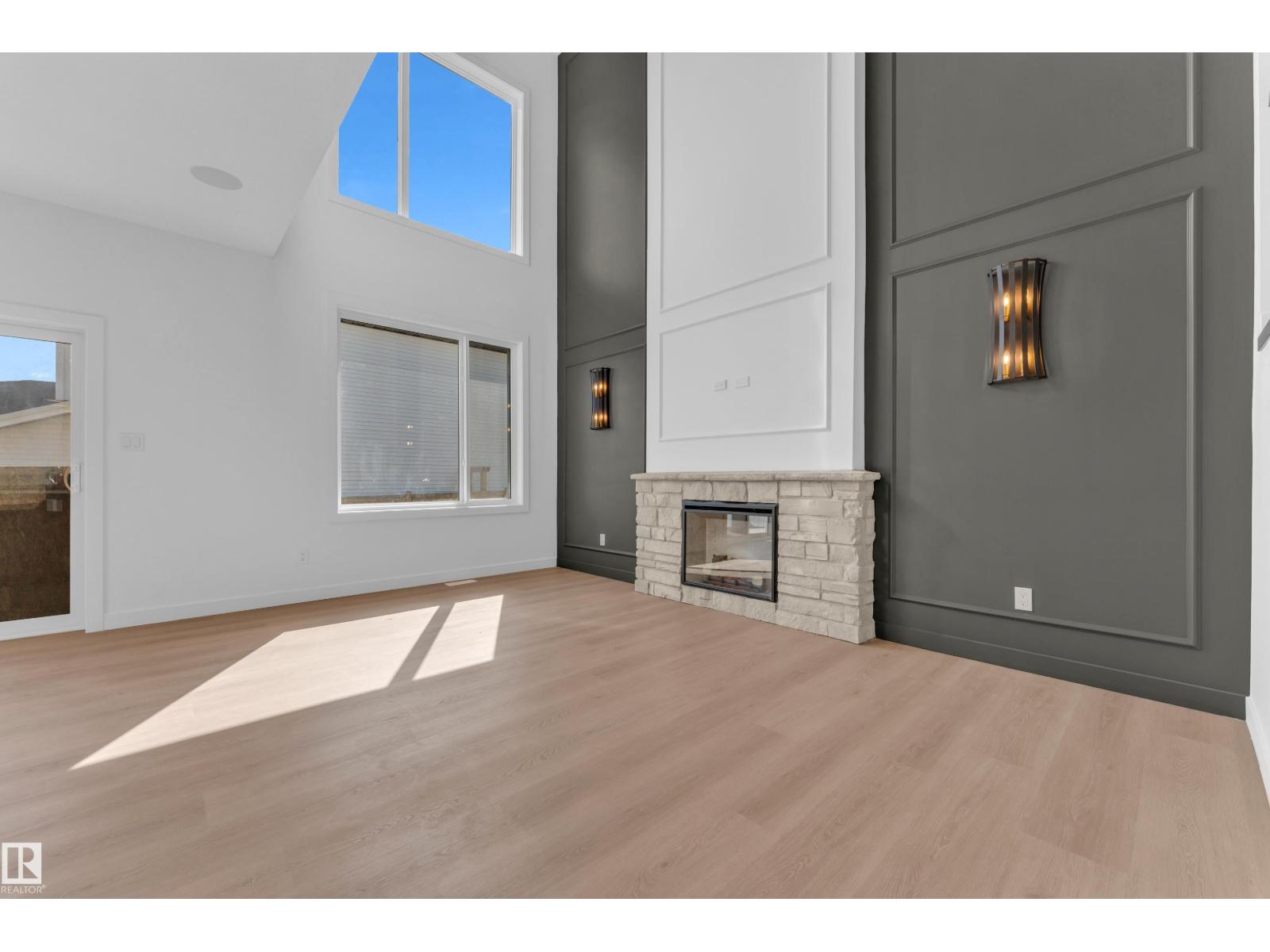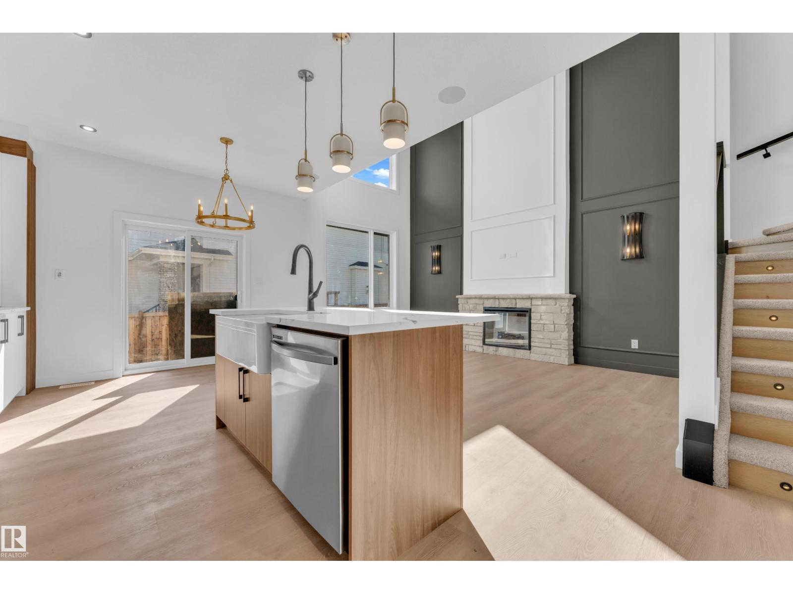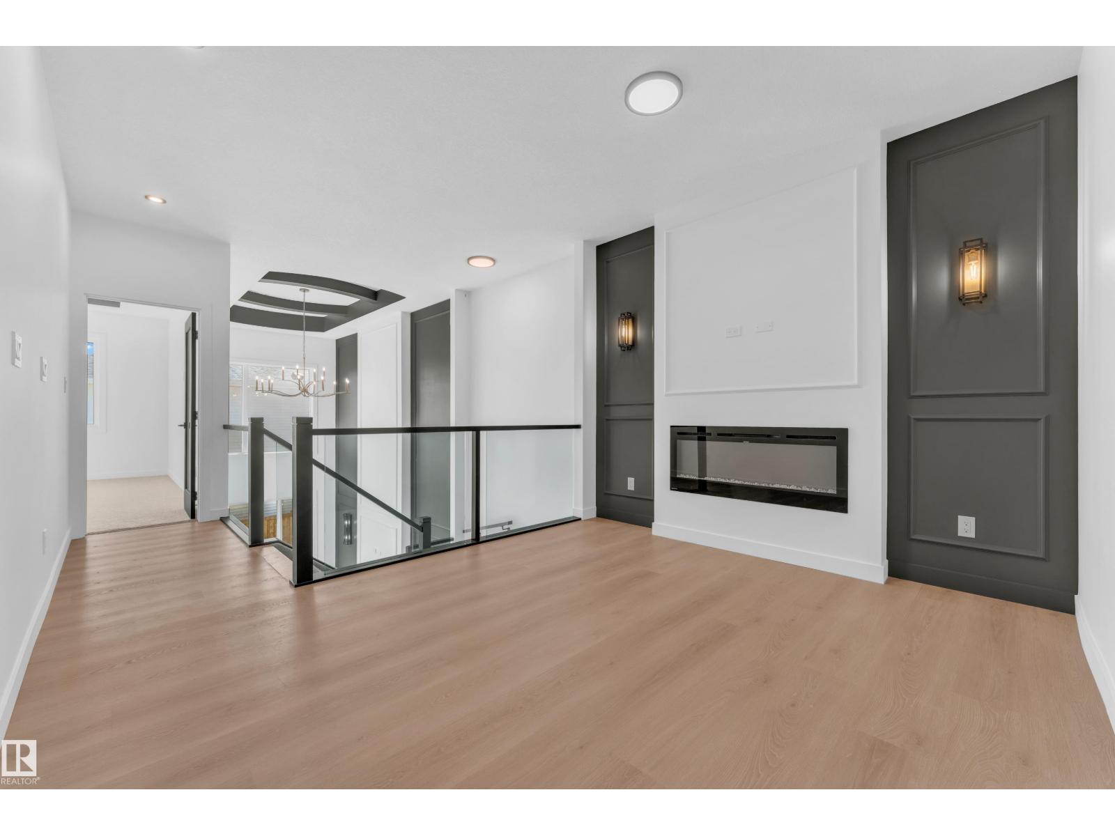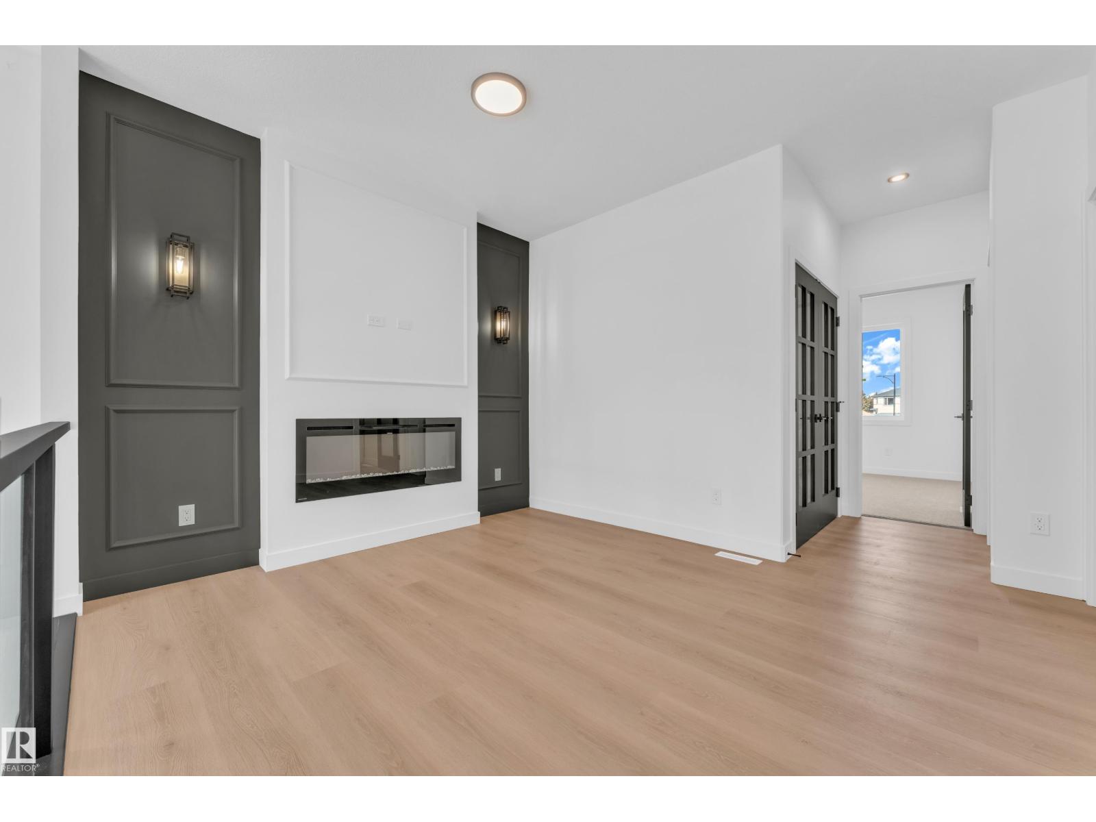DOUBLE ATTACHED GARAGE- HALF DUPLEX . Main floor entrance leads to Living Area with feature wall and then down the hall OPEN TO ABOVE Living Area with Electric fireplace , Stunning kitchen with modern cabinetry, quartz countertops, center island and spacious pantry. Spacious dinning nook with lots of sunlight. Main floor bedroom with closet & full bathroom. Stairs lead to upper level bonus room. Primary bedroom with 5piece ensuite/ spacious walk in closet/ Featured ceiling & wall design. two more bedrooms down the hall with 4 piece bath. Laundry is also conveniently located on upper level. Unfinished basement with separate entrance waiting for your personal finishes. (id:63190)
