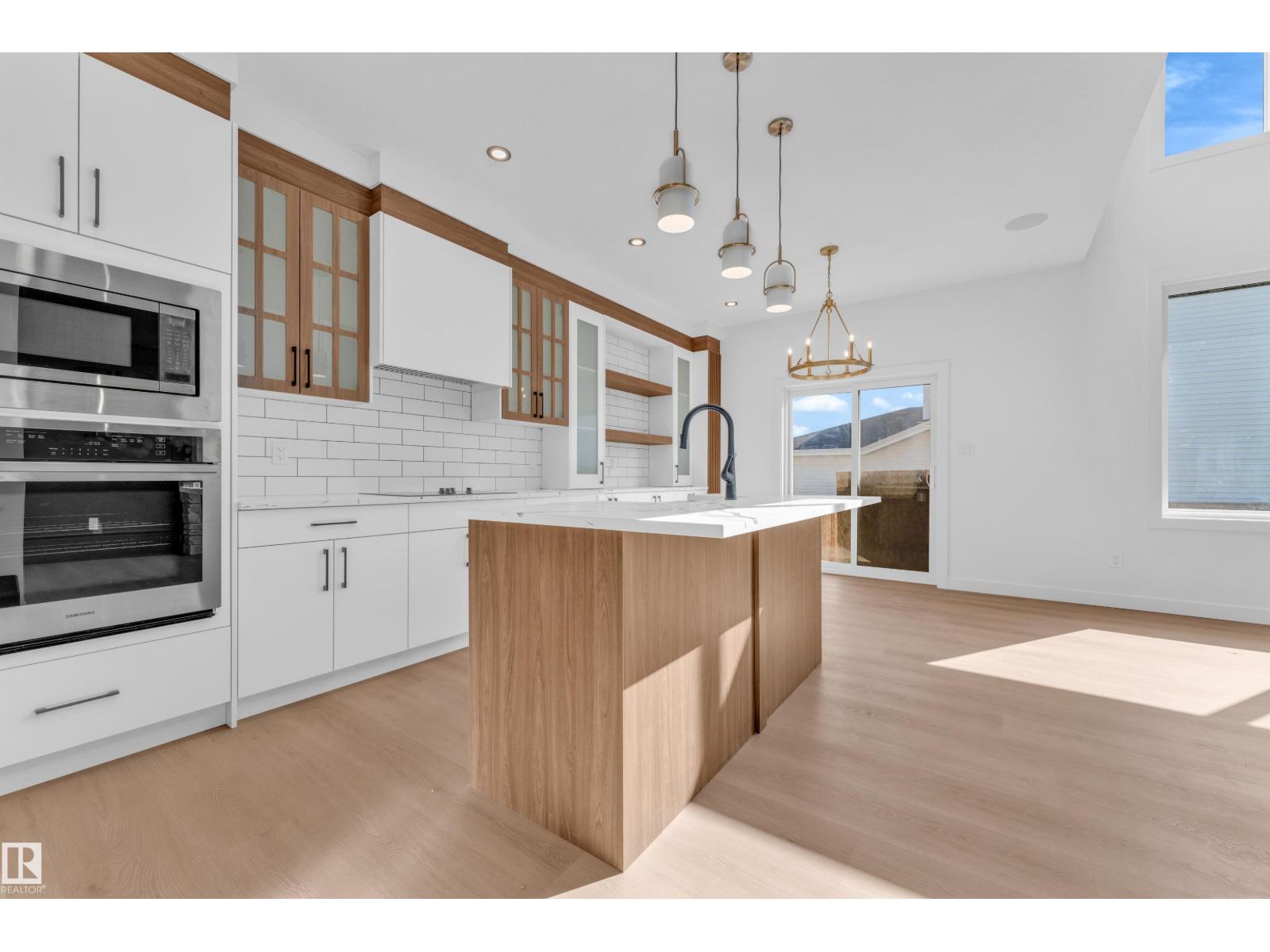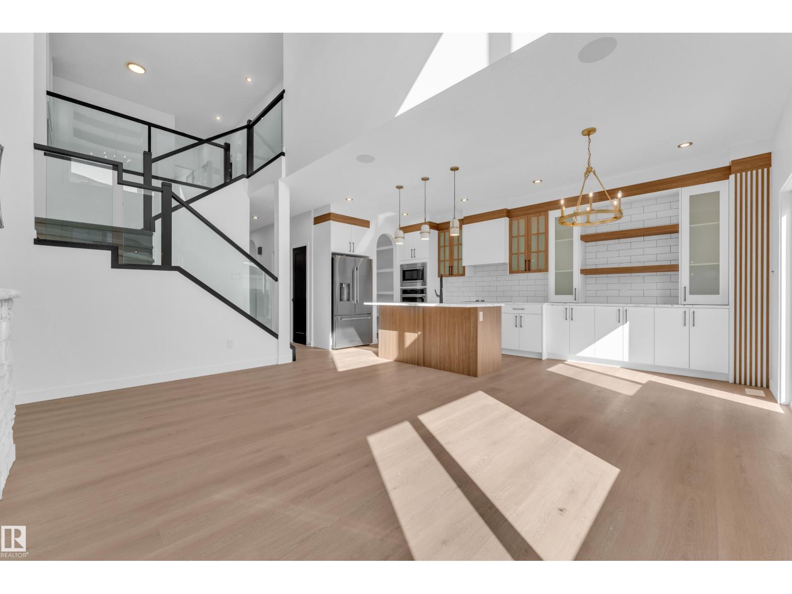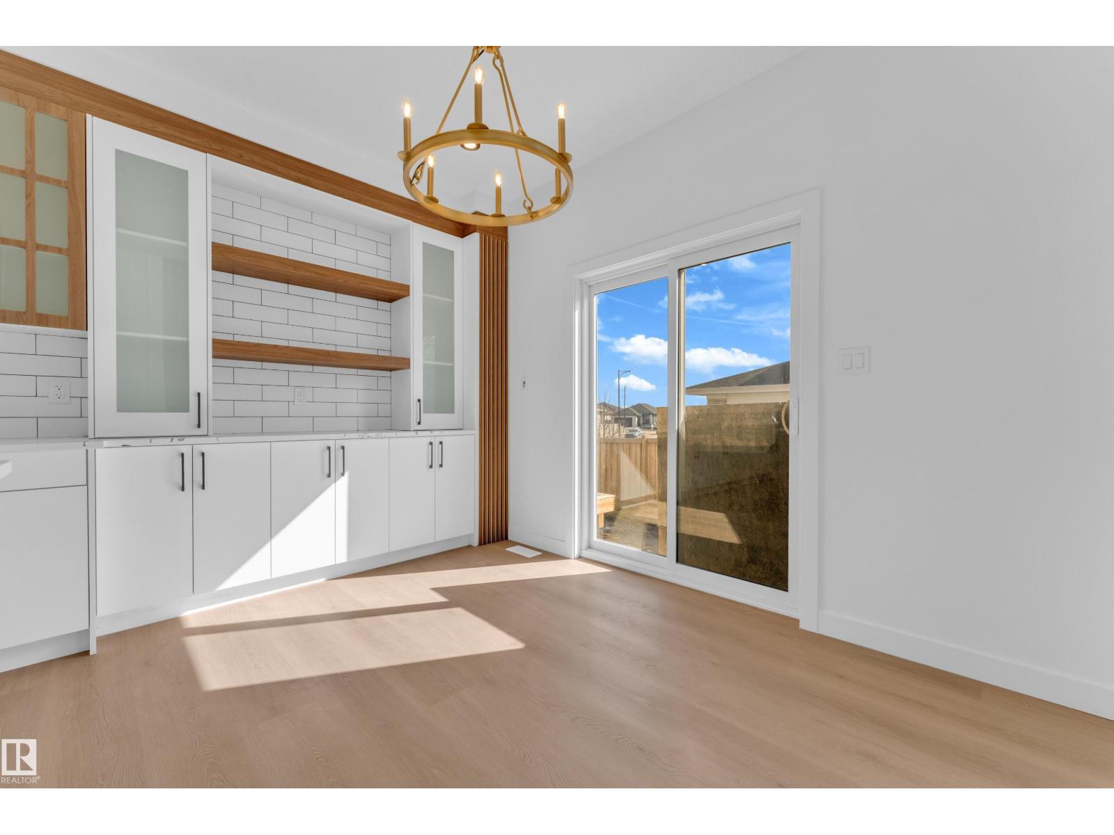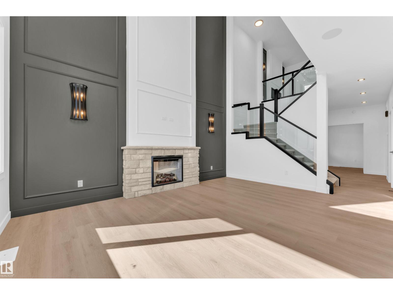 DOUBLE ATTACHED GARAGE- HALF DUPLEX . Main floor entrance leads to Living Area with feature wall and then down the hall OPEN TO ABOVE Living Area with Electric fireplace , Stunning kitchen with modern cabinetry, quartz countertops, center island and spacious pantry. Spacious dinning nook with lots of sunlight. Main floor bedroom with closet & full bathroom. Stairs lead to upper level bonus room. Primary bedroom with 5piece ensuite/ spacious walk in closet/ Featured ceiling & wall design. two more bedrooms down the hall with 4 piece bath. Laundry is also conveniently located on upper level. Unfinished basement with separate entrance waiting for your personal finishes. (id:63190)