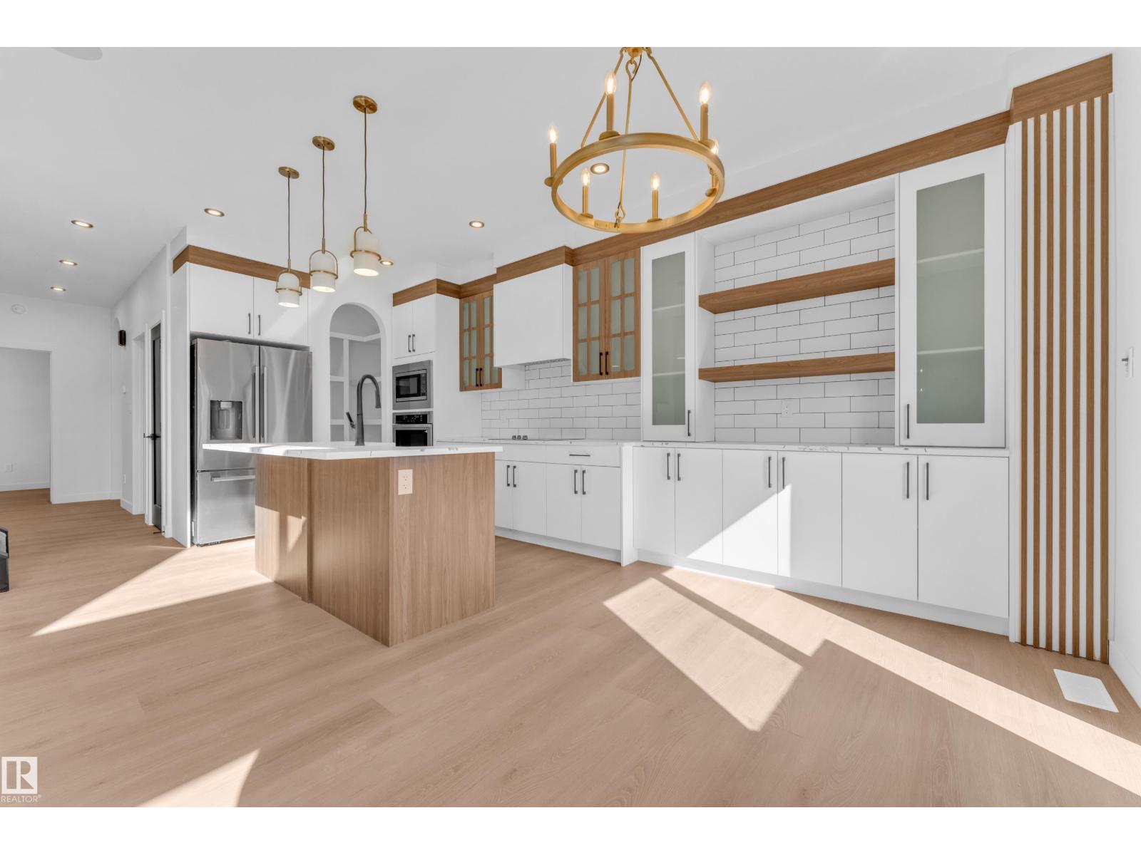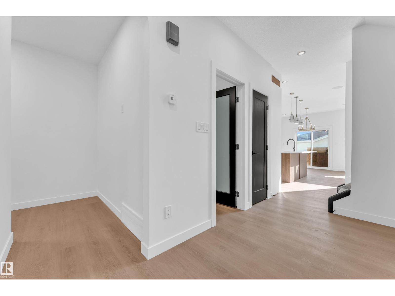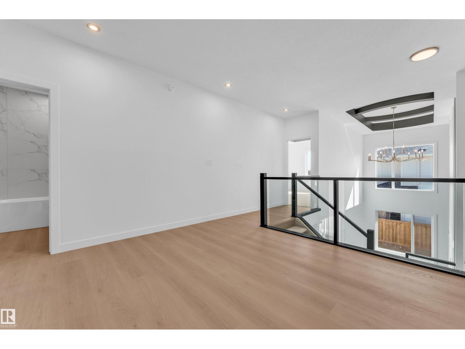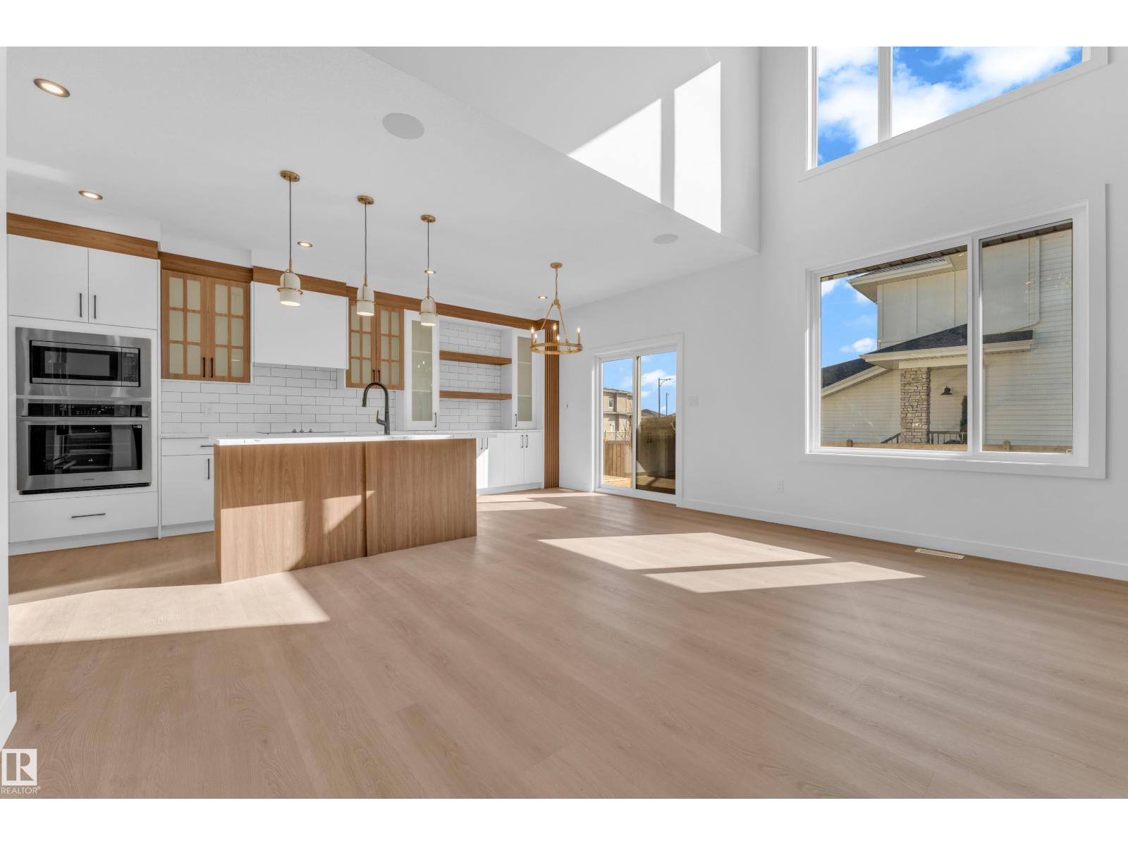 DOUBLE ATTACHED GARAGE- HALF DUPLEX . Main floor entrance leads to Living Area with feature wall and then down the hall OPEN TO ABOVE Living Area with Electric fireplace , Stunning kitchen with modern cabinetry, quartz countertops, center island and spacious pantry. Spacious dinning nook with lots of sunlight. Main floor bedroom with closet & full bathroom. Stairs lead to upper level bonus room. Primary bedroom with 5piece ensuite/ spacious walk in closet/ Featured ceiling & wall design. two more bedrooms down the hall with 4 piece bath. Laundry is also conveniently located on upper level. Unfinished basement with separate entrance waiting for your personal finishes. (id:63190)