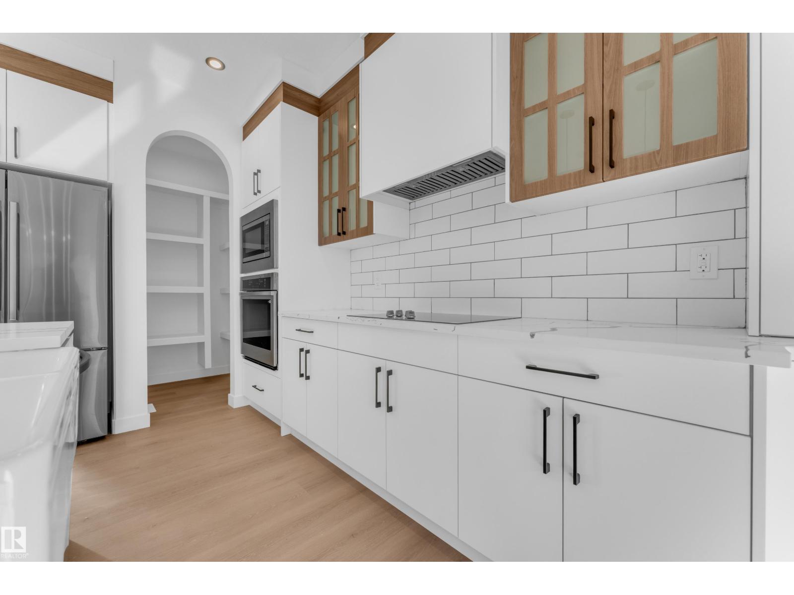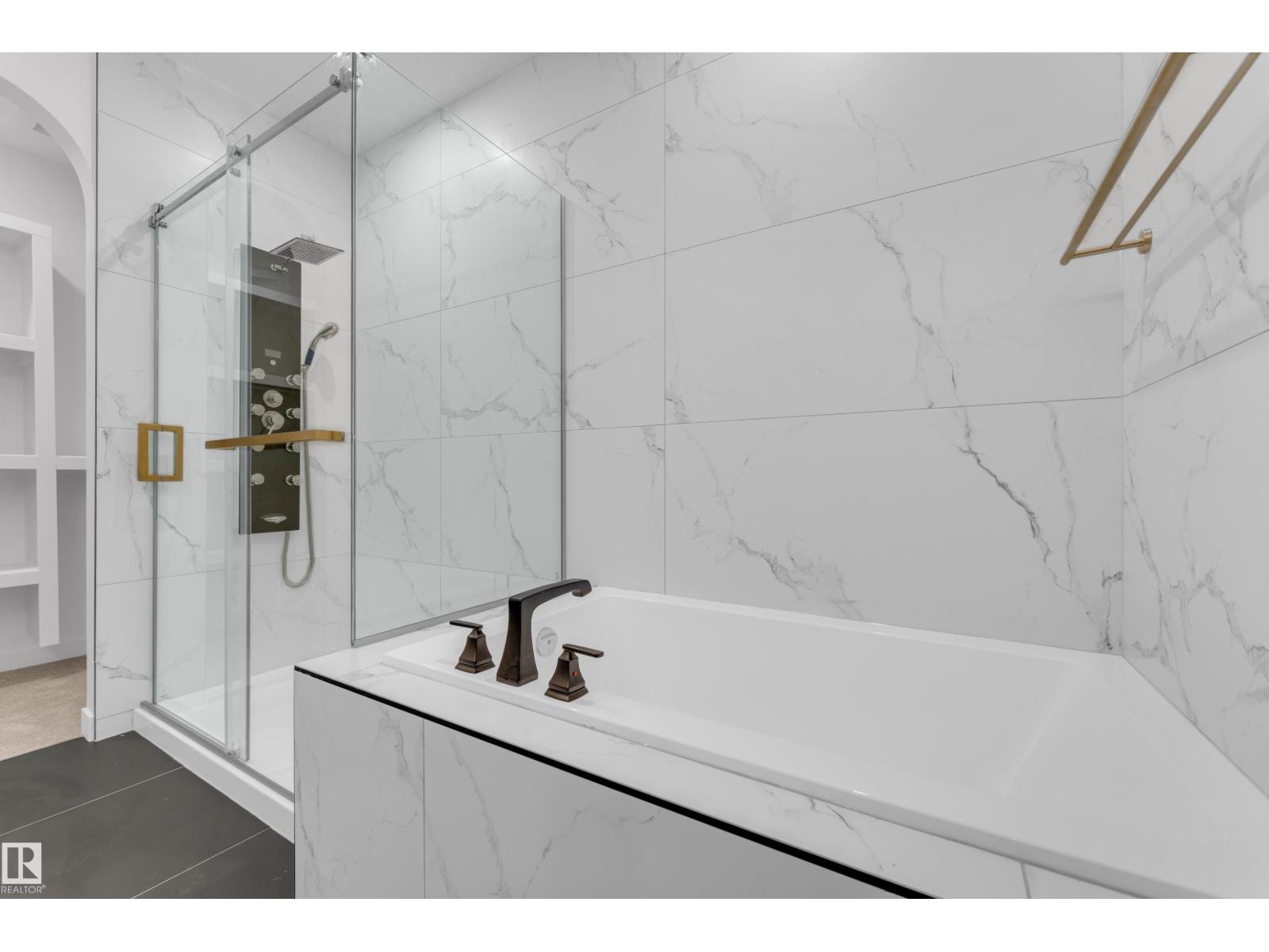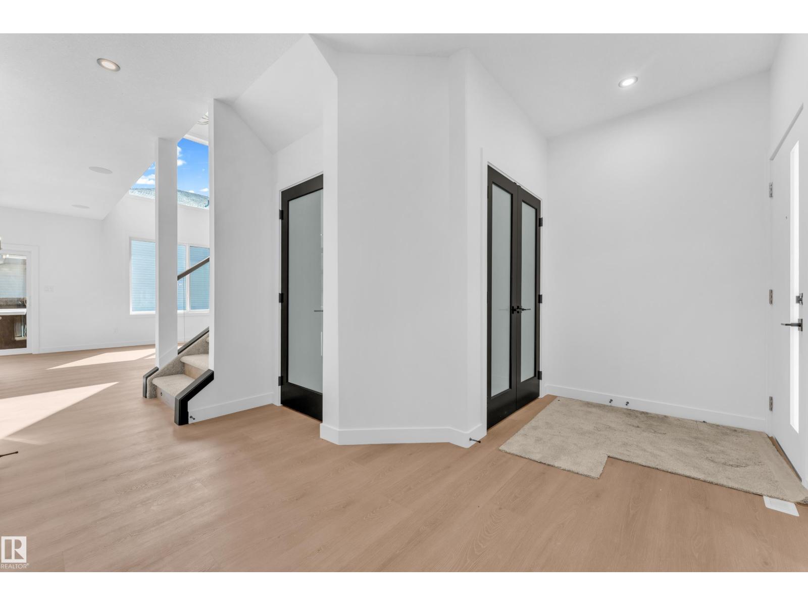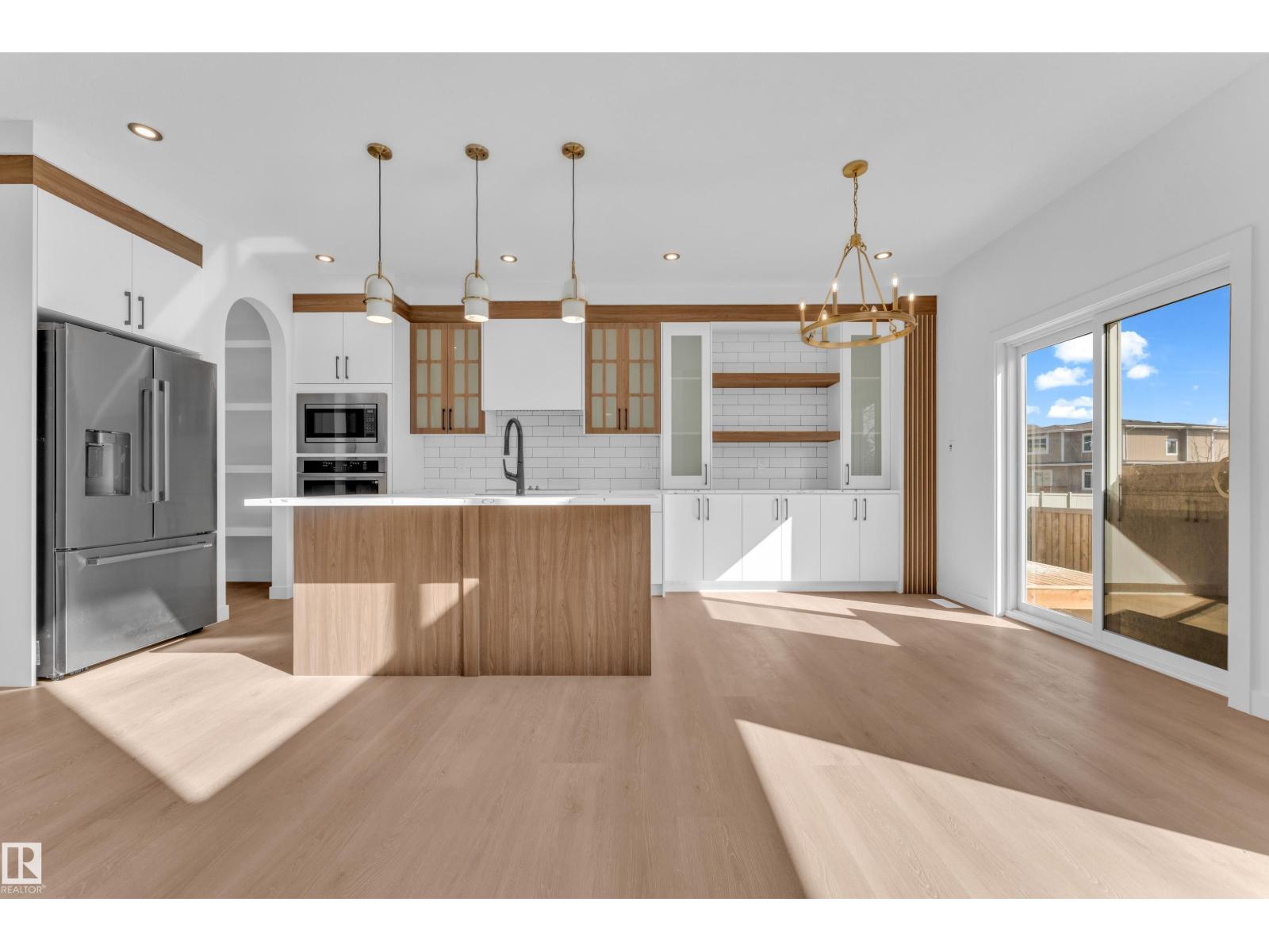 DOUBLE ATTACHED GARAGE- HALF DUPLEX . Main floor entrance leads to Living Area with feature wall and then down the hall OPEN TO ABOVE Living Area with Electric fireplace , Stunning kitchen with modern cabinetry, quartz countertops, center island and spacious pantry. Spacious dinning nook with lots of sunlight. Main floor bedroom with closet & full bathroom. Stairs lead to upper level bonus room. Primary bedroom with 5piece ensuite/ spacious walk in closet/ Featured ceiling & wall design. two more bedrooms down the hall with 4 piece bath. Laundry is also conveniently located on upper level. Unfinished basement with separate entrance waiting for your personal finishes. (id:63190)