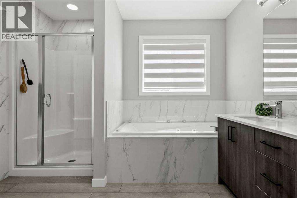 243 Silver Spruce Grove is absolutely an exceptional residence tucked into the heart of Silverado. The home offers over 3,000 square feet of beautifully developed living space. The Grove Home stands out immediately with its refined curb appeal, and UPGRADED EXTERIOR FINISHES. The quiet setting, with WETLAND AND PATHWAY RESERVE LANDS BEHIND plus the rare advantage of no neighbors directly in front—creates a sense of openness and calm. With the wider front streets and no face fronting neighbors you're also gifted with ample parking for family and guests and reduced congestion. Inside, you’ll find a thoughtfully designed layout, featuring a main floor office/den flex space, an open concept living area and high end finishings and improvements throughout. The main living area blends style and function seamlessly, anchored by a stunning kitchen featuring stainless steel appliances, sleek cabinetry, and an inviting space ideal for both everyday living and entertaining. Large, South Facing windows, draw in an abundance of natural light while framing the serene views of the private greenbelt and pathway system behind the home—your own peaceful backdrop with direct access to outdoor recreation. No worries about "too much" sunshine either, the home has been fitted with CUSTOM WINDOW TREATMENTS throughout, including AUTOMATED ROLLER SHADES on the larger and principal windows. Additionally, the home also has a HIGH PERFORMANCE AIR CONDITIONING SYSTEM installed for added comfort on those extra hot Summer days. Upstairs, the home continues to impress with three spacious bedrooms, well separated by a massive family and bonus room. This level includes a second floor laundry, a luxurious primary retreat complete with its own beautiful ensuite, walk-in closet and over-sized rear facing windows. The two additional upstairs bedrooms are each generously sized and fixtured to avoid any sibling conflicts. The fully developed lower level offers incredible versatility, complete with a well-a ppointed and legal two-bedroom suite, featuring its own entrance, laundry, upgraded kitchen, with stainless steel appliances and ceramic backsplash—perfect for extended family, guests, or potential rental income. Backing onto a tranquil green space and pathway system, and positioned in one of Silverado’s most desirable pockets, 243 Silver Spruce Grove is genuinely a beautiful home. (id:63190)