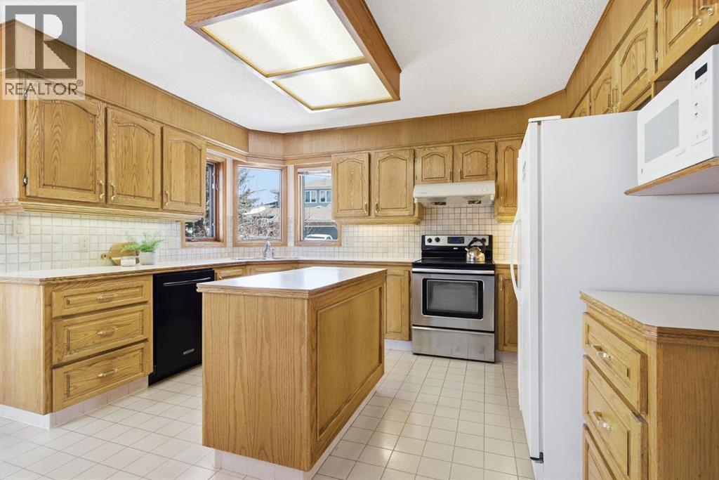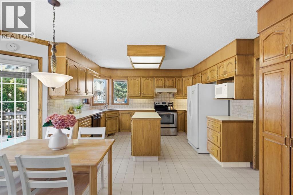 Welcome to this spacious two-storey home that is ideally located on a large corner lot in an exclusive enclave in the desirable community of Edgemont. Offering over 2,400 sq ft, 5 bedrooms, hardwood flooring on both levels and a layout that’s ready for a fresh vision. Step inside and you’ll fall in love with the functional layout, which boasts vaulted ceilings and large windows that bring in plenty of natural light. The front living room is spacious and bright with hardwood floors, and the formal dining room is a great space for hosting family dinners and holidays. The kitchen is centred around an island and connects easily to the breakfast nook and family room. A wood-burning fireplace and built-in shelving make this a comfortable space to unwind at the end of the day. There’s also a main floor bedroom/office along with laundry area and a 2-piece bath. Upstairs, you’ll find four good sized bedrooms, including a primary suite with a walk-in closet and ensuite. The basement is unfinished and ready for your development ideas. Recent updates include hardwood flooring, most of the window glass has replaced, Poly B removal, a radon mitigation system installed, and central air conditioning added for your comfort during those warm summer months. Outside, the spacious corner lot gives you a spacious yard with beautiful, mature trees and a double attached garage. This great home is walking distance to Edgemont school and has great public transportation options including 2 bus stops nearby and the Crowfoot and Dalhousie c-train stations just minutes away. Edgemont is one of northwest Calgary’s most established communities, known for its schools and convenient access to major routes and the stunning Nosehill Park and several great shopping areas! (id:63190)